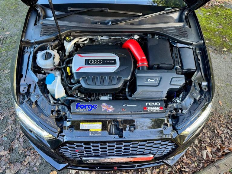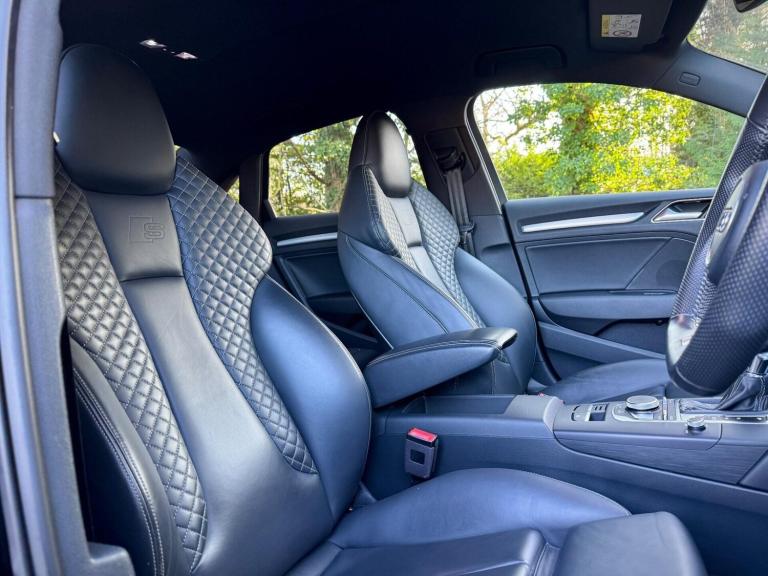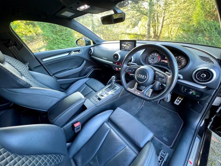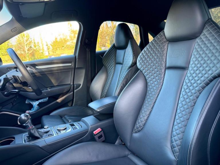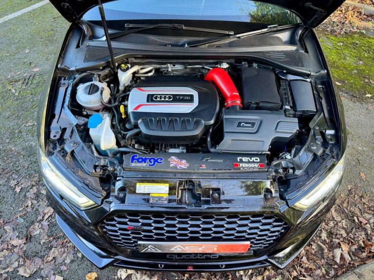 STAGE 2 ENGINE & GEARBOX REMAP ( WITH PAPERWORK) + CUSTOM VALVED EXHAUST SYSTEM WITH SPORTS CATS & 2 REMOTE CONTROLS + INLINE RACING UPGRADED AIR INTAKE + RAM AIR TURBO ELBOW + B&O SURROUND SOUND SYSTEM + SUPER SPORTS HEATED LEATHER+ ELECTRIC FOLD MIRRORS+ APPLE CAR PLAY + RED CALIPERS+ CRUISE CONTROL+ FULL SERVICE HISTORY WITH HALDEX DONE TWICE, GEARBOX SERVICED AND ENGINE REGULARLY SERVICED + FULL MAXTON DESIGN BODYKIT + LOW MILEAGE + STUNNING EXAMPLE VERY CLEAN + 6 MONTHS WARRANTY WITH ALL OUR VEHICLES + FINANCE FROM 8.9% APR + PART EXCHANGE WELCOME - A&S CARS LIMITED This 2017 Audi S3 TFSI Black Edition offers exceptional value with its remarkably low mileage of just 55,000 miles for its age. This four wheel drive model boasts a powerful 2.0 litre petrol engine and meets Euro 6 emissions standards. The Black Edition trim enhances its appeal with striking red brake calipers featuring the S3 logo, alongside heated and electrically adjustable folding door mirrors. Inside, you'll find comfortable heated front seats and a premium Bang and Olufsen sound system for an immersive audio experience, complemented by rear parking sensors to aid manoeuvring. The performance of this Audi S3 is truly impressive, achieving 0 to 62 miles per hour in a swift 4.6 seconds, demonstrating its dynamic capabilities. Furthermore, its fuel economy is a notable highlight, returning up to 44 miles per gallon, which indicates a more efficient performance compared to many similar vehicles. These combined attributes make this Audi S3 TFSI Black Edition a compelling choice for those seeking a blend of performance, luxury, and efficiency.