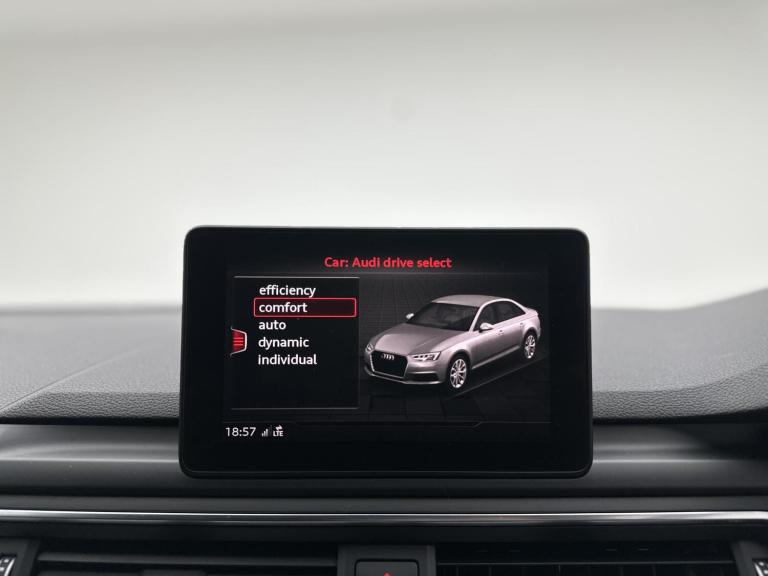 Audi A4 S line TDI S-A – 2017 Key Features S line exterior styling with sporty body kit S line alloy wheels Heated front seats Front and rear parking sensors Audi MMI infotainment system Satellite navigation Bluetooth hands-free and audio streaming DAB digital radio Dual-zone electronic climate control Half leather / Alcantara S line upholstery Flat-bottom S line multifunction steering wheel Cruise control Automatic headlights Rain-sensing wipers LED daytime running lights Keyless start (where specified) Driving & Performance Efficient and powerful TDI diesel engine Smooth S-A (S tronic automatic) transmission Excellent balance of performance and fuel economy Comfortable and refined ride quality Ideal for both motorway cruising and everyday driving Drive Select modes (where specified) Safety & Technology ABS braking system with Brake Assist Electronic Stability Control (ESC) and Traction Control Multiple airbags throughout the cabin Tyre Pressure Monitoring System (TPMS) ISOFIX child seat mounting points Audi Pre Sense safety technology Hill Hold Assist