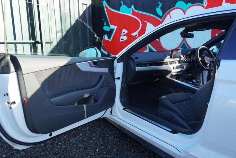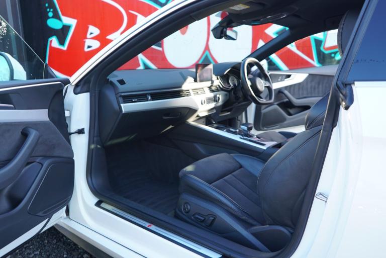 This stylish 2017 Audi A5 2.0 TDI S line Coupe 2dr Diesel S Tronic Euro 6 (s/s) (190 ps) is a sleek, ULEZ compliant coupe with only 103850 miles on the clock. With a MOT that expires on 29/12/2025, this diesel car boasts 4 seats, 2 doors, and is great on fuel efficiency. The interior features luxurious Leather-Alcantara sport seats with an S embossed logo in black, alongside a flat-bottomed 3-spoke leather high multi-function steering wheel. Additionally, the electrically adjustable front seats include a memory function for the driver's side. The exterior is finished in Ibis White, and the car comes with privacy glass. This Audi A5 is a superb choice for anyone in search of a classy, economical, and reliable coupe. Features Include: , 18in alloy wheels - 5-twin-spoke star design, air inlets - horizontal inlay in matt aluminium, anti theft locking wheel bolts, body coloured door mirrors, chrome-plated exhaust trim, door mirrors - electrically adjustable and heated with built-in led indicators, electric windows - front, high gloss package, honeycomb side air inlet grille in titan black, radiator grille in twilight grey with matt aluminium inlays, rear diffuser in twilight grey matt with honeycomb grille, rear grille - black grained, s line badges on front wings, s line front and rear bumpers, s line side skirts in black, space saver spare wheel, windscreen with acoustic glazing, 2 x usb charging ports and 1 x aux-in, audi connect infotainment services - 3 month trial, audi connect safety and service, audi smartphone interface, audi sound system, bluetooth interface, cd drive, dab digital radio reception, mmi navigation - sd card based, tow bar preparation, 4-way electric lumbar support, auto-dimming rear-view mirror, cloth headlining in black, contrast stitching on seats - steering wheel and gear lever gaiter, deluxe 3-zone electronic climate control, electric boot lid release, electrically adjustable front seats, email - calendar and text messages can be displayed on your vehicles mmi, front centre armrest, front and rear floor mats, gear lever knob in black perforated leather, heated front seats, high multi-function 3-spoke leather steering wheel with grips in perforated leather and s badging with gear-shift paddles, illuminated door sill trims with s logo, inlays - matt brushed aluminium, keyless go, led interior light package, non-smoking package, pedals and footrest - stainless steel, split-folding 2-seater rear seat bench in 3 parts - 40-20-40 with
