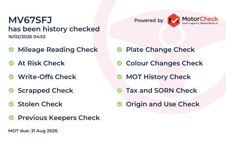 Our vehicle history check is provided for guidance only. Please check all the details with the seller before purchasing