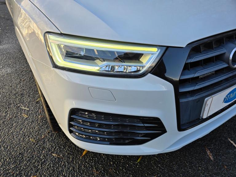 HEATED LEATHER, SAT NAV BLUETOOTH,DAB RADIO ETC, FULL DOCUMENTED SERVICE HISTORY INC TIMING BELT & WATER PUMP & GEARBOX SERVICE JUST DONE, This 2017 Audi Q3 TDI S line Plus boasts a clear vehicle history, offering you peace of mind. This stylish SUV features a powerful 2.0 litre diesel engine paired with four wheel drive for confident handling in all conditions. Its Euro 6 emission class ensures it meets current environmental standards. Inside, you'll find the desirable S line Plus trim, complete with a Comfort Package Plus that includes rear parking assistance and a camera, making manoeuvring easier. The cabin is further enhanced by the Technology Package and luxurious Fine Nappa leather sports seats, embossed with the S line logo, all finished in a sophisticated black. Heated front seats add an extra layer of comfort, and the Bluetooth interface allows for seamless mobile telephone connectivity., , Experience impressive performance with this Audi Q3, achieving 0 to 60 miles per hour in just 7.6 seconds, a testament to its dynamic capabilities. Furthermore, its fuel economy is a notable highlight, delivering an excellent 51 miles per gallon. These figures demonstrate how this Q3 offers a compelling blend of spirited driving and cost effective motoring, setting it apart from many other vehicles in its class., Excellent bodywork, Black Full leather interior - Excellent Condition, Four wheel-drive, 5 seats, White, Upgrades - Fine Nappa Leather - Sports Seats - S Line Embossed - Black, Heated Front Seats, Technology Package, Comfort Package Plus, Speed Limit Display, S Line Suspension, Standard Features - 12V Power Socket - Rear Centre Console, 19in Alloy Wheels - 5-Segment-Spoke Design, 6.5in Display Screen, 7-Digit Postcode Recognition, ABS - Anti-Lock Braking System, AMI - Audi Music Interface, ASR - Anti Slip Regulation, Airbags - Driver, Airbags - Front Passenger, Airbags - Front Side, Airbags - Head System, Alarm - Thatcham Category 1, All Weather LED Headlights, Anti Theft Locking Wheel Bolts, Audi Drive Select, Audi Parking System Plus, Auto-Dimming Rear-View Mirror, Automatic Wipers with Rain Sensor, Brake Lights - LED, Bumpers - Front and Rear - S Line Design, Car Jack, Cloth Headlining in Black, Comfort Package, Concert Radio - MP3/CD Player, Cruise Control, DAB Digital Radio, Dashboard - Black, Diffuser Insert and Centre Front Spoiler Lip Painted in Platinum Grey, Door Mirrors - Automatic Kerb View Dipping Function When Reversing, Door Mirrors - Body Coloured with Integrated LED Indicators, Door Mirrors - Heated-Electrically Adjustable-Folding, Door Sill Trims with S Line Logo, Drivers Information System - DIS, Dual-Zone Electronic Climate Control, Dynamic Rear Indicators, Dynamic Suspension, EBD - Electronic Brakeforce Distribution, EDL - Electronic Differential Lock, ESP - Electronic Stability Programme, Electric Windows - Front and Rear, Electrically Adjustable 4-Way Lumbar Support, Electromechanical Parking Brake, Electromechanical Power Steering, Exhaust Tailpipe - Chrome Plated, First Aid Kit, Floor Mats - Front and Rear in Velour, Folding Storage Compartment in Front Centre Armrest, Front Centre Armrest - Adjustable, Front Fog Lights, Front Passenger Airbag Deactivation Switch, Full Body-Colour Finish on Bumpers-Wheel Arch Trims-Lower Door Trims, Full European Map Data, Full Paint Finish, Gear Knob - Perforated Leather, Headlights - Automatic Activation, Headlights - Automatic Adjustment, Headlights - Automatic Dynamic Range Control, Headlights - Coming-Leaving Home Function, Headlights - High-Beam Assist, Headlights Washers, Heated Windscreen Washer Jets, ISOFIX Child Seat Mounting for Front Passenger, ISOFIX Child Seat Preparation for Rear Seats with Top Tether, Inlays - Matt Brushed Aluminium, LED Daytime Running Lights, LED Rear Indicators, LED Rear Lights, Luggage Compartment - Cover Extendable, Manual Front Seat Adjustment, Mobile Telephone Preparation - Bluetooth Interface, Parking Sensors - Front, Power Operated Tailgate, Privacy Glass, Radiator Grille - with Vertical Chrome Bars, Rear Parking Sensors, Remote Central Locking with 2 Fold Away Keys, Reversible Luggage Compartment Floor, Roof Rails - Aluminium, S Line Badges on Front Wings, S Line Body Styling, SDHC Card Reader x2, Satellite Navigation System - SD Card Based, Seat Belt Reminder, Seats - Front Sports - S Line Embossed, Secondary Collision Brake Assist, Smoking Package, Space Saver Spare Wheel, Speakers x8, Split-Folding Rear Seats, Stainless Steel Loading Sill Protector, Steering Wheel - 3-Spoke Leather-MultiFunction-Shift Paddles-Q-Design, Steering Wheel - Gear-Shift Paddles, Steering Wheel - Height and Reach Adjustable, Steering Wheel - Multi-function, Sunband for Windscreen, TP Memo - Automatically Saves Traffic News, Tool Kit, Towbar Preparation, Trip Computer, Tyre Pressure Monitoring System, Voice Control - Telephone, Warning Triangle, Washer Fluid Level Indicator. More vehcles on our website