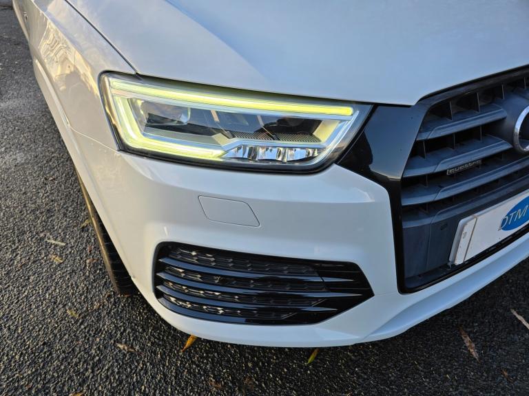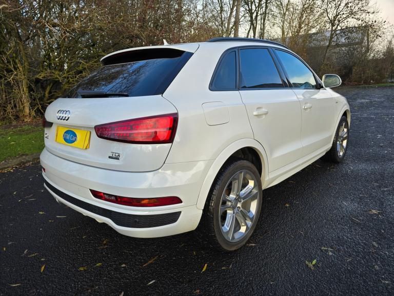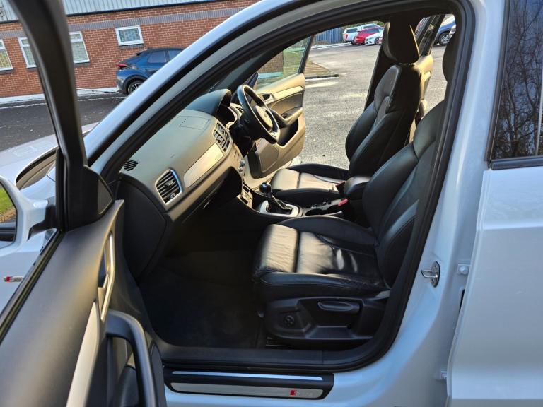 LOVELY CONDITION, DIESEL AUTOMATIC, RARE HEATED LEATHER, CRUISE CONTROL, SAT NAV, BLUETOOTH,DAB RADIO ETC, FULL DOCUMENTED SERVICE HISTORY INC TIMING BELT & WATER PUMP & GEARBOX SERVICE JUST DONE, This 2017 Audi Q3 TDI S line Plus boasts a clear vehicle history, offering you peace of mind. This stylish SUV features a powerful 2.0 litre diesel engine paired with four wheel drive for confident handling in all conditions. Its Euro 6 emission class ensures it meets current environmental standards. Inside, you'll find the desirable S line Plus trim, complete with a Comfort Package Plus that includes rear parking assistance and a camera, making manoeuvring easier. The cabin is further enhanced by the Technology Package and luxurious Fine Nappa leather sports seats, embossed with the S line logo, all finished in a sophisticated black. Heated front seats add an extra layer of comfort, and the Bluetooth interface allows for seamless mobile telephone connectivity., , Experience impressive performance with this Audi Q3, achieving 0 to 60 miles per hour in just 7.6 seconds, a testament to its dynamic capabilities. Furthermore, its fuel economy is a notable highlight, delivering an excellent 51 miles per gallon. These figures demonstrate how this Q3 offers a compelling blend of spirited driving and cost effective motoring, setting it apart from many other vehicles in its class., Excellent bodywork, Black Full leather interior - Excellent Condition, Four wheel-drive, 5 seats, White, Upgrades - Fine Nappa Leather - Sports Seats - S Line Embossed - Black, Heated Front Seats, Technology Package, Comfort Package Plus, Speed Limit Display, S Line Suspension, Standard Features - 12V Power Socket - Rear Centre Console, 19in Alloy Wheels - 5-Segment-Spoke Design, 6.5in Display Screen, 7-Digit Postcode Recognition, ABS - Anti-Lock Braking System, AMI - Audi Music Interface, ASR - Anti Slip Regulation, Airbags - Driver, Airbags - Front Passenger, Airbags - Front Side, Airbags - Head System, Alarm - Thatcham Category 1, All Weather LED Headlights, Anti Theft Locking Wheel Bolts, Audi Drive Select, Audi Parking System Plus, Auto-Dimming Rear-View Mirror, Automatic Wipers with Rain Sensor, Brake Lights - LED, Bumpers - Front and Rear - S Line Design, Car Jack, Cloth Headlining in Black, Comfort Package, Concert Radio - MP3/CD Player, Cruise Control, DAB Digital Radio, Dashboard - Black, Diffuser Insert and Centre Front Spoiler Lip Painted in Platinum Grey, Door Mirrors - Automatic Kerb View Dipping Function When Reversing, Door Mirrors - Body Coloured with Integrated LED Indicators, Door Mirrors - Heated-Electrically Adjustable-Folding, Door Sill Trims with S Line Logo, Drivers Information System - DIS, Dual-Zone Electronic Climate Control, Dynamic Rear Indicators, Dynamic Suspension, EBD - Electronic Brakeforce Distribution, EDL - Electronic Differential Lock, ESP - Electronic Stability Programme, Electric Windows - Front and Rear, Electrically Adjustable 4-Way Lumbar Support, Electromechanical Parking Brake, Electromechanical Power Steering, Exhaust Tailpipe - Chrome Plated, First Aid Kit, Floor Mats - Front and Rear in Velour, Folding Storage Compartment in Front Centre Armrest, Front Centre Armrest - Adjustable, Front Fog Lights, Front Passenger Airbag Deactivation Switch, Full Body-Colour Finish on Bumpers-Wheel Arch Trims-Lower Door Trims, Full European Map Data, Full Paint Finish, Gear Knob - Perforated Leather, Headlights - Automatic Activation, Headlights - Automatic Adjustment, Headlights - Automatic Dynamic Range Control, Headlights - Coming-Leaving Home Function, Headlights - High-Beam Assist, Headlights Washers, Heated Windscreen Washer Jets, ISOFIX Child Seat Mounting for Front Passenger, ISOFIX Child Seat Preparation for Rear Seats with Top Tether, Inlays - Matt Brushed Aluminium, LED Daytime Running Lights, LED Rear Indicators, LED Rear Lights, Luggage Compartment - Cover Extendable, Manual Front Seat Adjustment, Mobile Telephone Preparation - Bluetooth Interface, Parking Sensors - Front, Power Operated Tailgate, Privacy Glass, Radiator Grille - with Vertical Chrome Bars, Rear Parking Sensors, Remote Central Locking with 2 Fold Away Keys, Reversible Luggage Compartment Floor, Roof Rails - Aluminium, S Line Badges on Front Wings, S Line Body Styling, SDHC Card Reader x2, Satellite Navigation System - SD Card Based, Seat Belt Reminder, Seats - Front Sports - S Line Embossed, Secondary Collision Brake Assist, Smoking Package, Space Saver Spare Wheel, Speakers x8, Split-Folding Rear Seats, Stainless Steel Loading Sill Protector, Steering Wheel - 3-Spoke Leather-MultiFunction-Shift Paddles-Q-Design, Steering Wheel - Gear-Shift Paddles, Steering Wheel - Height and Reach Adjustable, Steering Wheel - Multi-function, Sunband for Windscreen, More vehcles on our website