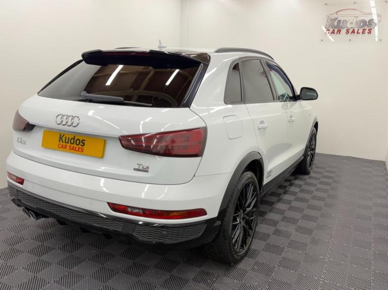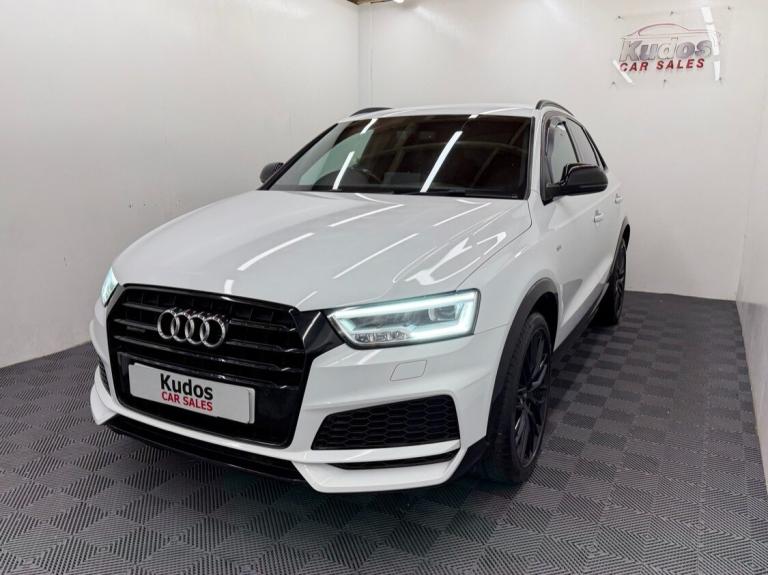 2017 AUDI Q3 2.0 TDI QUATTRO BLACK EDITION 5dr - STUNNING LOOKING CAR, FINISHED IN GLACIER WHITE. FANTASTIC CONDITION INSIDE AND OUT. NO DEPOSIT FINANCE AVAILABLE. FROM ONLY £284 per mth. 6 MONTH WARRANTY INCLUDED. EACH VEHICLE COMES WITH A FREE HPI CLEAR REPORT AND 1 YEAR AA BREAKDOWN COVER. SERVICE HISTORY AND JUST FULLY SERVICED. 81000 MILES. MOT UNTIL 09/06/2026. HUGE SPEC: SLINE EMBOSSED HALF LEATHER, SAT NAV, CRUISE CONTROL, FRONT AND REAR PARKING SENSORS, CLIMATE CONTROL, AIRCON, DAB RADIO, BLUETOOTH, MEDIA CONNECTIVITY, AUDI DRIVE SELECT, LED DAYTIME LIGHTS, AUTO LIGHTS, ELEC POWERED BOOT. FRONT AND REAR ELEC WINDOWS, ELEC MIRRORS, TRACTION CONTROL, UNMARKED 19'' ALLOY WHEELS, REAR PRIVACY GLASS, AUX/ USB. 6 SPEED. FINANCE PACKAGES - With 30+ lenders on board we are able to offer Finance to suit individual circumstances, including Sub Prime. All CARS ARE HPI CHECKED AND CLEAR.WARRANTY. At KUDOS CAR SALES every vehicle comes with a FREE 6MTH Warranty. Any repairs under warranty can be carried out at your local garage - Extended warranty available on request at extra cost. 2 KEYS. ***ALL PART EXCHANGE'S CONSIDERED***