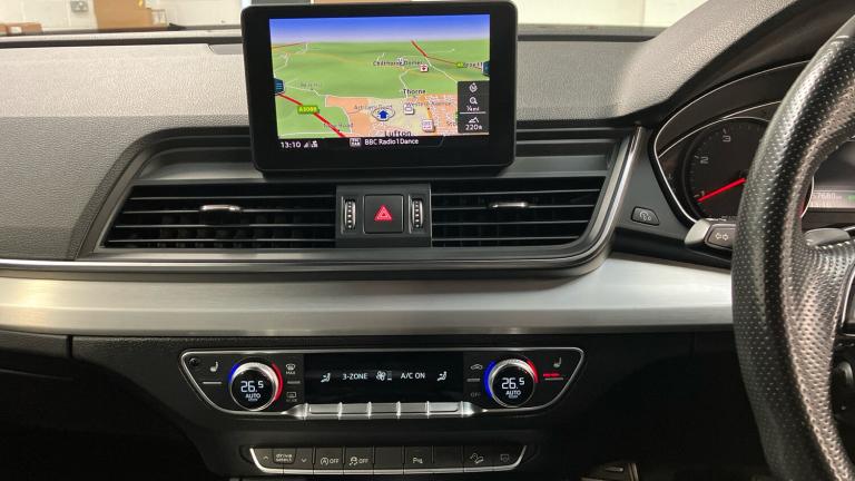 Audi Q5 S line TDI Quattro S tronic – Moonlight Blue MetallicAvailable now from Vertu MINI Yeovil, this Audi Q5 S line TDI Quattro is a superb example of a refined yet capable premium SUV, perfectly suited to year-round driving – especially when winter conditions demand extra confidence.Powered by Audi’s renowned TDI engine and paired with the Quattro four-wheel drive system, this Q5 delivers outstanding grip, stability and control on wet, icy or uneven roads. Power is intelligently distributed to all four wheels, helping maintain traction where two-wheel drive vehicles can struggle. Combined with Hill Hold Assist, it offers reassurance on steep or slippery inclines, making it an ideal companion through the colder months.This example has covered 57,662 miles and boasts an impressive £3,745 of factory-fitted options. It sits on striking 20” 10-Y-spoke alloy wheels (£900) and is finished in elegant Moonlight Blue metallic. Inside, the cabin is beautifully appointed with Fine Nappa leather upholstery with S-embossed logos (£800), a flat-bottomed multifunction steering wheel, and the Extended LED Interior Lighting Pack, creating a premium, modern ambience.A stylish, secure and highly specified SUV that truly comes into its own when the weather turns.Available now from Vertu MINI Yeovil – contact us today to arrange your viewing or test drive..Satellite Navigation, Front/rear floor mats, Rear wiper, ABS, Voice control system, Electric power steering, Service interval indicator, Body colour door mirrors, Diesel particulate filter, CD player, Rear spoiler, Front fog lights, 3 zone climate control, Reach + rake adjustable steering column, Driver and passenger airbags, Contrast stitching, Height adjustable front head restraints, Remote central locking, Sunvisors with vanity mirrors