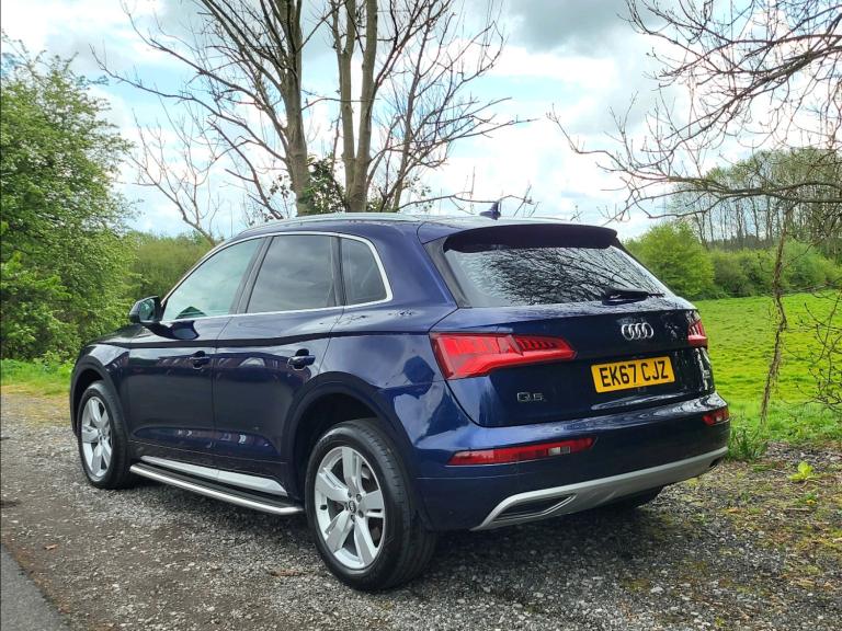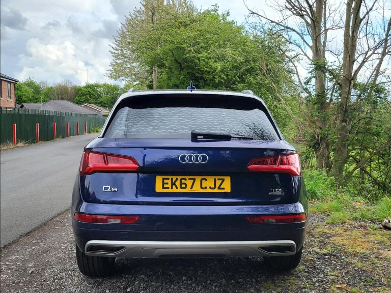 For sale is a 2017 Audi Q5 2.0 TDI Quattro Sport 5dr S Tronic Estate with 83000 miles on the clock. This diesel vehicle comes with 5 seats and 5 doors, making it perfect for a family or anyone needing extra space. and the car is ULEZ compliant, meaning it meets the Ultra Low Emission Zone standards. It has had 2 previous registered keeper(s) and includes features such as Audi connect, Audi drive select, Audi Pre sense collision avoidance, Audi smartphone interface, and a driver information centre with a colour display in the instrument panel. Don't miss this opportunity to own a reliable and stylish Audi Q5. Features Include: , audi connect, audi drive select, audi pre sense collision avoidance, audi smartphone interface, driver information centre with colour display in instrument panel, electric power steering, power tailgate, sd card based mmi navigation, service interval indicator, voice control system, diesel particulate filter, 2 usb ports, auxiliary input socket, cd player, dab digital radio, mmi radio plus with 7'' colour mmi screen and mmi controller, acoustic windscreen, aluminium roof rails, aluminium sill plates, auto dimming rear view mirror, black high gloss front air inlet in matt aluminium effect, body colour bumpers, body colour door mirrors, body colour rear diffuser insert, chrome exhaust tailpipe, electric headlight adjustment, electrically adjustable and heated door mirrors, front and rear electric windows, front fog lights, headlight range control, headlight washers, light and rain sensor for auto activation of lights and windscreen wipers, loading sill protector in stainless steel, rear diffuser strip in selenite silver, rear spoiler, rear wiper, selenite silver underbody guard, twilight grey matt radiator grille with matt aluminium horizontal chrome struts, 3 rear headrests, 3 zone climate control, 4 way electric lumbar support for driver and front passenger, 40:20:40 split folding rear bench seat, cloth headlining, front centre armrest with 12v socket, front sports seats, front/rear floor mats, height adjustable driver, height adjustable front head restraints, isofix front passenger and rear seat preparation, jack and tool kit, load compartment cover, luggage compartment carpet, matt selenite silver door inserts, reach + rake adjustable steering column, removable luggage compartment floor, removable net partition, roller blind loadspace cover, sunvisors with vanity mirrors, non smokers pack, 3 point seatbelts on all seats, abs,