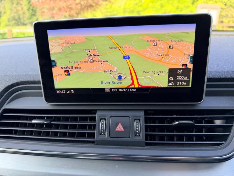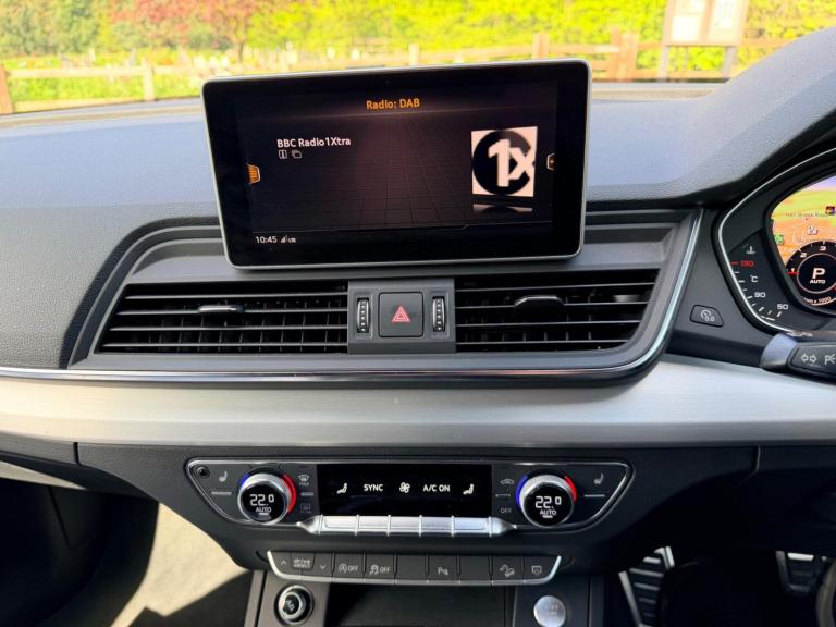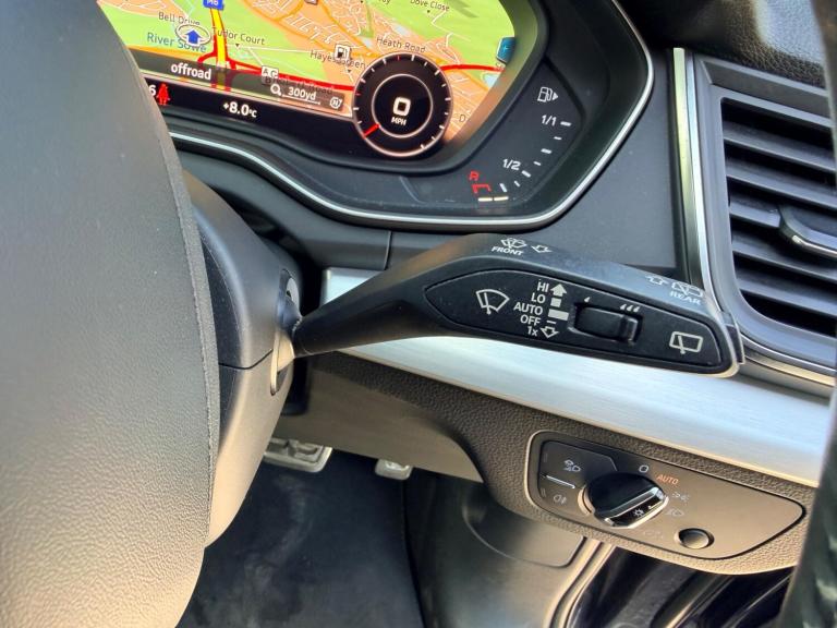 With a clear vehicle history check and only two previous owners, this 2017 Audi Q5 TDI S line offers excellent provenance. This Four Wheel Drive model is equipped with a 2.0L Diesel Engine and meets Euro 6 emission standards. Notable features include Deluxe 3-Zone Climate Control, Audi Parking System Plus with front and rear sensors, and a Bluetooth Interface for seamless connectivity. The striking LED Headlights with Q Signature Design are complemented by LED Rear Lights and Dynamic Rear Indicators, while Light and Rain Sensors ensure automatic headlight activation.This Audi Q5 stands out with its impressive performance, achieving 0-62mph in just 7.9 seconds, demonstrating its capability. Its fuel economy is a highlight, offering up to 55 mpg, which is better than many similar vehicles. Furthermore, its low CO2 emissions are also noteworthy. For practicality, it boasts a large boot space, ideal for luggage or shopping. This vehicle comes with a 6-month warranty and a 12-month MOT provided on purchase, alongside partial service history. It also has a towing weight capacity of 2400 kg.