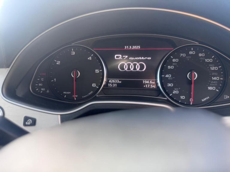 The 2017 Audi Q7 TDI V6 S line is a car that combines practicality with a touch of luxury. As an S line trim, this four-wheel-drive model comes with a host of features designed to enhance your driving experience. The interior is equipped with deluxe four-zone automatic climate control, ensuring everyone stays comfortable, and heated front seats for those chilly mornings. The light and rain sensor takes the hassle out of driving in unpredictable weather, while the all-weather LED headlights provide excellent visibility. Stay connected on the go with the integrated Bluetooth interface. With very low mileage of just 42633 miles, this seven-seater is ready for its next adventure.Powered by a 3.0L diesel engine, this Euro 6-compliant vehicle offers a compelling blend of performance and efficiency. The fuel economy is a real plus, achieving around 49 mpg, making it an economical choice for long journeys and daily commutes. Acceleration is also impressive, reaching 0-62mph in just 7.3 seconds, demonstrating its responsiveness on the road. Capable of towing up to 2800 kg, this Q7 is well-equipped for various tasks, whether you're hauling equipment or taking the family caravan on holiday.This vehicle comes with 3 months Warranty for full peace of mind, nationwide delivery available on all vehicles. Part Exchange welcome. Open 6 days a week. Viewing By Appointment Only. All Major Credit and Debit Cards Accepted. All our vehicles have been through our workshop for a full health check for peace of mind with a fresh service and a MOT. See our 5* reviews , Buy with confidence through us. If you'd like to find out more about this vehicle, book a test drive or request a personalised video. You can reserve this vehicle today! Contact us today!