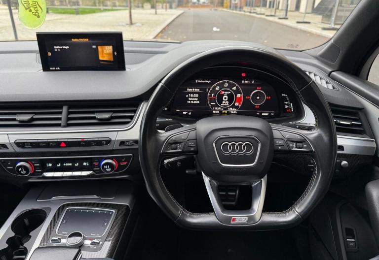 THIS 2017 AUDI SQ7 4.0TDI AUTO V8T QUATTRO 435 BHP 7 SEATS LOW TAX BRACKET £195 PACKS A PUNCH BOTH PRESTIGE AND SPORTING LOOKS IDEAL FAMILY CAR.1 PREVIOUS OWNER CAR 2 KEYS HISTORY AND MOTD JUN 26 HUGE MEGA SPEC MAXTON DESIGN BODY STYLING BLACK PACK PANORAMIC ROOF VIRTUAL CLOCK BOSE SOUND SYSTEM HEADS UP DISPLAY FLAT BOTTOM STEERING WHEEL DRIVE SELECT WITH DYNAMIC MODE CHANGES SOUND AND POWER OF CAR (Sounds awesome) HEATED SEATS FULL MEMORY SEATS ALLOYS REAR FULL CLIMATE CONTROL AND LOADS MORE VERY CLEAN AND TIDY CREDIT TO OWNER RECENT FULL INSIDE OUT DETAIL WITH CERAMIC COATING BLACK PACK AND MAXTON DESIGN GIVING THAT SOPHISTICATED AGGRESSION ADDS A STRIKING APPEARANCE STRAIGHT BODY DRIVES WITH NO FAULTS AT ALL ABSOLUTE PLEASURE TO DRIVE 2 OWNERS SPARE KEY