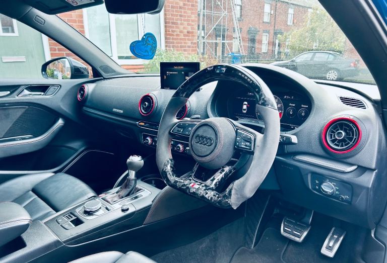 PANROOF + AUDI FULL RS SPORTS EXHAUST **AUDI INTERIOR DESIGN PACK **RED STITCHED RS3 SUPER SPORTS BUCKET SEATS + HEATED SEATS + BANG AND OLUFSEN SOUND SYSTEM **CARBON INLAYS **TECHNOLOGY PACK **RED AIR VENTS + SEAT BELTS **EXTENDED RED STITCHED INTERIOR TRIM **ALCANTARA INTERIOR TRIM **AUDI VIRTUAL COCKPIT DASH WITH 3D GOOGLE SAT NAV **AUDI BLACK PACK **AUTO LED MATRIX LIGHTING + DYNAMIC INDICATOR