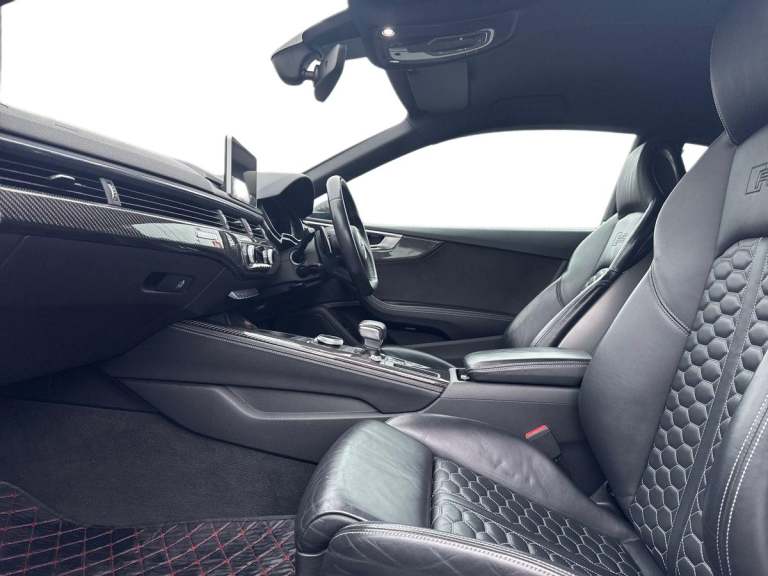 ..Driver Convenience,Audi Side Assist,RS Audi Drive SelectEntertainment,Audi Connect Infotainment Services - 36 Month Trial,Audi Connect Safety and Service,Audi Smartphone Interface,Audi Sound System,DAB Digital Radio Reception,MMI Navigation Plus including MMI TouchExterior,19in Alloy Wheels - 10-Spoke-Star Design Forged in Silver,Door Mirrors - Electrically Folding - Adjustable and Heated with Integrated LED Side Indicators and Kerb-view Function for Passenger Side,Door Mirrors - Matt Aluminium Look Housings,Electric Windows - Front,RS Body Styling,RS Exhaust System,Space Saver Spare Wheel,Windscreen with Acoustic GlazingInterior,Audi Virtual Cockpit,Auto-Dimming Rear-View Mirror,Cloth Headlining in Black,Deluxe 3-Zone Electronic Climate Control,Door Sill Trims - Illuminated with RS5 Logo,Electrically Adjustable Front Seats,Flat-Bottomed High Multi-function 3-Spoke Leather Sport Steering Wheel with RS Badging,Front and Rear Floor Mats,Front Centre Armrest,Heated Front Seats,Inlays - Aluminium Race,Leather Door Armrests and Knee Pad,LED Interior Light Package,Lumbar Support - Pneumatically Adjustable with Massage Function,Pedals and Footrest - Stainless Steel,RS-Specific Gear Lever Knob in Perforated Leather with Contrast Stitching,Split-Folding 2-Seater Rear Seat Bench in 3 Parts - 40-20-40 with Rear Centre Armrest,Tool Kit and Car JackEntertainment,Audi Connect Infotainment Services - 36 Month Trial,Audi Connect Safety and Service,Audi Smartphone Interface,Audi Sound System,DAB Digital Radio Reception,MMI Navigation Plus including MMI Touch