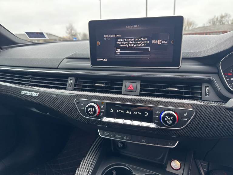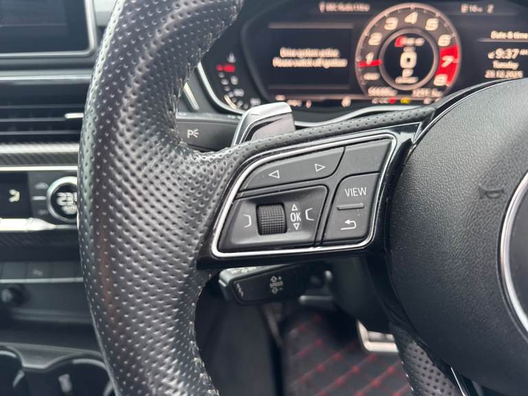 ..Driver Convenience,Audi Side Assist,RS Audi Drive SelectEntertainment,Audi Connect Infotainment Services - 36 Month Trial,Audi Connect Safety and Service,Audi Smartphone Interface,Audi Sound System,DAB Digital Radio Reception,MMI Navigation Plus including MMI TouchExterior,19in Alloy Wheels - 10-Spoke-Star Design Forged in Silver,Door Mirrors - Electrically Folding - Adjustable and Heated with Integrated LED Side Indicators and Kerb-view Function for Passenger Side,Door Mirrors - Matt Aluminium Look Housings,Electric Windows - Front,RS Body Styling,RS Exhaust System,Space Saver Spare Wheel,Windscreen with Acoustic GlazingInterior,Audi Virtual Cockpit,Auto-Dimming Rear-View Mirror,Cloth Headlining in Black,Deluxe 3-Zone Electronic Climate Control,Door Sill Trims - Illuminated with RS5 Logo,Electrically Adjustable Front Seats,Flat-Bottomed High Multi-function 3-Spoke Leather Sport Steering Wheel with RS Badging,Front and Rear Floor Mats,Front Centre Armrest,Heated Front Seats,Inlays - Aluminium Race,Leather Door Armrests and Knee Pad,LED Interior Light Pack,Lumbar Support - Pneumatically Adjustable with Massage Function,Pedals and Footrest - Stainless Steel,RS-Specific Gear Lever Knob in Perforated Leather with Contrast Stitching,Split-Folding 2-Seater Rear Seat Bench in 3 Parts - 40-20-40 with Rear Centre Armrest,Tool Kit and JackEntertainment,Audi Connect Infotainment Services - 36 Month Trial,Audi Connect Safety and Service,Audi Smartphone Interface,Audi Sound System,DAB Digital Radio Reception,MMI Navigation Plus including MMI Touch