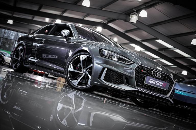 *CLICK - BUY - COLLECT* FINANCE AVAILABLE! HPI CLEAR! Junction 17 Cars now have to offer a stunning Audi RS5 2.9 TFSI V6 Tiptronic quattro Euro 6 (s/s) 2dr.. 1 Former Keeper from New.. 6 x Service Records.. Finished in Daytona Grey Pearl.. Comfort and Sound Package.. Head Up Display.. 20'' Alloys.. 3 Zone Climate Control.. Navigation.. Reverse Camera.. Cruise Control.. and more.*ANY THIRD PARTY VEHICLE INSPECTIONS ARE WELCOME* *WE WILL BEAT ANY CAR VALUATION SITE FOR YOUR PART EXCHANGE* Junction 17 Cars (Runner Up at the Motor Trader Independent Dealer Awards 2019 nominated for Car Supermarket of the Year Award) is a unique family run business with over 7 millions worth of stock currently split over our purpose-built showroom in Yaxley, Peterborough and our new showrooms in Grantham and Rugby. Our vehicles can also be reserved with a 99 refundable holding deposit to ensure that they are professionally prepared/valeted for your viewing pleasure. Competitive HP and PCP packages are available with decision/approval available within 15 minutes. We also offer comprehensive warranties over a variety of different terms as well as Williams Ceramic Coating, Flexfuel Engine Carbon Cleaning and more. **NATIONWIDE DELIVERY AVAILABLE** Payment : maximum 500 card payment balance by bank transfer