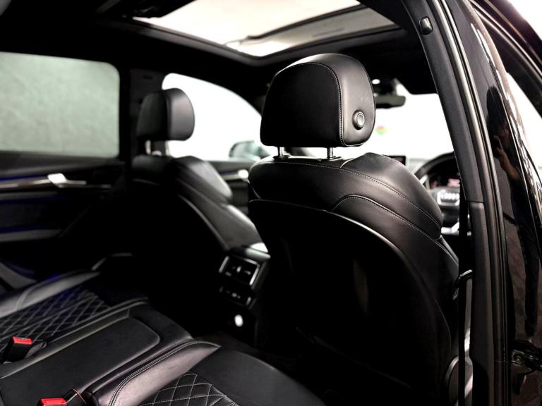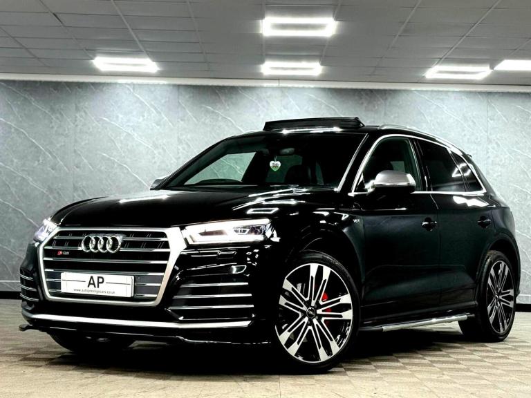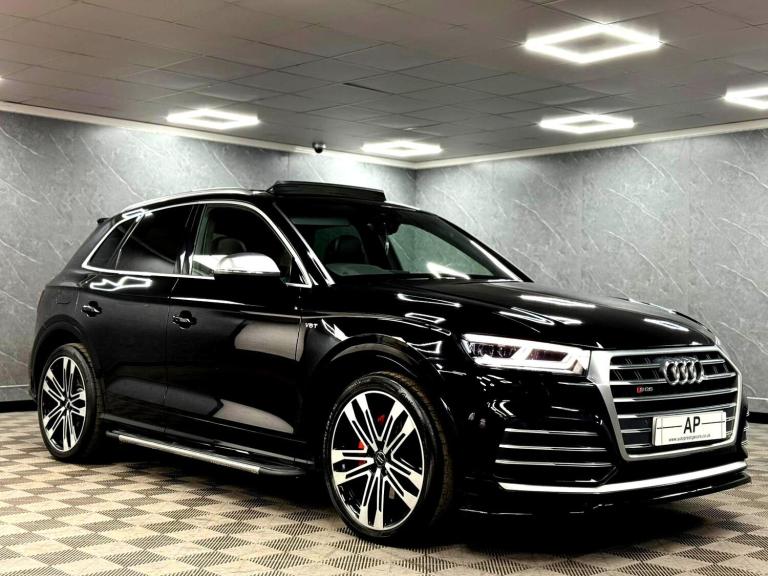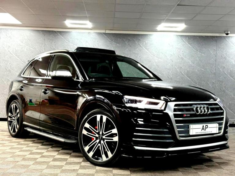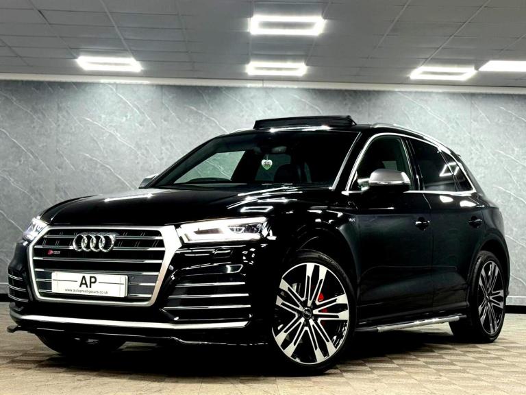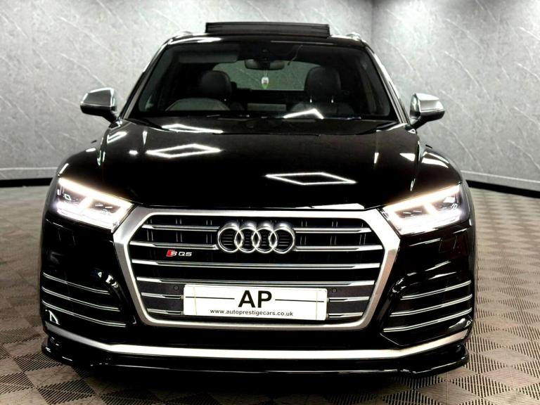 AUTOPRESTIGE - HOME OF THE FINEST SELECTION OF BESPOKE PERFORMANCE AND PRESTIGE VEHICLES..BUY WITH COMPLETE CONFIDENCE...WE ARE PLEASED TO PRESENT ANOTHER STUNNING AUDI SQ5 VORSPRUNG STYLE SPEC FINISHED IN METALLIC MYTHOS BLACK OVER BLACK 3 STAGE HEATED ELECTRIC QUILTED FINE NAPPA LEATHER S-EMBOSSED SPORTS SEATS BACKED BY A FULL SERVICE HISTORY - RECENT FRONT BRAKE DISCS AND PADS AND 4X TYRES - NO EXPENSE FOR NEW KEEPER READY TO DRIVE AWAY - IN VERY GOOD CONDITIONONE OF THE HIGHEST SPECCED SQ5'S AVAILABLE WITH ALMOST EVERY DESIRED EXTRA FROM FACTORY , IF YOUR AFTER A PROFESSIONAL LOOKING SQ5 WITH THE PERFECT UPGRADES, THIS IS THE ONE WITH UPGRADES INCLUDING MAXTON DESIGN EXTENDED FRONT SPLITTER IN GLOSS BLACK,BLACK BADGES,SMOKED PPF FRONT LIGHTS,GENUINE CHROME/BLACK AUDI SIDE-STEPS/RUNNING BOARDS,EXTENDED GLOSS BLACK REAR BOOT SPOILER AND EXTENDED GLOSS BLACK MIDDLE BOOT SPOILER...AS EVIDENT, THIS IS NOT YOUR STANDARD SQ5, ARGUEBALY ONE OF THE BEST LOOKING SQ5 AVAILABLE WITH A RARE EXTREMELY HIGH SPECIFICATION - YOU WILL NOT FIND ANOTHER SQ5 IN THIS CONDITION WITH A FULL COMPLETE AUDI SERVICE HISTORY OUR SQ5 COMES PACKED WITH FACTORY FITTED EXTRAS WHICH INCLUDE, FULL EXTERIOR ALUMINIUM PACK INCLUDING BADGES,21"" AUDI SPORT ALLOYS FINISHED IN GLOSS BLACK (IN IMMACULATE CONDITON) OVER CANDY RED S CALIPERS,PRIVACY GLASS,SLIDING PANORAMIC GLASS SUNROOF WITH AUTO BLIND,CARBON INLAYS,COMFORT AND SOUND PACK, FULL BLACK FINE NAPPA ELECTRIC LEATHER SPORTS SEATS,QUATTRO WITH SPORTS DIFF,SPORTS EXCHAUST,MATRIX LIGHTS,KEYLESS ENTRY/GO,PUSH BUTTON START,BANG & OLUFSEN 3D SURROUND SOUND,HILL HOLD ASSIST,AUDI VIRTUAL COCKPIT WITH SELECTIVE DISPLAYS,CRUISE CONTROL,FLAT-BOTTOM SQ5 STEERING WHEEL,HEATED ELECTRIC AUTO-DIMMING FOLDING WING MIRRORS WITH GLOSS BLACK CAPS,REAR VIEW CAMERA,WIRED APPLE CARPLAY,WIRELES PHONE CHARGER,EXTENDED MULTI-COLOURED LED INTERIOR AMBIENT LIGHTING,POWER OPERATED TAILGATE,SAT-NAV,HIGH BEAM ASSIST,BT AUDIO,USB AUDIO..2 KEYS AND ALL SUPPORTING PAPERWORK