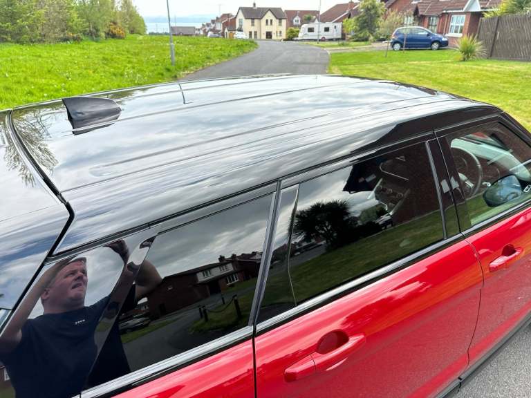 2017 LANDROVER EVOQUE WITH THE 2.0 SD4 DIESEL 180 BHP S.E.TECH WITH DYNAMIC PACK *** 4X4 *** ALL TERRAIN SUSPENSION PACK *** A SUPERB 9 SPEED AUTO & FINISHED IN GLEAMING METALIC ITALIAN RACING RED / FIRENZE FIRE RED WITH GLOSS BLACK PACK AND A VERY CONTRASTING FULL BLACK LEATHER INTERIOR WITH HEATED SEATS *****