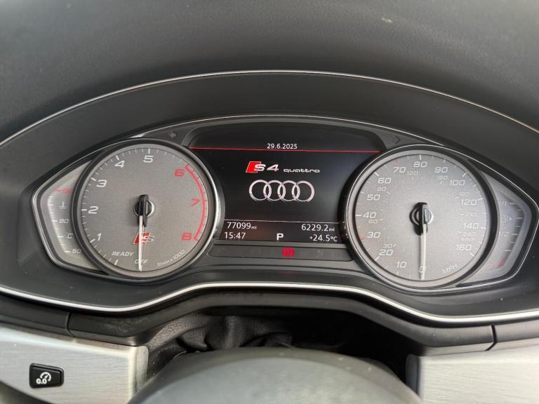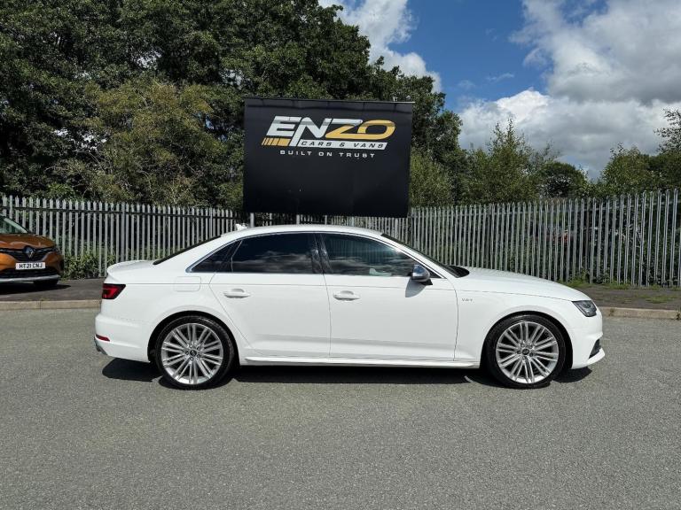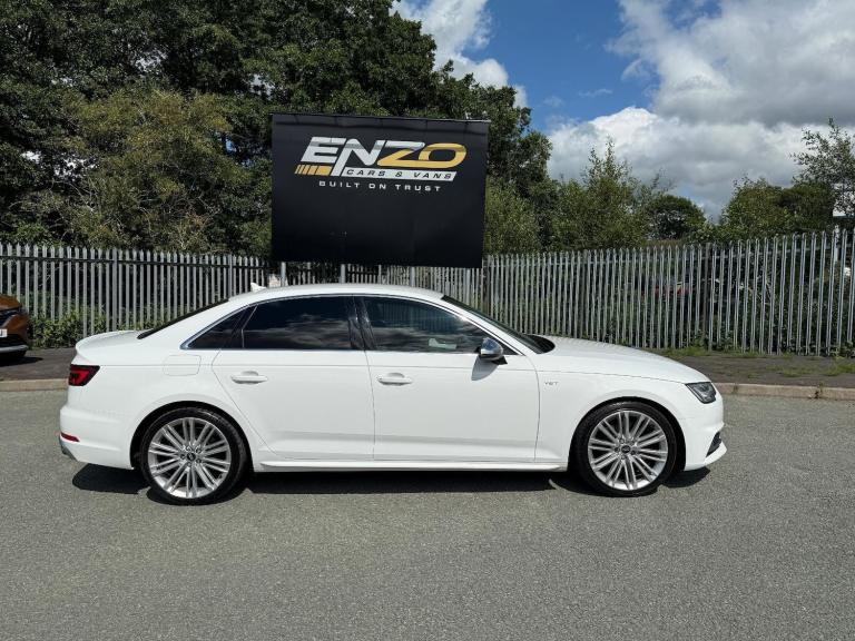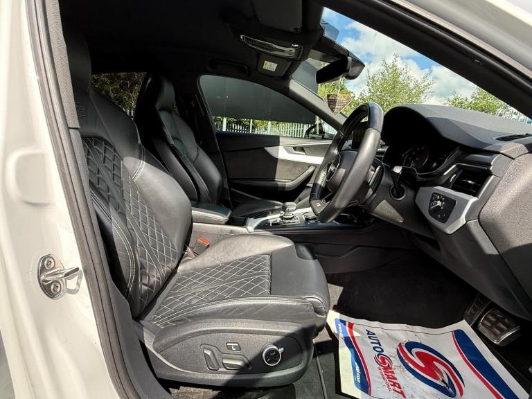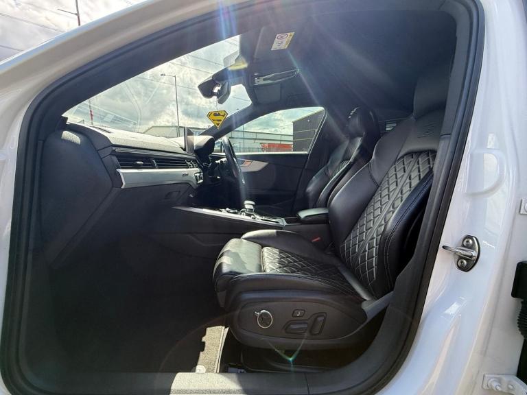 This 2019 68 registration Audi S4 TFSI Quattro is finished in white and has covered 77,000 miles, offering an excellent blend of performance, comfort and practicality. Powered by a 3.0 V6 petrol engine producing 354 PS and paired with a smooth Tiptronic automatic gearbox and legendary Quattro all wheel drive, it is Euro 6 compliant and ULEZ friendly. The specification is strong and includes deluxe 3 zone climate control, electrically adjustable and heated front seats, flat bottom multifunction steering wheel, Audi Drive Select, digital driver information display, MMI Navigation Plus with touchscreen, DAB radio, Bluetooth, Audi Smartphone Interface, cruise control with speed limiter, parking system plus, LED headlights with dynamic rear indicators, S sport suspension and 19 inch alloy wheels. With its sharp looks, refined interior and impressive performance, this Audi S4 is a superb executive sports saloon that delivers power and luxury in equal measure.