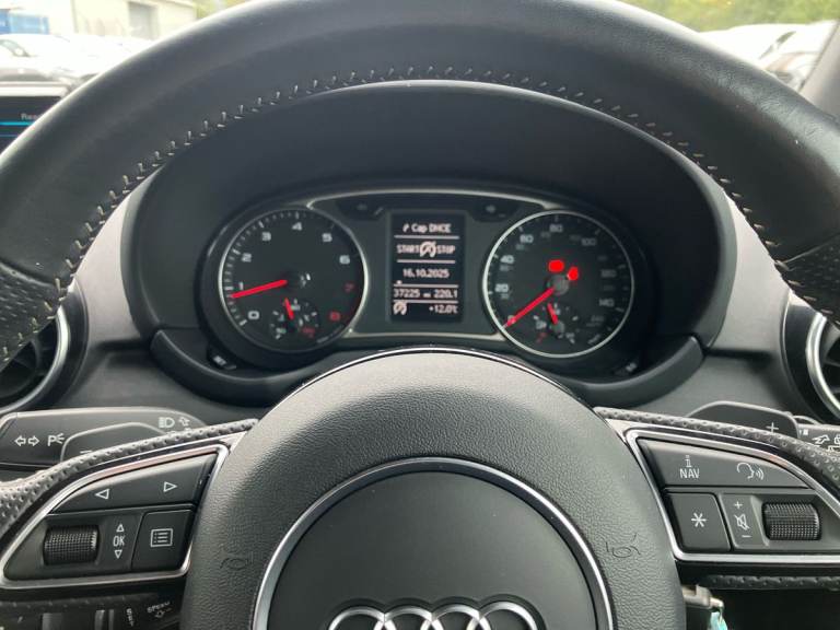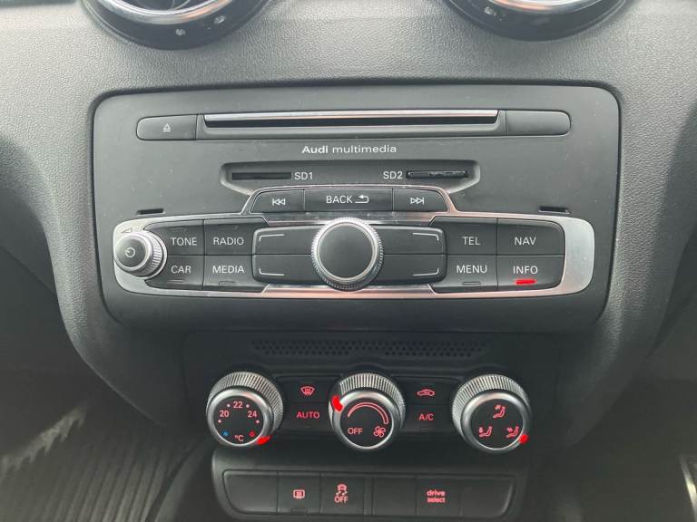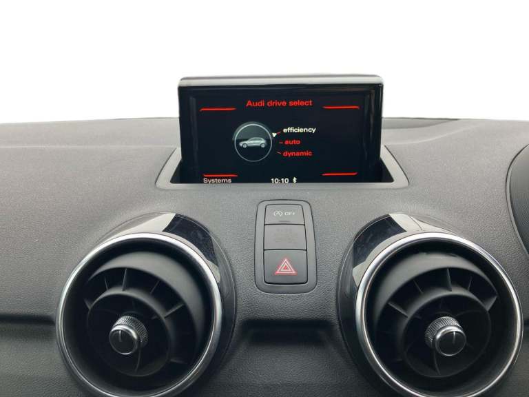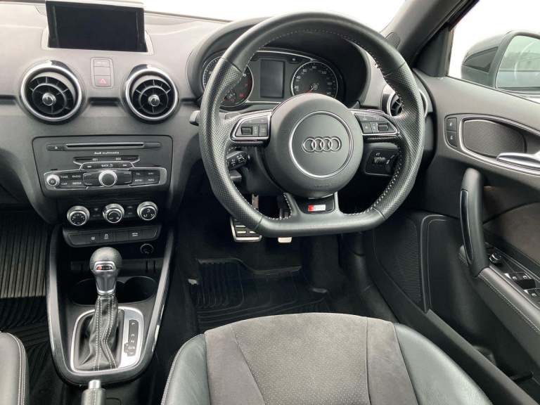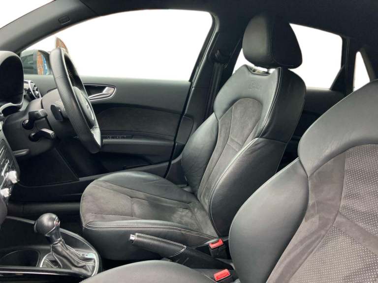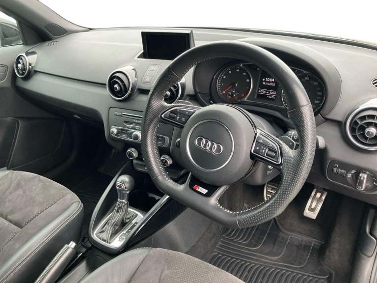 ..Audi drive select, Cruise control, Driver's information system, Electro-mechanical PAS, Low washer fluid indicator, Service interval indicator, Voice control system, Additional SD card reader, Audi music interface, Bluetooth audio streaming, DAB Digital radio, Adaptive brake lights, Body coloured bumpers, Body coloured door mirrors, Electric adjustable door mirrors, Electric front windows, Electric rear windows, Front fog lights, Heat insulating glass, Heated door mirrors, Heated rear windscreen, Privacy glass, Rain and light sensors, Rear diffuser, Rear wiper, Roof spoiler, S Line body styling, Twin oval high gloss black exhaust tail pipes, Xenon plus headlights including automatic headlights, LED daytime running lights, LED rear lights, dynamic range control and headlight washers, 12V Accessory socket in centre console, 3 rear seats, 3 spoke flat bottom multi-function leather steering wheel including paddle shift, Adjustable rear head restraints, Alcantara/leather upholstery, Black cloth headlining, Cupholders in centre console, Door sills trims with aluminium inlays, Electronic climate control (ECC), Front floor mats, Front head restraints, Front sports seats, Height adjustable front seats, Isofix attachments on outer rear seats, Jack and tool kit, Leather gear knob, Leather handbrake, Lumbar adjustment for front seats, Rake/reach adjustable steering wheel, Split folding rear seats, Stainless steel pedals, High-gloss black styling pack - A1, 3x3 point rear seatbelts, ABS/EBD, Brake assist function, Driver and passenger side airbags, Driver/Front Passenger airbags, EDL, ESP with ASR, First aid kit, Front and rear seatbelt reminder, Front passenger airbag deactivation, Head airbags, Height adjustable front seatbelts, Tyre pressure monitor, Warning triangle, Locking wheel bolts, Remote central locking with 2 remote folding keys, Thatcham category 1 alarm + immobiliser, Aluminium trim, High gloss black air vent sleeves, High gloss black centre console, Tyre repair kit