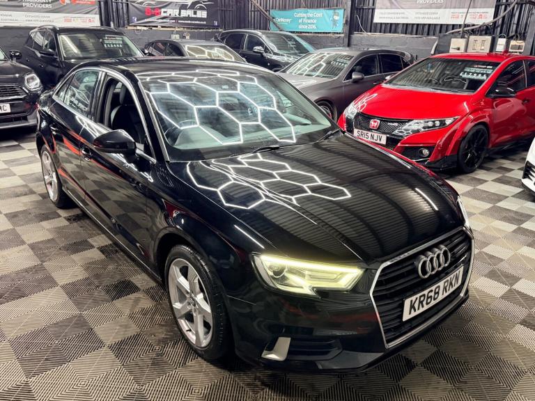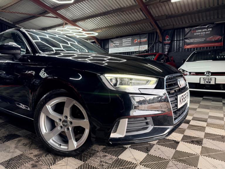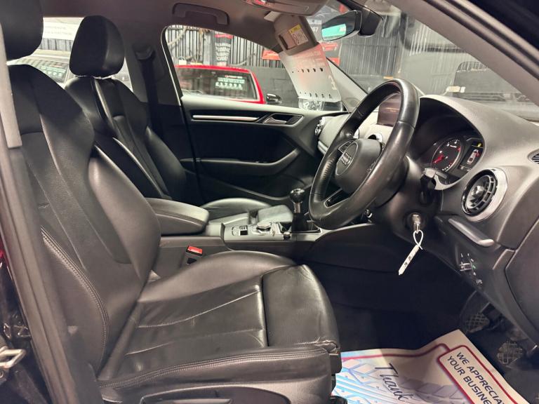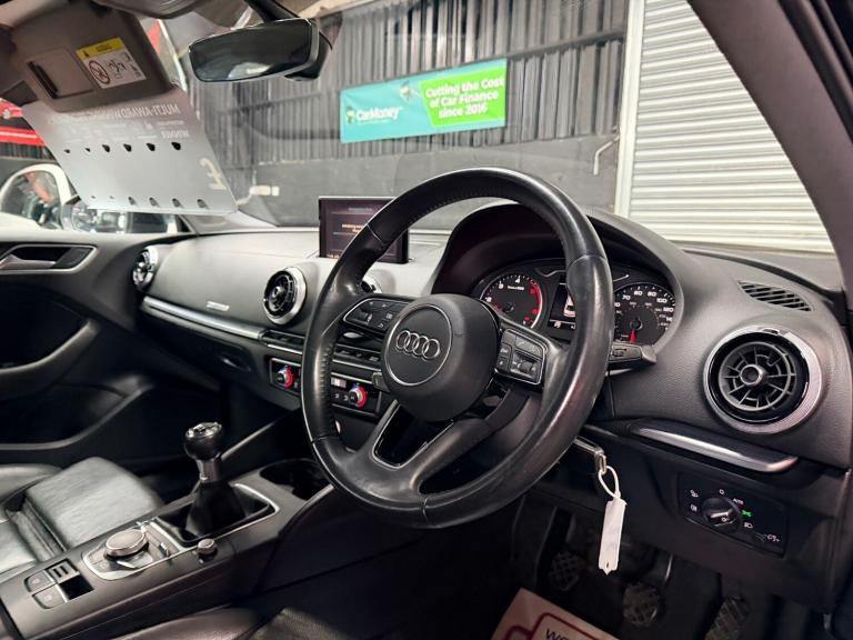VEHICLES ARRIVING DAILY ULEZ COMPLIANT SAT NAVIGATION CRUISE CONTROL FULL BLACK LEATHER PARKING SENSORS [Email address removed. Click Email button to contact us.]£8995AUDI A3 1.6 TDI 30 SPORT 2018 68REG SAT NAV BLUETOOTH AC EW PAS SD CARD 113K SERVICE HISTORY 6 MONTHS WARRANTY 12 MONTHS MOT 2 x USB Charging Ports and 1 x AUX-IN8 Passive SpeakersAudi ConnectAudi Connect Infotainment Services - 3 Month TrialAudi Smartphone InterfaceBluetooth InterfaceCD DriveDAB Digital RadioMMI Navigation - SD Card BasedMMI Radio Plus with 7in Electrically Retractable Colour MMI ScreenRear Parking SensorsTyre Pressure Warning LightAudi Drive SelectColour Drivers Information System - DISCruise ControlSport Side Air Inlet Grille and Diffuser InsertTyre Repair Kit17in Alloy Wheels - 5-Arm DesignAluminium Window TrimsAnti Theft Locking Wheel BoltsBody Coloured Door MirrorsChrome-Plated Exhaust Tailpipe TrimDoor Mirrors - Electrically Adjustable and Heated with Integrated LED Side IndicatorsElectric Windows - FrontHeated Windscreen Washer JetsModel and Engine Technology Badges at RearXenon Headlights with LED Daytime Running LightsSplit Folding Rear Seat Bench - 60-40 or FullySteering Wheel - 3-Spoke Leather - Multi-function - SportsStorage Compartments in the Door Side Trims-Centre Console-Under Drivers SeatStorage PackageTool KitAluminium Interior ElementsAuto-Dimming Rear-View Mirror with Light and Rain SensorCloth HeadliningDoor Sill Trims with Aluminium InlayDual-Zone Electronic Climate ControlFront Centre ArmrestFront and Rear Floor MatsInlays - Aluminium Mistral SilverInterior LightingLashing Points in Luggage CompartmentNon-Smoking PackageDynamic SuspensionElectromechanical Power SteeringSeat Belt Monitoring6-Airbag System with Knee Airbag for DriverAnti-Theft AlarmESC - Electronic Stabilisation Control inc ABS - ASR and EDLElectromechanical Parking BrakeFirst Aid Kit and Warning TriangleHill Hold AssistISOFIX Child Seat Mounting and Top Tether