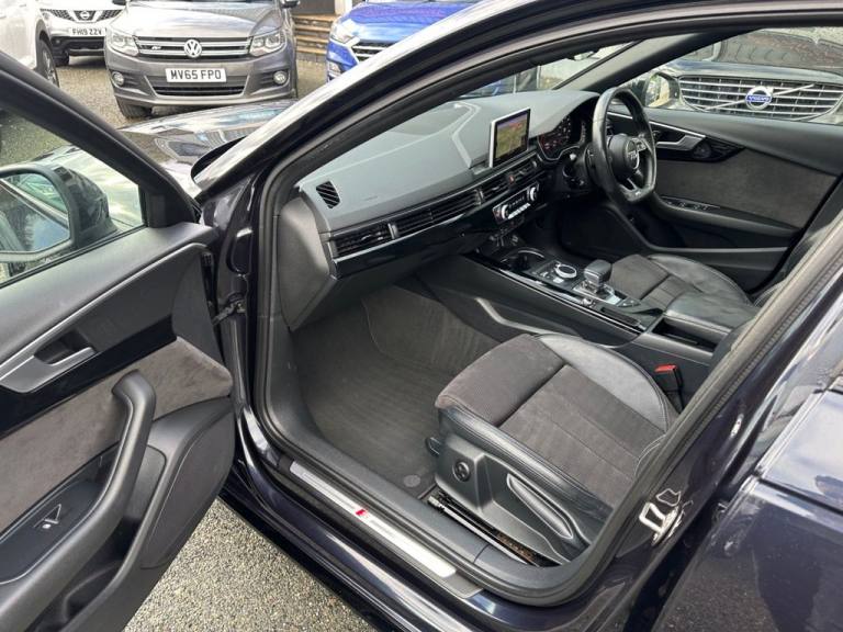 Southwest Motor Company are pleased to be offering for sale this beautiful, 2-owner, 2018 Audi A4 Avant TDI Black Edition. Finished in the gorgeous Moonlight Blue Metallic with full black Suede interior and 19-inch Diamond-cut Rotor Alloys, this A4 looks fantastic from every angle. Beautifully well kept and well presented throughout with full service history including recent Cambelt change, there can be no doubt that this vehicle has been exceptionally well cared for. A spacious cabin with ISO-Fix child seat anchors and a generous boot make this Audi an ideal choice for a family vehicle. Great specifications, including Satellite navigation, DAB radio, Bluetooth, Apple Car/Play/Android Auto Smartphone connectivity, automatic three-zone climate control, heated seats, automatic LED lights, parking sensors, multifunction flat-bottom steering wheels, electric tailgate and cruise control, ensure this Audi is a beautifully well-equipped vehicle to drive and travel in. The 2.0L diesel engine offers brilliant performance and economy, which is delivered through a silky smooth 7-speed automatic transmission (with Steering wheel paddles). With 68 mpg achievable on a run, and this vehicle also being ULEZ COMPLIANT, ensures its wonderfully cheap to own and run. A beautifully well-kept example with brilliant service history, great specifications and great practicality. Supplied serviced with a long MOT and 3 months (extendable if desired) warranty. Part-exchange welcome. All our vehicles are HPI clear. All major debit/credit cards are accepted. Great finance packages are available to suit all customer profiles. The vehicle specification displayed may not be exact for this vehicle. Please contact us to confirm the precise specifications. Southwest Motor Company Premier Used Car Sales Tavistock Devon.19in Alloy Wheels - 5-Arm Rotor Matt Titanium Look - Diamond Cut, 4-Way Electric Lumbar Support, 6-Airbag System, Anti Theft Locking Wheel Bolts, Anti-Theft Alarm, Audi Connect - 3 Month Trial, Audi Connect Safety and Service - e-call, Audi Drive Select, Audi Smartphone Interface, Audi Sound System, Auto-Dimming Rear-View Mirror, Black Styling Package, Bluetooth Interface, CD Drive, Chrome-Plated Trims for Exhaust System, Cloth Headlining in Black, Cruise Control System with Freewheeling Capability and Speed Limiter, DAB Digital Radio, Deluxe 3-Zone Electronic Climate Control, Door Handles - Body Coloured, Door Mirrors - Electrically Adjustable and Heated with Built-in LED Indicators, Driver Information System - 7in Colour Display, ESC - Electronic Stabilisation Control inc ABS - ASR and EDL, Electric Load Area Cover, Electric Windows - Front and Rear, Electromechanical Power Steering, First Aid Kit and Warning Triangle, Flat Bottomed 3-Spoke Leather High Multi-Function Steering Wheel, Front Centre Armrest, Gear Lever Knob in Black Perforated Leather, Heated Front Seats, High Gloss Package, ISOFIX Child Seat Mounting and Top Tether, Illuminated Door Sill Trims with S Logo, Inlays - Piano Finish - Black, Keyless Go, LED Headlights with LED Rear Lights and Dynamic Rear Indicators, LED Interior Light Package, Light and Rain Sensor, MMI Navigation - SD Card Based, Manual Height Adjustment for Front Seats, Multi Collision Brake Assist, Parking System Plus, Pedals and Footrest - Stainless Steel, Pop-Up Bonnet for Pedestrian Protection, Power Operated Tailgate, Pre-Sense City, Privacy Glass and Front Acoustic Glazing, Rear Diffuser in Twilight Grey Matt, Rear Grille - Black Grained, Remote Central Locking, S Line Badges on Front Wings, S line Front and Rear Bumpers and Side Skirts, Seat Belt Monitoring, Space Saver Spare Wheel, Split-Folding Rear Seat Bench in 3 Parts - 40-20-40 with Rear Centre Armrest, Sport Suspension, Sun Visors - with Vanity Mirror, Tool Kit and Car Jack, Towbar Preparation, Two USB Charging Ports, Tyre Pressure Warning Light, Voice Control, Windscreen with Acoustic Glazing