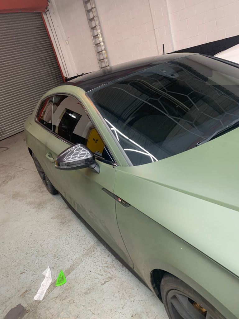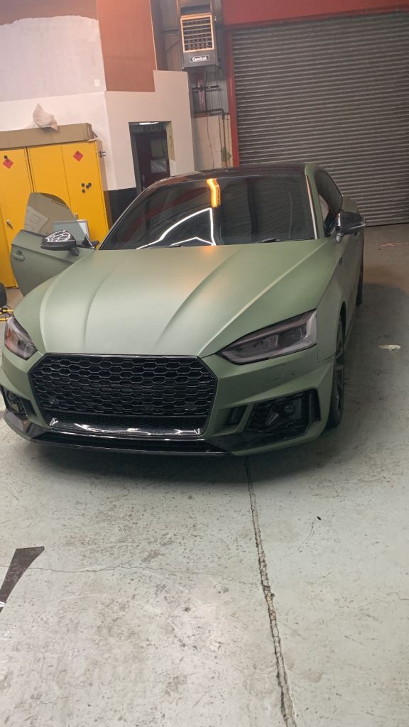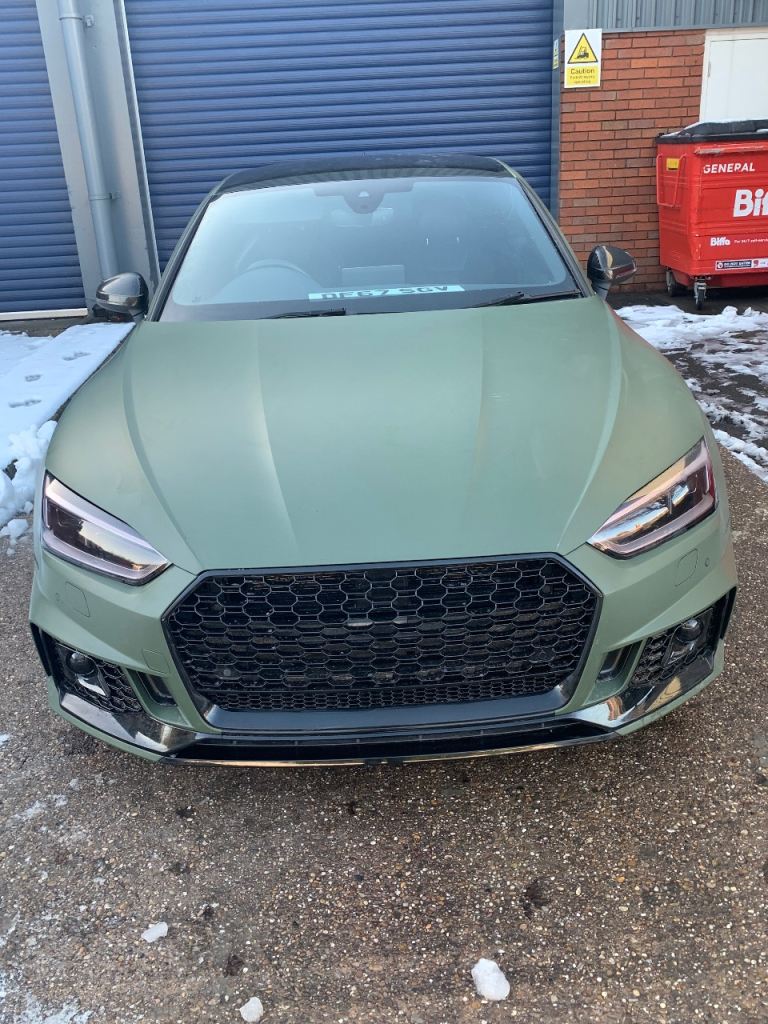 One of a kind Audi A5 S-Line 2018 Coupe wrapped in Military Green original colour underneath is Navarra Blue - wrapped on 8th Jan 2026