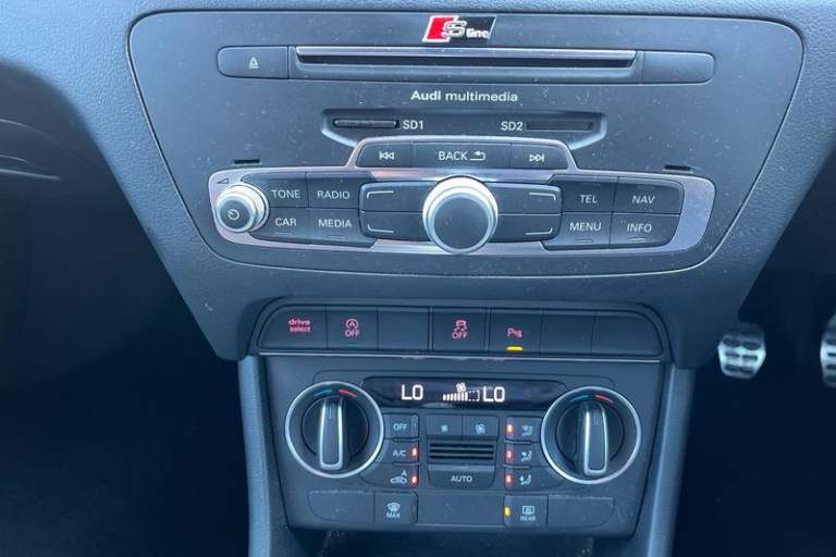 6.5 colour display screen, Audi drive select, Cruise control, Electro-mechanical PAS, Low washer fluid indicator, MMI - Multi Media Interface control system, On board computer, Remote electric boot opening/closing, Service interval indicator, Voice control system, Acoustic windscreen, Aluminium window surround, Auto dimming rear view mirror, Black exhaust tailpipes, Black high gloss door mirrors, Black roof rails, Coming home function, Door mirror integrated indicators, Front and rear electric windows, Front fog lights, Front lip spoiler, Heated windscreen washer jets, High Gloss Black Contrast Bumpers, High Gloss Black rear spoiler, LED daytime running lights, LED headlights with headlight washers, LED rear lights, Light and rain sensor for auto activation of lights and windscreen wipers, Loading sill protector in stainless steel, Privacy glass, Rear diffuser with platinum insert, Rear wiper, S Line body styling, Sunband for windscreen, 12V socket in rear centre console, 3 spoke flat bottom multi-function perforated leather steering wheel with contrast stitching, Aluminium door sill trims, Aluminium gear knob, Black cloth headlining, Door sill trim strips, Dual zone climate control, Electric front lumbar adjustment, Front and rear headrests, Front and rear velour floor mats, Front centre armrest with storage compartment and angle adjustment, Front sports seats, Height/reach adjust steering wheel, ISOFIX on front passenger and rear outer seats, Jack and tool kit, Retractable