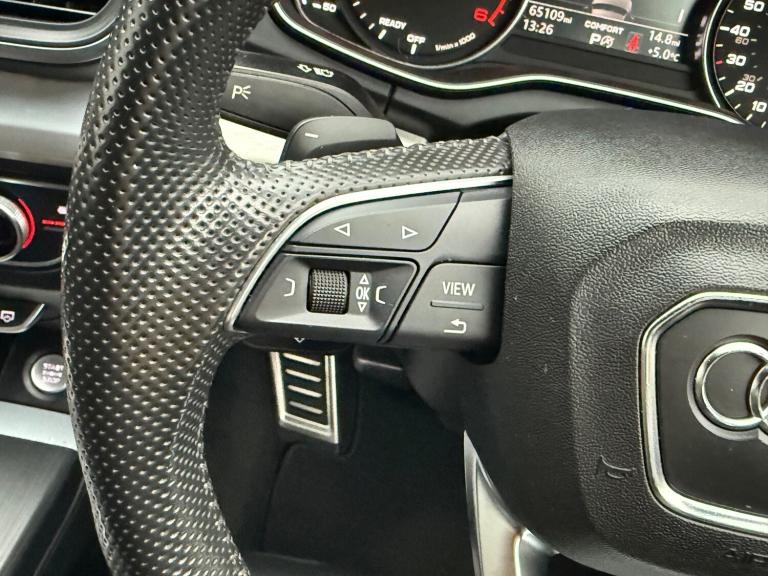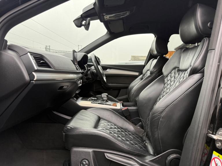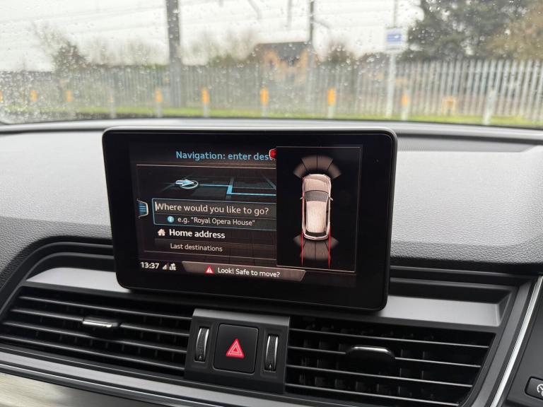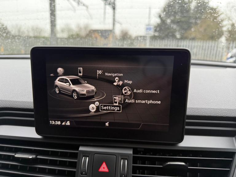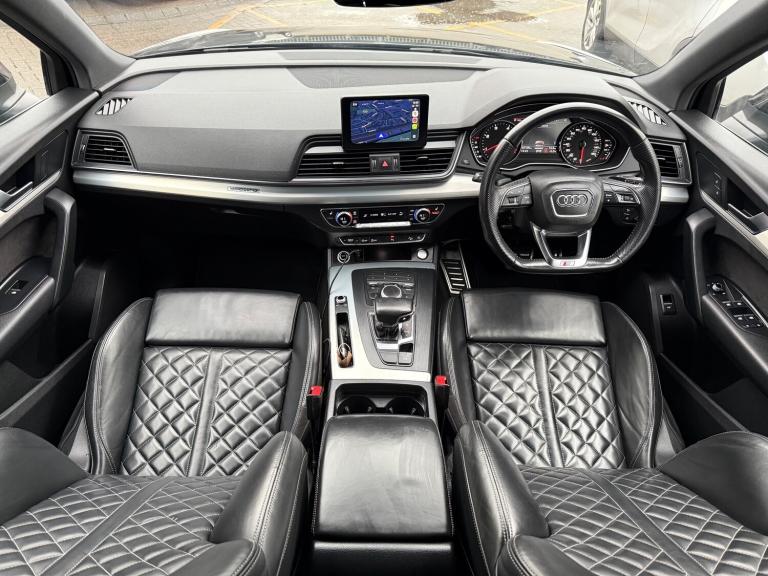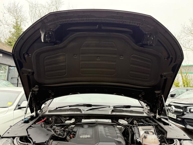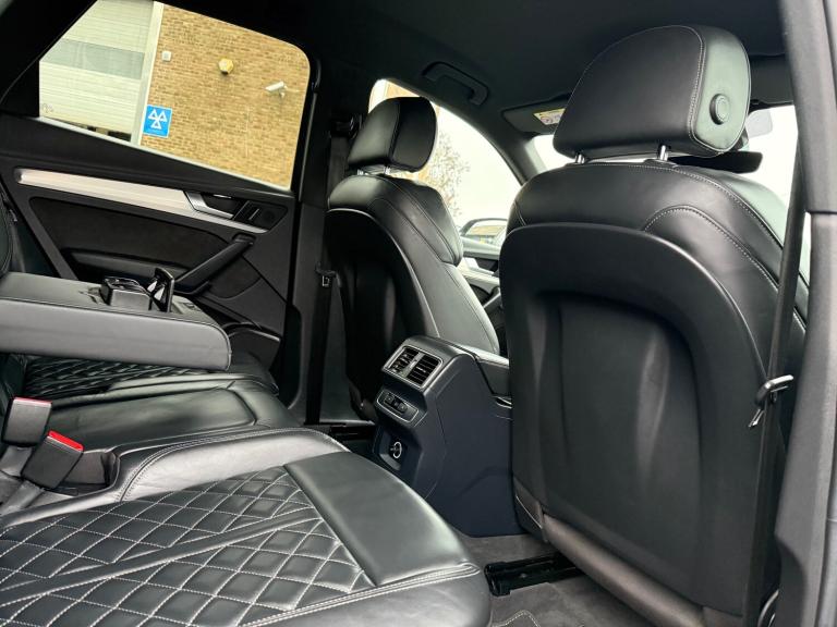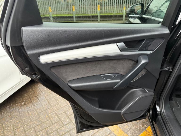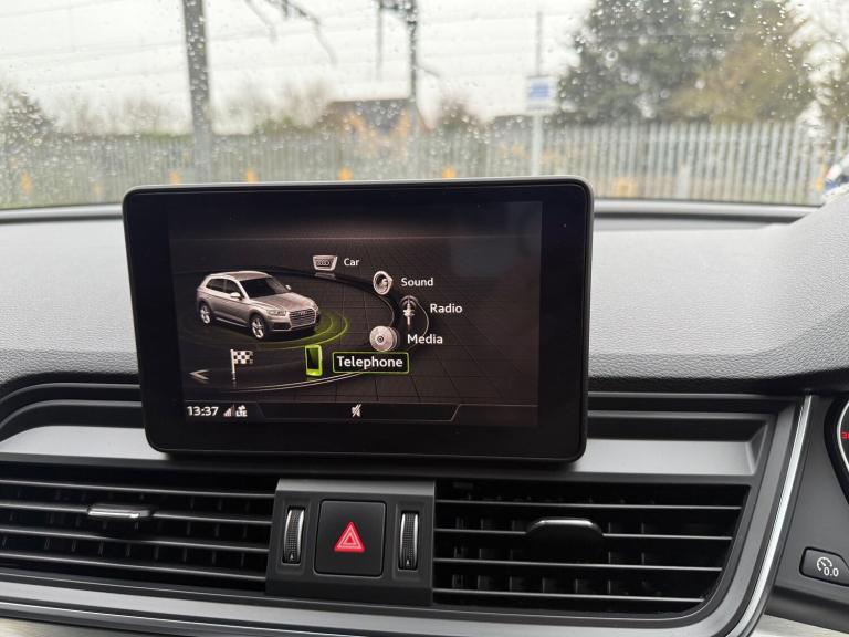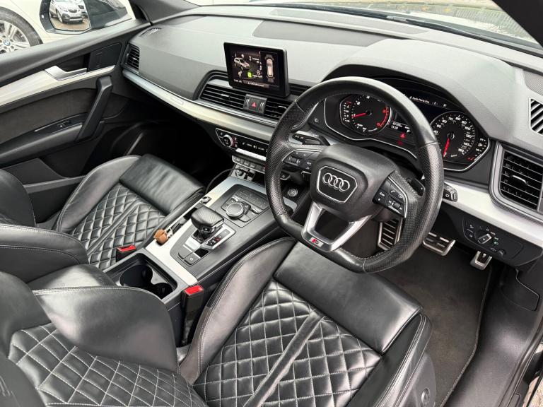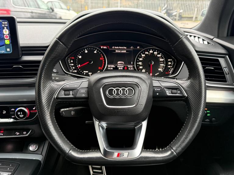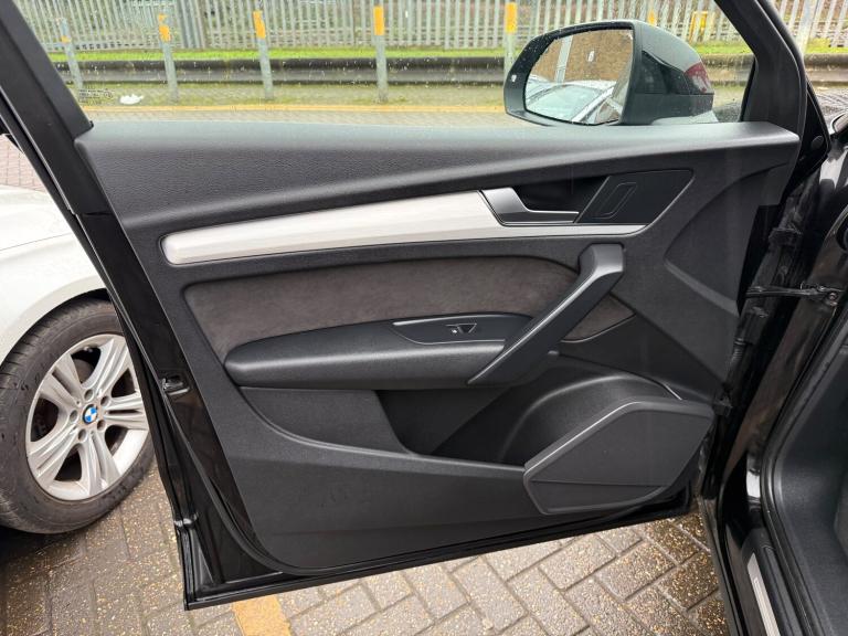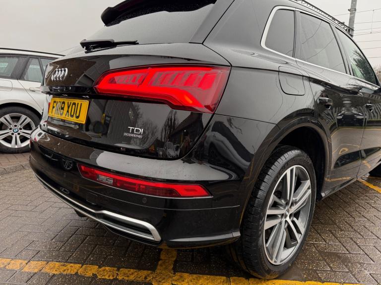 2 KEYS, ULEZ FREE, NAVIGATION, BLUETOOTH, FRESH SERVICE (TOTAL 5 SERVICES), MOT 01/06/2026, LEATHER SEATS, HEATED SEATS This 2018 Audi Q5 2.0 TDI S line SUV with 65,100 miles on the clock is a reliable and efficient diesel vehicle that is ULEZ compliant and comes with a valid MOT until 01/06/2026. It boasts 5 seats and 5 doors, making it a spacious and practical choice for families or those with an active lifestyle. The exterior features 19in Alloy Wheels, Aluminium Roof Rails, and Body Coloured Door Mirrors, while the interior offers Electrically Adjustable and Heated Door Mirrors with Integrated LED Side Indicators. With its powerful 190 ps engine and S Tronic quattro transmission, this SUV offers a smooth and exhilarating driving experience, perfect for both urban and off-road adventures. Features Include: , 19in alloy wheels - 5-twin-spoke star design - diamond cut finish, aluminium roof rails, anti theft locking wheel bolts, body coloured door mirrors, door mirrors - electrically adjustable and heated with integrated led side indicators, electric windows - front and rear, high-gloss package, privacy glass with acoustic glazing for front windows, radiator grille in twilight grey with horizontal matt aluminium struts, rear diffuser in body colour with matt aluminium silver surrounds, s line badges on the front wing panels, s line front and rear bumpers, s line roof spoiler, s line side skirts, side and rear windows in heat-insulating glass, tyre repair kit, windscreen with acoustic glass, 2 x sdxc card readers, 2 x usb charging ports and 1 x aux-in, audi connect infotainment services - 3 month trial, audi connect safety and service - e-call, audi smartphone interface, audi sound system, bluetooth interface, cd drive, dab digital radio, mmi navigation - sd card based, mmi radio plus with 7in colour mmi screen and mmi controller, tow bar preparation, 4-way electric lumbar support, auto-dimming rear-view mirror, cloth headlining in black, contrast stitching on seats - steering wheel and gear lever gaiter, deluxe 3-zone climate control, electric boot lid release, email - calendar and text messages can be displayed on your vehicles mmi, front centre armrest, front sports seats with s embossed logo, front and rear floor mats, gear lever knob in black perforated leather, heated front seats, high multi-function 3-spoke leather steering wheel with grips in perforated leather and s badging with gear-shift paddles, illuminated door sill trims with s logo,