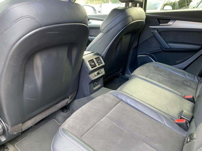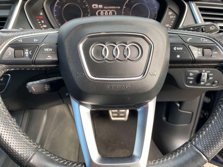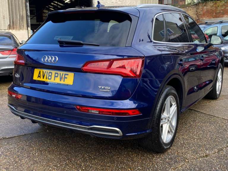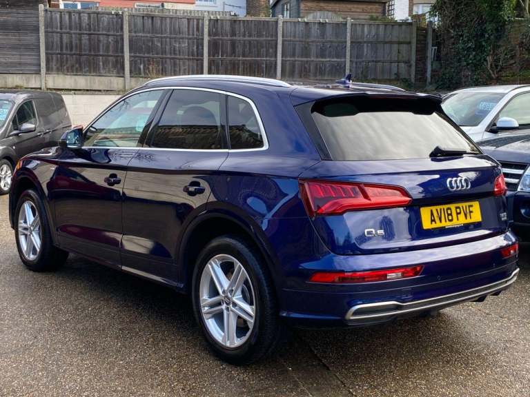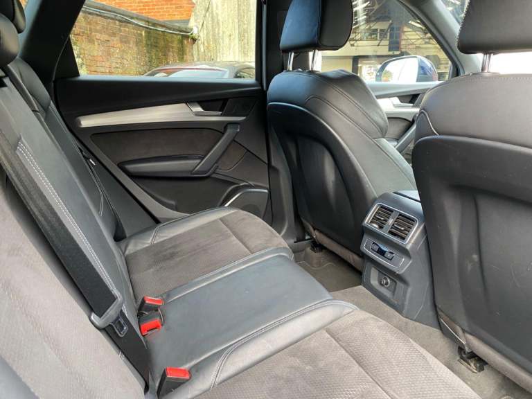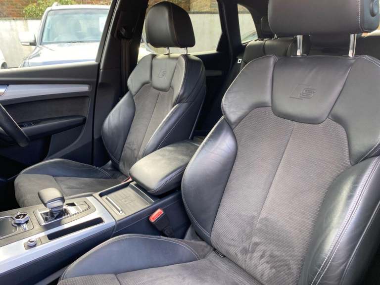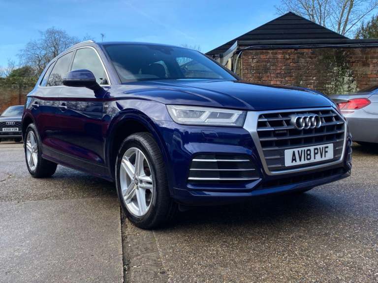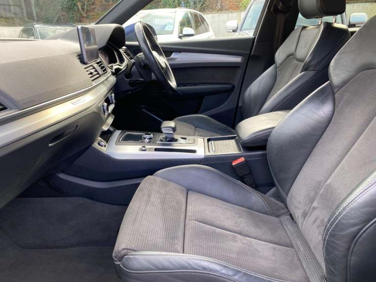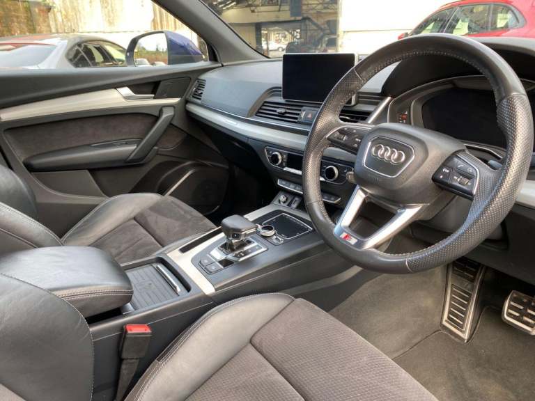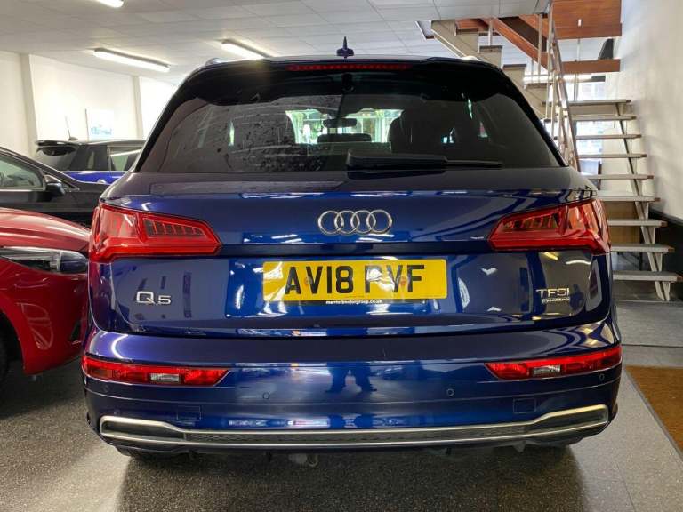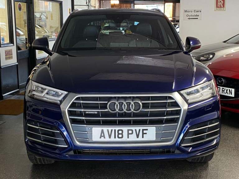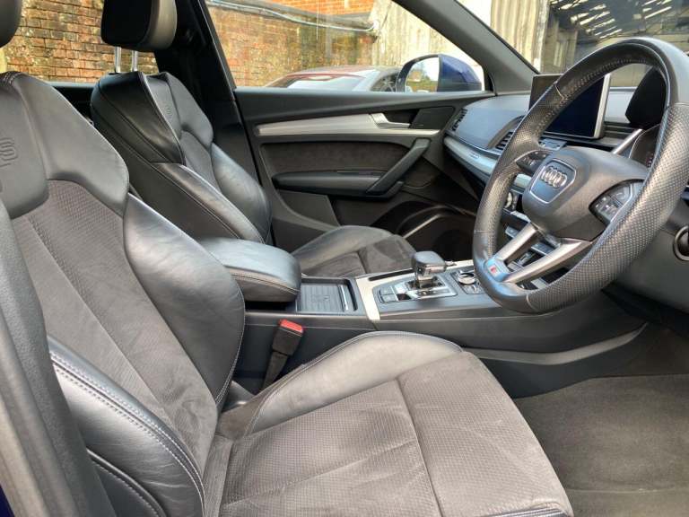 High seated Petrol ULEZ Auto, 4 wheel drive. This Q5 is finished in Metallic Navarra Blue with Black Suede cloth S Line Embossed seats. It is fitted with Digital Dash, remote locking, electric windows, power folding mirrors, power tailgate operation, three zone climate control, cruise control, heated front seats, tinted rear glass, Audi Satellite Navigation, Bluetooth, CarPlay, LED lights, front rear parking sensors, 19 alloy wheels, Media interface, DAB Stereo with multimedia and more. It has had two owners from new. It comes with a Audi Independent Service history consisting of invoices at [Phone number removed] [Phone number removed] 47117 58718 78367 and 92687 miles. The current Mot runs till May. We will supply the car with a service,12 months MOT along with a 6 months RAC insured Warranty and 12 months Roadside cover. Finance is available from 9.9 APR subject to status and extended warranties are available. This Q5 is superb throughout, offers comfort with executive specification levels, along with economy and performance. WHATSAPP Available 07967962192. LOW Rate Finance Available including PCP. For more information please visit [Website URL removed] or phone 01787 475329 07967962192, HIGH STREET LOCATION CARS UNDERCOVER IN SHOWROOM, p x considered