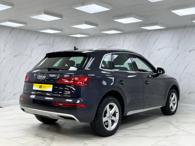 This Audi Q5 TFSI Sport boasts a full service history, ensuring its excellent provenance. Registered in 2018, this Four Wheel Drive model features a 2.0 litre petrol engine and meets Euro 6 emissions standards. Inside, youll find comfortable Milano Leather in Black, complemented by 18 inch Alloy Wheels in a 5 Arm Turbine Design. For convenience, it includes a Bluetooth interface and an Audi Parking System Plus with front and rear sensors. The Xenon headlights with LED Daytime Running Lights provide excellent visibility. Experience impressive performance with this Q5, capable of accelerating from 0 to 60mph in just 6.3 seconds, a highlight that demonstrates its dynamic capability compared to similar vehicles. This model is also equipped to tow up to 2400 kg, offering versatility for various needs. A clear vehicle history check provides peace of mind, and the vehicle will be supplied with 12 months MOT. Part Exchange Welcome. All Majors Cards Accepted. We Have Finance Available. A Wide Range of Warranties. We Also Offer Low Cost, Nationwide Delivery Available From £1.50 a Mile. **Every endeavour is made to ensure specifications and descriptions are correct. Due to model changes specification may vary. Phone for details. MPG figures shown are government official figures.**.18in Alloy Wheels - 5-Arm Turbine Design, Moonlight Blue, Milano Leather - Black, 18in Alloy Wheels - 5-Arm Star Design, 2 x SDXC Card Readers, 2 x USB Charging Ports and 1 x AUX-IN, 4-Way Electric Lumbar Support, 6-Airbag System, Air Inlets in Matt Titanium Black with Blades in Matt Aluminium Silver, Aluminium Roof Rails, Anti Theft Locking Wheel Bolts, Anti-Theft Alarm, Audi Connect Infotainment Services - 3 Month Trial, Audi Connect Safety and Service - e-call, Audi Drive Select, Audi Parking System Plus, Audi Pre-Sense City, Audi Smartphone Interface, Audi Sound System, Auto-Dimming Rear-View Mirror, Automatic Headlight Adjustment, Bluetooth Interface, Body Coloured Door Mirrors, CD Drive, Cloth Headlining, Colour Drivers Information System with 7in Display, Cruise Control with Speed Limiter, DAB Digital Radio, Deluxe 3-Zone Climate Control, Door Mirrors - Electrically Adjustable and Heated with Integrated LED Side Indicators, Door Sill Trims with Aluminium Inlays, Dynamic Suspension, ESC - Electronic Stabilisation Control inc ABS - ASR and EDL, Electric Boot Lid Release, Electric Windows - Front and Rear, Electromechanical Parking Brake, Electromechanical Power Steering, Email - Calendar and Text Messages can be Displayed on your Vehicles MMI, First Aid Kit and Warning Triangle, Front Centre Armrest, Front Sports Seats, Front and Rear Floor Mats, Heated Front Seats, High Multi-Function 3-Spoke Leather Steering Wheel with Gear-Shift Paddles, High-Gloss Package, Hill Descent Control, Hill Hold Assist, ISOFIX Child Seat Mounting and Top Tether, Inlays - Aluminium Rhombus, Keyless Go, LED Interior Lighting Pack, LED Rear Lights, Light and Rain Sensor, MMI Navigation - SD Card Based, MMI Radio Plus with 7in Colour MMI Screen and MMI Controller, Manual Seat Adjustment, Pop-Up Bonnet for Pedestrian Protection, Power Operated Tailgate, Radiator Grille in Twilight Grey with Horizontal Matt Aluminium Struts, Rear Diffuser Strip in Selenite Silver, Rear Spoiler, Remote Central Locking, Removable Luggage Compartment Floor, Removable Net Partition, Seat Belt Monitoring, Side Skirts in Matt Selentine Silver, Side and Rear Windows in Heat-Insulating Glass, Split Folding Rear Seat Bench - 40-20-40 with Rear Seat Armrest, Stainless Steel Loading Sill Protector, Tool Kit and Car Jack, Tow Bar Preparation, Tyre Pressure Warning Light, Tyre Repair Kit, Underbody Protection in Matt Selenite Silver, Voice Control System, Windscreen with Acoustic Glass, Xenon Headlights wit
