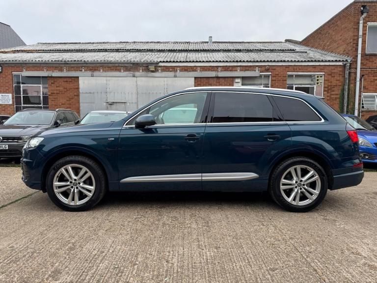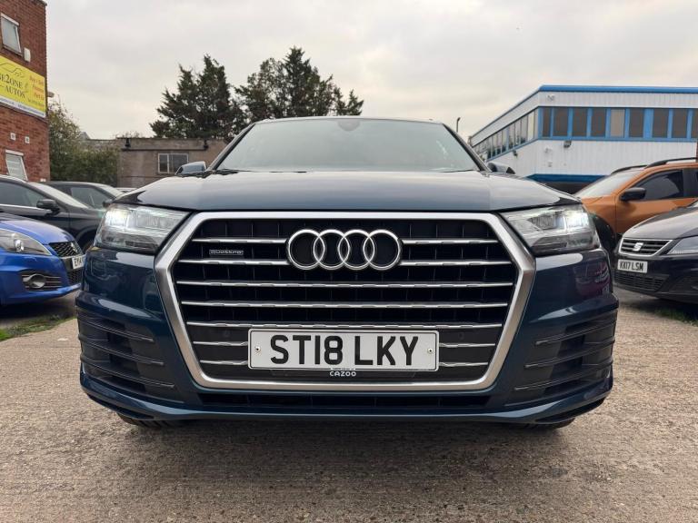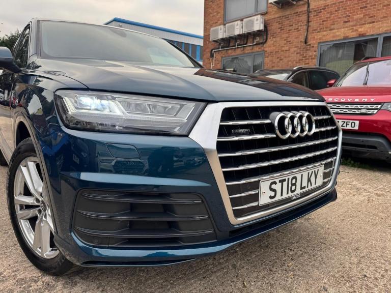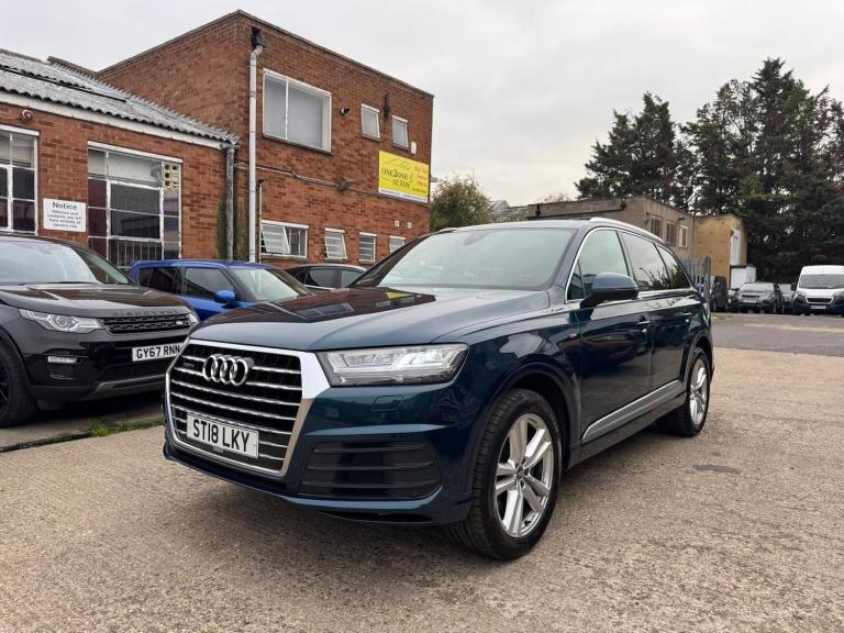This 2018 Audi Q7 TDI V6 S line boasts exceptionally low mileage for its age, having covered just 62,925 miles. This impressive seven seater SUV features a powerful 3.0 litre diesel engine paired with Audi's renowned Four Wheel Drive system, ensuring excellent performance and grip. As a Euro 6 compliant vehicle, it meets stringent emission standards. The S line trim level enhances its sporty appeal, and it comes equipped with a host of desirable features including Deluxe Four Zone Automatic Climate Control for personalised comfort, and advanced LED headlights with dynamic rear indicators and high beam assist for superior visibility. The convenience of a Bluetooth interface for seamless connectivity and a light and rain sensor that automatically adjusts headlights and wipers are also included, alongside electric front heated seats for added comfort during colder journeys. Other notable features include electric rear seats, rear view camera, cockpit, navigation system, front and rear parking sensors, electric tail gate and wing mirrors, and Audi Interface.The Audi Q7 TDI V6 S line offers a compelling blend of luxury, performance, and practicality. Its acceleration from 0 to 62 miles per hour in just 6.5 seconds highlights its dynamic capabilities, making it a responsive drive. Furthermore, its low insurance group rating indicates that running costs are kept competitive, which is a significant advantage for potential owners. With a substantial towing weight of 2800 kg, this Q7 is also exceptionally capable for those needing to tow caravans, trailers, or horseboxes, demonstrating its versatility beyond everyday family transport.2 PREVIOUS OWNERS, FRESH MOT, ULEZ COMPLIANT, FINANCE PACKAGE AVAILABLE, 12 MONTHS AA BREAKDOWN COVER, 5 DAYS DRIVE AWAY INSURANCE AVAILABLE T & C APPLY, PARTS AND LABOUR WARRANTY, SERVICE HISTORY AVAILABLE, RECENTLY SERVICED.