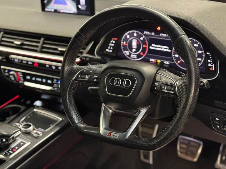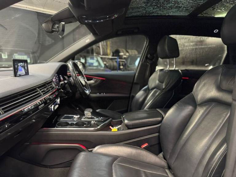 Audi Connect Infotainment Services - 36 Month Trial, Audi Connect Safety and Service, Audi Smartphone Interface, Audi Sound System, Bluetooth Interface, MMI Navigation Plus including MMI Touch, MMI Radio Plus and DAB, Online Media Streaming - Audi MMI Connect App Required, Audi Drive Select, Audi Parking System Plus, Colour Drivers Information System with 7in High-Resolution TFT Screen, Cruise Control with Speed Limiter, Rear View Camera, Tyre Pressure Loss Indicator, Voice Control System, 21in Alloy Wheels - 5-Spoke Blade Design Anthracite Black-Polished-Gloss Turned Finish, Anti Theft Locking Wheel Bolts, Door Mirrors - Heated-Electrically Adjustable-Folding, Electric Windows - Front and Rear, Panoramic Glass Sunroof, Privacy Glass, Titanium Black Door Mirrors, Titanium Black Styling Pack with Black Roof Rails, Tyre Repair Kit, Automatic Headlight Adjustment, High-Beam Assist, LED Headlights with LED Rear Lights and Dynamic Rear Indicators and High-Beam Assist, Light and Rain Sensor, 7 Seats, Audi Virtual Cockpit, Auto-Dimming Rear-View Mirror, Cloth Headlining in Black, Deluxe Four-Zone Automatic Climate Control, Electrically Adjustable 4-Way Lumbar Support, Electrically Adjustable Front Seats, Email and Text Messages can be Displayed on your Vehicles MMI, Extended LED Interior Lighting Package - Multi-Coloured, Front and Rear Floor Mats, Front Centre Armrest - Adjustable, Heated Front Seats, Interior Light Package, Keyless Go, Luggage Compartment Sill Protection in Stainless Steel, Pedals in Stainless Steel, Power Operated Tailgate, Steering Wheel - 3-Spoke Leather-Multi-function-Flat Bottomed-Sports-Shift Paddles, Tool Kit, Upper Inlays in Piano Black and Lower Inlays in Chrome Paint - Slate Grey, Adaptive Air Sport Suspension, Power Steering, 6-Airbag System, Anti-Theft Alarm, Audi Hill Hold Assist, Audi Pre-Sense City, Electromechanical Parking Brake, ESC - Electronic Stabilisation Control inc ABS - ASR and EDL, First Aid Kit and Warning Triangle, Hill Descent Control, ISOFIX Child Seat Mounting, Remote Central Locking, Seat Belt Monitoring.Audi Q7 Black Edition 3.0 V6 – 2018 Ocra Black Metallic High Spec Ideal Family SUVA superb example of the Audi Q7 Black Edition finished in Ocra Black Metallic, offering luxury, performance, and practicality in equal measure. This vehicle has been well maintained, has only 2 previous owners, and benefits from over £4,800 worth of optional extras, making it an excellent value, high-spec family SUV. 6 months warranty included.12 Months MOT. Service history (Audi main dealer & trusted independent specialists)Specification Highlights & FeaturesPanoramic glass sunroof – floods the cabin with natural light and enhances the feeling of space, especially for rear passengersValcona leather S-Line sports seats – premium leather with S-Line embossing, offering excellent comfort and support on long journeysElectric front seats – effortless adjustment for the perfect driving positionHeated front seats – ideal for colder mornings and added comfort year-roundAmbient lighting pack – creates a refined, modern cabin atmosphere during night drivingFlat-bottom multifunction steering wheel – sporty feel with easy access to key controlsFull leather interior – high-quality materials throughout for a truly premium experienceReversing camera – makes parking and manoeuvring this large SUV simple and stress-freeApple CarPlay – seamless smartphone integration for navigation, music, and callsBlack Edition styling – enhanced exterior presence with sleek, aggressive detailingOcra Black Metallic paint – a deep, glossy finish that looks exceptional in all lighting conditionsPerformance & EconomyPowerful 3.0 V6 engine producing approximately 280–290 bhp0–60 mph in around 6 seconds, impressive acceleration for a luxury SUVSmooth automatic transmission delivering refined yet responsive drivingCombined fuel economy of approximately 35–40 mpg (driving style dependent)Comfortable and quiet on long motorway journeys while remaining confident and capableSummaryThis Audi Q7 is a highly specified, well-cared-for example that offers space, safety, luxury, and strong performance. An ideal family car with premium features, excellent road presence, and low ownership history.Viewing and test drives welcome.