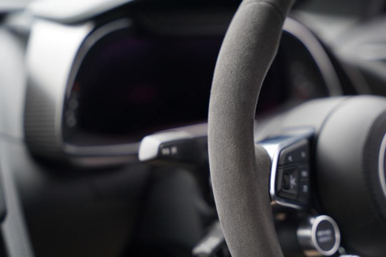 Stepping inside the meticulously crafted cabin, you're greeted by a world of luxury and sportiness. Carbon fibre accents adorn the interior, seamlessly blending with exquisite craftsmanship. The leather-trimmed seats and steering wheel provide a tactile connection to the road, while the unique badging and stitching emphasise its exclusivity.