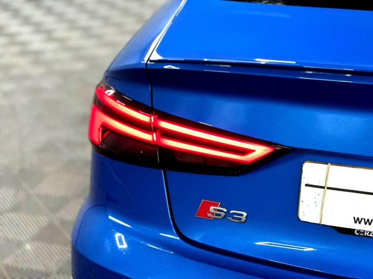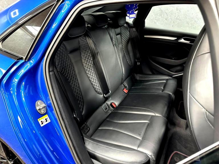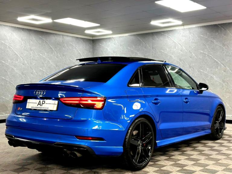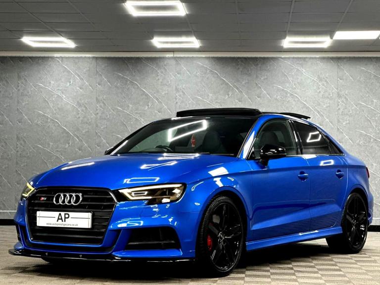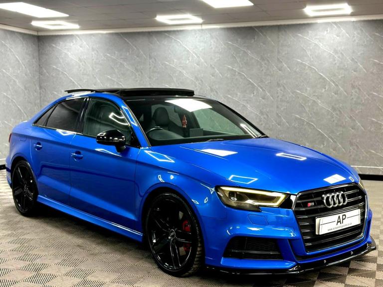 YORKSHIRE'S LARGEST PROVIDERS OF BESPOKE PERFORMANCE & PRESTIGE VEHICLES..BUY WITH COMPLETE CONFIDENCE...AUTOPRESTIGE ARE PROUD TO PRESENT THIS STUNNING AUDI S3 GENUINE BLACK EDITION SALOON FINISHED IN AUDI EXCLUSIVE CRYSTAL EFFECT ARA BLUE OVER 3 STAGE HEATED S EMBOSSED BLACK SUPER SPORT BUCKET SEATS...TOTALLY STANDARD CAR...FULL SERVICE HISTORY INCLUDING THE ALL IMPORT ALL WHEEL DRIVE HALDEX SERVICE..DSG SERVICE AND 4 NEARLY NEW MICHELIN PILOT SPORT TYRES..2 KEYS AND MAJOR SPARK PLUG SERVICE COMPLETED...LAST OWNER 4 YEARS...REAR DISCS PADS AND TYRES REPLACED AT LAST MOT..THIS WILL NOT BE AROUND FOR LONG DUE TO ITS EXTREMELY HIGH SPEC AND HUGE AFTERMARKET UPGRADES..19 INCH 5 SPOKE AUDI SPORT ALLOYS FINISHED IN GLOSS BLACK CONTRASTED OVER CANDY-RED S CALIPERS, FACTORY SPECIFICATION INCLUDES FACTORY BLACK OPTICS PACK,SLIDING PANORAMIC GLASS SUNROOF WITH AUTO BLIND, AUDI S EMBOSSED SUPER SPORT BUCKET SEATS WITH ELECTRONIC LUMBAR SUPPORT,BANG OLUFSEN SOUND,HEATED ELECTRIC AUTO-DIMMING MIRRORS, REVERSE CAMERA, BT AUDIO,USB AUDIO,REAR PARK ASSIST,INTERIOR EXTENDED LIGHTING PACK WITH FOOTWELL LIGHTING PLUS THE USUAL S UPGARDES..THIS IS A STUNNING EXAMPLE WITH NO EXPENSE SPARED..SUPPLIED WITH ALL SUPPORTING PAPERWORK. ITS A LOVELY STANDARD CAR WITH SENSIBLE MILEAGE...