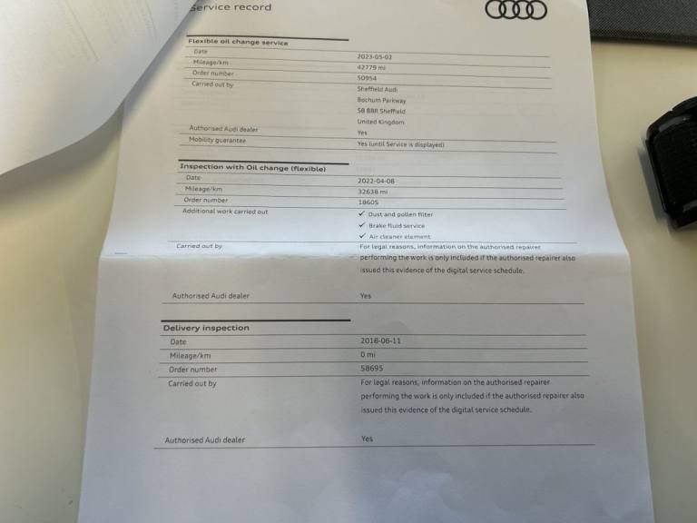 This 2018 Audi S4 TFSI V6 is a superb example of German engineering, boasting a powerful 3.0 litre petrol engine and a sophisticated four wheel drive system for exceptional handling. As a Euro 6 compliant vehicle, it meets modern emission standards. Inside, you will find comfort and convenience with heated front seats and a deluxe 3 zone electronic climate control system. Connectivity is made easy with the Bluetooth interface, and parking is a breeze thanks to the Parking System Plus, which includes front and rear sensors. The striking LED headlights and dynamic rear indicators ensure excellent visibility and a distinctive presence. The performance of this Audi S4 is truly impressive, achieving 0-60mph in just 4.5 seconds, a figure that highlights its dynamic capabilities and sets it apart from many other vehicles in its class. Furthermore, its placement in a low insurance group makes it a more economical choice for owners. This combination of exhilarating acceleration, advanced technology, and practical considerations makes this S4 a compelling proposition for any discerning driver..19in Alloy Wheels - 10-V Spoke Design, 4-Way Electric Lumbar Support, 6-Airbag System, Aluminium-Effect Door Mirror Housings, Anti Theft Locking Wheel Bolts, Anti-Theft Alarm, Audi Beam - Exterior Puddle Lighting with Audi Rings Logo, Audi Connect (3 Year Subscription From New), Audi Connect Safety and Service - e-call, Audi Drive Select, Audi Smartphone Interface, Audi Sound System, Auto-Dimming Rear-View Mirror, Bluetooth Interface, Brake Calipers Painted in Black with S4 Logo at the Front, CD Drive, Cloth Headlining in Black, Cruise Control System with Freewheeling Capability and Speed Limiter, DAB Digital Radio, Deluxe 3-Zone Electronic Climate Control, Door Handles with Chrome Trim, Door Mirrors - Electrically Adjustable and Heated with Built-in LED Indicators, Driver Information System - 7in Colour Display, ESC - Electronic Stabilisation Control inc ABS - ASR and EDL, Electric Boot Lid Release, Electric Windows - Front and Rear, Electrically Adjustable Front Seats, Electromechanical Power Steering, Extended Interior Upholstery Pack, First Aid Kit and Warning Triangle, Flat Bottomed 3-Spoke Leather High Multi-Function Steering Wheel, Front Centre Armrest, Gear-lever Knob in Black Leather, Gear-lever with Diamond S Badge, Heated Front Seats, High Gloss Package, High-Beam Assist, ISOFIX Child Seat Mounting and Top Tether, Illuminated Door Sill Trims with S Logo, Inlays - Matt Brushed Aluminium, Key with S4 Logo, Keyless Go, LED Headlights with LED Rear Lights and Dynamic Rear Indicators, LED Interior Light Package, Light and Rain Sensor, MMI Navigation Plus with 8.3in High Resolution Colour Screen, MMI Touch Control Panel, Multi Collision Brake Assist, Parking System Plus, Pedals and Footrest - Stainless Steel, Pop-Up Bonnet for Pedestrian Protection, Pre-Sense City, Rear Spoiler, Remote Central Locking, S Instrument Dials, S Model Enhanced Braking System, S Radiator Grille in Twilight Grey Matt with Dual Struts in Aluminium and S4 Logo, S Rear Diffuser in Twilight Grey - Matt and Honeycomb Grille in Black, S Specific Air Inlets in Titan Black with Chrome Inlays in Unique S Design, S Specific Dual-Branch Chrome Tailpipes with Twin Oval Pipes Each on Left and Right, S Sport Suspension, Seat Belt Monitoring, Space Saver Spare Wheel, Split-Folding Rear Seat Bench in 3 Parts - 40-20-40 with Rear Centre Armrest, Sun Visors - with Vanity Mirror, Tool Kit and Car Jack, Towbar Preparation, Two USB Charging Ports, Tyre Pressure Warning Light, Voice Control, Wind