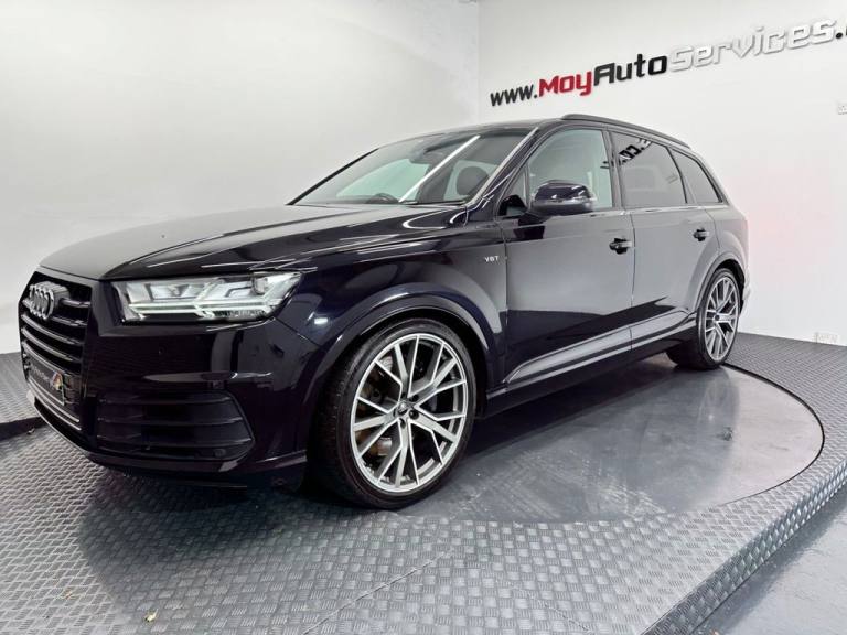 Whether you are searching for a NEW or USED car, Moy Auto Services is your One Stop Auto Shop. We can arrange delivery to anywhere in the UK & Ireland..20in Alloy Wheels - 5-Arm Off Road Design - Matt Titanium Look Gloss Turned, 6-Airbag System, 7 Seats, Active Sound Exhaust System, Adaptive S Air Suspension, Aluminium Roof Rails, Aluminium Window Trims, Aluminium-Effect Door Mirror Housings, Anti Theft Locking Wheel Bolts, Anti-Theft Alarm, Audi Beam, Audi Connect Infotainment Services - 36 Month Trial, Audi Connect Safety and Service, Audi Drive Select, Audi Hill Hold Assist, Audi Parking System Plus, Audi Phone Box with Wireless Charging, Audi Pre-Sense City, Audi Smartphone Interface, Audi Sound System, Audi Virtual Cockpit, Auto-Dimming Rear-View Mirror, Automatic Headlight Adjustment, Bluetooth Interface, Brake Calipers - Black with S Logo, Cloth Headlining in Black, Colour Drivers Information System with 7in High-Resolution TFT Screen, Cruise Control with Speed Limiter, Deluxe Four-Zone Automatic Climate Control, Door Mirrors - Heated-Electrically Adjustable-Folding, Door Sill Trims with SQ7 Logo, Dual-Branch Oval Twin Tailpipes in Chrome Finish, ESC - Electronic Stabilisation Control inc ABS - ASR and EDL, Electric Windows - Front and Rear, Electrically Adjustable 4-Way Lumbar Support, Electrically Adjustable Front Seats, Electromechanical Parking Brake, Email and Text Messages can be Displayed on your Vehicles MMI, First Aid Kit and Warning Triangle, Front Bumper Air Inlet Struts in Aluminium Effect, Front Centre Armrest - Adjustable, Front and Rear Floor Mats, Fuel Tank 85L and 24L AdBlue tank, Heated Front Seats, High-Beam Assist, Hill Descent Control, ISOFIX Child Seat Mounting, Interior Light Package, Keyless Go, LED Headlights with LED Rear Lights and Dynamic Rear Indicators and High-Beam Assist, Light and Rain Sensor, Luggage Compartment - Cover Electric, Luggage Compartment Sill Protection in Stainless Steel, MMI Navigation Plus including MMI Touch, MMI Radio Plus and DAB, Online Media Streaming - Audi MMI Connect App Required, Pedals in Stainless Steel, Power Operated Tailgate, Power Steering, Privacy Glass, Rear View Camera, Remote Central Locking, S Single-Frame Grille in Aluminium Effect with SQ7 Logo, SQ7 Badging, Seat Belt Monitoring, Steering Wheel - 3-spoke S line Multi-function Leather with Paddle-shift, Tool Kit, Tyre Pressure Loss Indicator, Tyre Repair Kit, Upper Inlays in Brushed Aluminium-Sono and Lower Inlays in Chrome Paint Finish-Slate Grey, Voice Control System, quattro Blade in Aluminium Effect