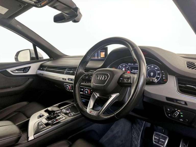 This 2018 Audi SQ7 TDI V8 presents an exceptional opportunity with its remarkably low mileage of just 54,340 miles. This powerful seven seater boasts a 4.0 litre diesel engine and a four wheel drive system, ensuring confident performance in all conditions. It meets Euro 6 emissions standards and offers a substantial towing weight of 3500 kg. Notable features include a Bluetooth interface for seamless connectivity, a rear view camera and Audi Parking System Plus with front and rear sensors to aid manoeuvrability. The All Weather LED headlights provide excellent visibility, while the heated front seats ensure comfort during colder journeys. The SQ7 TDI V8 truly excels with its impressive acceleration, achieving 0-62mph in a swift 4.9 seconds. This performance metric highlights its capability and dynamic driving experience, setting it apart from many other vehicles in its class. This combination of potent performance, practical seven seat capacity, and advanced technology makes this Audi SQ7 a compelling choice for those seeking a luxurious and capable SUV.For peace of mind this vehicle has completed a multi point AA inspection. Competitive finance is also available.We are open 7 days a week and have more than 1500 cars to choose from.All our Euro 4 Petrol and Euro 6 Diesel vehicles meet the ULEZ standard.Vehicle specification can be found below. From time to time vehicles have manufacturer recalls notified. Please read our recall policy on our website for further information. Audi Connect Infotainment Services - 36 Month Trial, Audi Connect Safety and Service, Audi Phone Box with Wireless Charging, Audi Smartphone Interface, Audi Sound System, Bluetooth Interface, MMI Navigation Plus including MMI Touch, MMI Radio Plus and DAB, Online Media Streaming - Audi MMI Connect App Required, Audi Drive Select, Audi Parking System Plus, Colour Drivers Information System with 7in High-Resolution TFT Screen, Cruise Control with Speed Limiter, Rear View Camera, Tyre Pressure Loss Indicator, Voice Control System, 20in Alloy Wheels - 5-Arm Off Road Design - Matt Titanium Look Gloss Turned, Active Sound Exhaust System, Aluminium Roof Rails, Aluminium Window Trims, Aluminium-Effect Door Mirror Housings, Anti Theft Locking Wheel Bolts, Brake Calipers - Black with S Logo, Door Mirrors - Heated-Electrically Adjustable-Folding, Dual-Branch Oval Twin Tailpipes in Chrome Finish, Electric Windows - Front and Rear, Front Bumper Air Inlet Struts in Aluminium Effect,