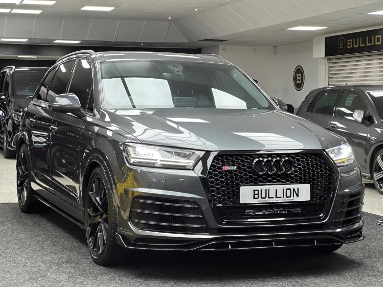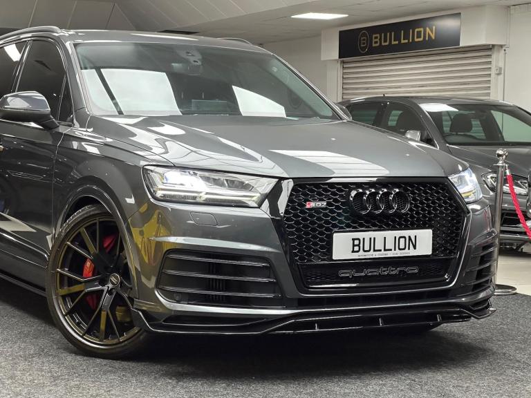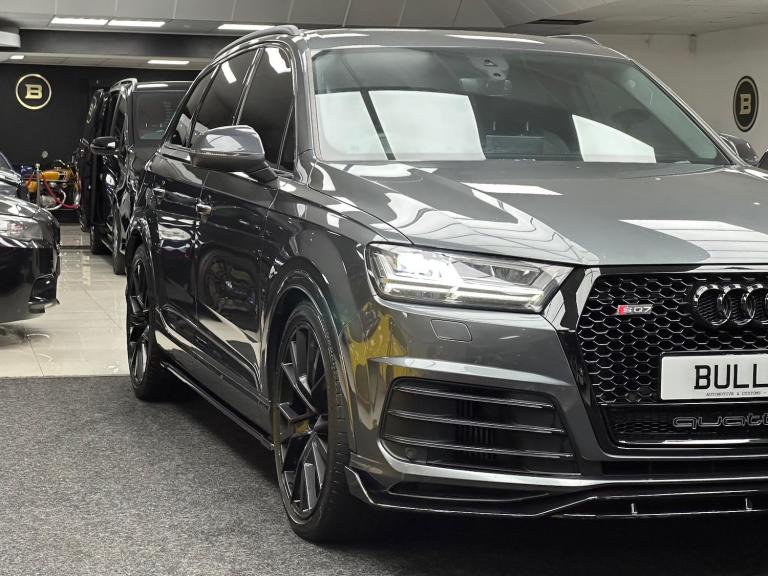 Just Arrived This Lovely Audi SQ7 Finished In Daytona Grey With Full Black Leather Interior, Vehicle Comes With Full Service History, 1 Key, Full Gloss Black Bodykit. For further details contact us now on 0191 2220814. Vehicle will have Age/mileage wear and tear. This 2018 Audi SQ7 TDI V8 offers a remarkable blend of performance and practicality, boasting a powerful 4.0 litre diesel engine and a sophisticated four wheel drive system. With seating for seven, this Euro 6 compliant vehicle is as versatile as it is capable, capable of towing up to 3500 kg. Inside, you'll find premium touches like upper inlays in brushed aluminium Sono and lower inlays in aluminium Beaufort Black, enhancing the cabin's refined feel.The SQ7 truly excels with its dynamic capabilities, accelerating from 0 to 62 miles per hour in a swift 4.9 seconds, a performance that sets it apart from many other vehicles in its class. This impressive acceleration is complemented by the Dynamic Pack, ensuring an engaging driving experience. Further enhancing safety and convenience are the Head Up Display, Audi Side Assist with Pre Sense Rear and Exit Warning, and advanced Matrix LED headlights with dynamic rear indicators, all designed to provide a superior and more secure journey.