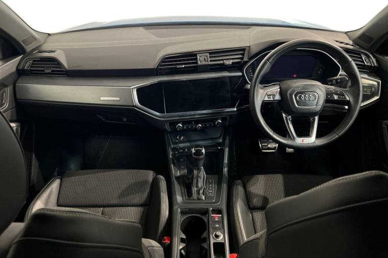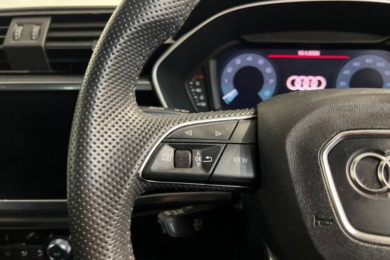 This 2019 Audi Q3 TFSI S line boasts exceptionally low mileage for its age, having covered just 41,786 miles, and benefits from an MOT valid until April 2026, with a clear vehicle history check. This Euro 6 compliant model features a powerful 2.0 litre petrol engine paired with Four Wheel Drive, offering a dynamic driving experience. The S line trim enhances its appeal with sophisticated styling and a range of advanced features, including LED headlights with dynamic rear indicators, automatic headlights, and a light and rain sensor for effortless driving. Experience impressive performance with a swift 0-60mph acceleration in just 6.3 seconds, demonstrating its capability compared to other vehicles in its class. Practicality is also a strong suit, with generous boot space perfect for all your needs. For added convenience and safety, this Q3 includes rear parking sensors with parking assistance, Audi Side Assist for blind spot monitoring, and dual zone electronic climate control to ensure comfort for all occupants. Lifetime warranty available on this car, plus a £1,000 finance contribution when you part exchange. Voted UK Car Supermarket of the Year two years running, we offer 0% finance, part exchange, and lifetime warranties across our entire range. Every car is thoroughly inspected before sale and comes with a full history check, so you can buy with complete peace of mind. Buy with confidence on our best finance rates. Proud winners of the CarGurus Top-Rated Dealer 2022 and the MotoNovo Extra Mile Award. .19in Alloy Wheels - 5-Twin-Spoke Dynamic, 3-Spoke Leather Multi-Function Steering Wheel - S Badging and Grips in Perforated Leather with Contrast Stitching, 6 Passive Loud Speakers, 6-Airbag System, Adjustable Rear Seat Bench-Backrest with Centre Armrest and Cupholder, Aluminium Roof Rails, Aluminium Window Trims, Ambient Lighting Pack, Anti Theft Locking Wheel Bolts, Anti-Theft Alarm, Audi Connect Infotainment Services Plus (3 Year Subscription From New), Audi Connect Safety and Service - e-call, Audi Drive Select, Audi Pre-Sense Front with Pedestrian and Cyclist Recognition, Audi Side Assist, Audi Smartphone Interface, Audi Virtual Cockpit - 10.25in Display, Auto Dimming and Frameless Rear View Mirror, B and C-Pillar Trim in High-Gloss Black, Bluetooth Interface, Body Coloured Door Mirrors, Bumpers in Full Body Colour Paint Finish, Cloth Headlining in Black, Cruise Control System with Speed Limiter, DAB Digital Radio, Detail in Dashboard Around the MMI Touch Colour Display, Diffuser - Platinum Grey - Matt, Door Mirrors - Electrically Adjustable and Heated with Integrated LED Side Indicators, Door Sill Trims with Aluminium Inlay, Dual-Zone Electronic Climate Control, ESC - Electronic Stabilisation Control inc ABS - ASR and EDL, First Aid Kit and Warning Triangle, Frame of Front Side Air Inlets in Platinum Grey - Matt, Front and Rear Floor Mats in Black with Contrast Stitching in Rock Grey, Front Centre Armrest, Front Spoiler Blade in Platinum Grey - Matt, Front Sport Seats with S Embossed Logo, Gear Knob - Perforated Leather, Grille Vertical Bars in Aluminium Silver - Matt, Hold Assist, Illuminated Door Sill Trims with S Logo, Inlays - Matt Brushed Aluminium - Dark, Interior Elements in Leatherette, ISOFIX Child Seat Mounting for the Front Passenger Seat with Front Passenger Airbag Deactivation and ISOFIX Child Seat Mounting and Top Tether for the Outer Rear Seats, Lane Departure Warning, LED Headlights with LED Daytime Running Lights and Dynamic Rear Indicator, LED Rear Lights, Light and Rain Sensor, Luggage Compartment Sill Protection in Stainless Steel, Manual Seat Adjustment for Front Seats, MMI Navigation Plus with High Resolution 10.1in Touchscreen Colour Display, Non-Smoking Package, Pedals in Stainless Steel, Power Operated Tailgate, Pre-Sense Basic, Privacy Glass, Progressive Steering, Pulse Cloth-Twin Leather - Sport Seats - Black-Silver with Rock Grey Stitching, Radiator Grille - Titanium Black, Rear Parking Sensors, S Line Badges on the Front