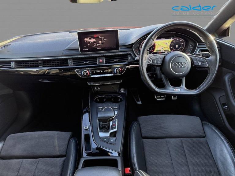 Stunning A5 Finished in Tango Red with only One Former Keeper and a Full Service History. Great looking car with upgraded 19" Multi Spoke Alloy Wheels, Privacy Glass, Technology Package, Full Digital Dash, Front and Rear Parking Sensors, Wireless Charging Dock, Satellite Navigation, DAB Tuner, Bluetooth with Full Audio Streaming, Heated Seats, Powered Tailgate, Auto Light, Keyless Start and so much more. This car has Two Keys and Full Service History. This Approved vehicle comes with our full care package including up to 2 years Executive Plus Warranty, 1 years MOT, Full pre-delivery inspection, Full service ( if required ) and Fully Valeted. All Calder Motor Company Premier Approved vehicles are prepared to the highest standard in every way, cosmetically and mechanically. National delivery available. Scotsure Executive plus extended warranty available for up to 2 years. Face time or whats app video walk round available on request. SUNDAYS BY APPOINTMENT ONLY. EVERY EFFORT HAS BEEN MADE TO ENSURE THE ACCURACY OF THE INFORMATION REGARDING THE VEHICLES SPEC HOWEVER ERRORS MAY OCCUR. CHECK WITH A SALESPERSON ABOUT ITEMS WHICH MAY AFFECT YOUR DECISION TO PURCHASE. Please feel free to Contact us via Phone, Email, Social Media. Nationwide Delivery, All Vehicles Are Fully Disinfected. Full Walkround Video, Face Time Etc. .19in Alloy Wheels - Multi-Spoke Design - Contrasting Grey - Partly Polished, 4-Way Electric Lumbar Support, 6-Airbag System, Anti-Theft Alarm, Audi Connect Infotainment Services - 3 Month Trial, Audi Connect Safety and Service, Audi Drive Select, Audi Smartphone Interface, Audi Sound System, Auto-Dimming Rear-View Mirror, Bluetooth Interface, CD Drive, Cloth Headlining in Black, Colour Drivers Information System with 7in High-Resolution TFT Screen, Cruise Control with Speed Limiter, DAB Digital Radio Reception, Deluxe 3-Zone Electronic Climate Control, Door Mirrors - Folding, Electromechanical Parking Brake, Electromechanical Power Steering, ESC - Electronic Stabilisation Control inc ABS - ASR and EDL, Flat-Bottomed 3-Spoke Leather High Multi-Function Steering Wheel, Front and Rear Floor Mats, Heated Front Seats, High Gloss Package, High-Beam Assist, Hill Hold Assist, Honeycomb Side Air Inlet Grille in Titan Black, Illuminated Door Sill Trims with S Logo, Inlays - Matt Brushed Aluminium, Interior Lighting, ISOFIX Child Seat Mounting and Top Tether, Keyless Go, LED Headlights with LED Rear Lights and Dynamic Rear Indicators, LED Interior Light Package, Light and Rain Sensor, MMI Navigation, Multi Collision Brake Assist, Parking System Plus, Pedals and Footrest - Stainless Steel, Pre-Sense City, Privacy Glass - Side and Rear Windows, Rear Diffuser in Twilight Grey Matt with Honeycomb Grille, Rear Grille - Black Grained, S Line Badges on Front Wings, S Line Front and Rear Bumpers, S line Side Skirts in Black, Space Saver Spare Wheel, Split-Folding 3-Seater Rear Seat Bench in 3 Parts - 40-20-40, Sport Suspension, Tango Red, Technology Package, Tool Kit and Car Jack, Tyre Pressure Warning Light, Variable Restraint System, Voice Control System, Windscreen with Acoustic Glazing