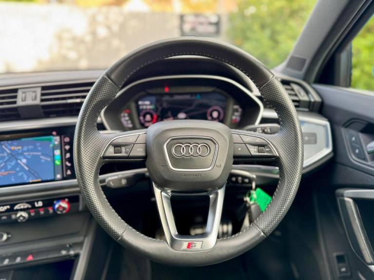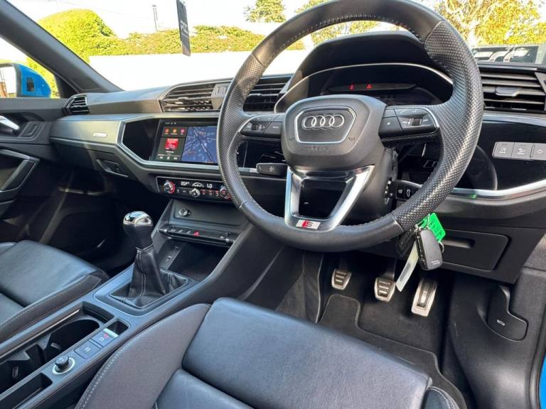 Peverel Car Company are pleased to present this stunning and well cared for 2019 (69) Audi Q3 1.5 TFSi 35 Sportback S Line Manual, finished in the stunning Turbo Blue with Full Leather S Line Sports Upholstery. This example presented in superb condition boasting additional Optional Sport Bumper option. The Audi Q3 Sportback blends stunning Coupe Sports Design appeal with premium German engineering, functionality and practicality. The Audi Q3 has been a class-leader in the Small Sports SUV premium sector, offering a sports driving position, refined handling, and impressive build quality. Powered by Audis robust 1.5 TFSi Powerful and Fuel Efficient and Petrol Engine, the Q3 delivers Excellent Performance with and outstanding fuel economy. The S Line styling gives this model a more aggressive and dynamic appearance, with sharper lines and lowered suspension that still maintains everyday comfort. This stunning looking Audi Q3 has an equally impressive level of specification including: Satellite Navigation, Apple Car Play and Android Auto, Full Leather S Line Sports Upholstery, Audi Virtual Cockpit, Height Adjustable Drivers Seat, 4 Way Lumbar Adjustment, Rear Parking Sensors, Dual-Zone Automatic Climate Control Air Conditioning, Bluetooth Telephone Connectivity, DAB Digital Radio, Automatic Headlights and Automatic Windscreen Wipers, LED Daytime Running Lights, Audi Sound Pack, Comfort and Sound Package, Cruise Control with Speed Limiter, Split Folding Rear Seats, ISOFIX Child Seat Anchorage Points to the Rear Seats, Privacy Glass Tinted Windows, Auto Dimming Rear View Mirror, S line Body Styling, Power Operated Electric Tailgate,19-inch S Line Alloy Wheels, Multifunction Leather Steering Wheel and much more. This Audi is supplied Fully HPI Clear with a Full Service History, 2 Remote Keys, a fresh 12 Months MOT, 3 Months RAC Warranty and 12 Months RAC Breakdown Cover. Part Exchanges are Welcome and Additional Extended Warranty Options are also available. Multiple Award Winning and Heavily Customer Focused Company, Rated a 5 star Dealer by our Customers. Buy with confidence..Twin Leather - Sport Seats - Black with Rock Grey Stitching, Interior Elements in Steel Grey Alcantara, Interior Elements in Lunar Silver Alcantara, Comfort and Sound Package, Alcantara Frequency-Twin Leather - Sport Seats with S Embossing - Black with Rock Grey Stitching, Sport Bumper in Full Body Colour Paint Finish, Extended Ambient Lighting Pack - Multi-Coloured, Turbo Blue, 1 x USB-C and 1 x USB-A Port with Charge and Data Functions, 19in Alloy Wheels - 5-Twin-Spoke Dynamic, 3-Spoke Leather Multi-Function Steering Wheel - S Badging and Grips in Perforated Leather with Contrast Stitching, 6 Passive Loud Speakers, 6-Airbag System, Adjustable Rear Seat Bench-Backrest with Centre Armrest and Cupholder, Aluminium Look Interior Elements, Aluminium Window Trims, Ambient Lighting Pack, Anti Theft Locking Wheel Bolts, Anti-Theft Alarm, Audi Connect Infotainment Services Plus including Amazon Alexa Integration (3 Year Subscription From New), Audi Connect Safety and Service - e-call, Audi Drive Select, Audi Pre-Sense Front with Pedestrian and Cyclist Recognition, Audi Side Assist, Audi Smartphone Interface Includes Wireless Apple CarPlay, Audi Virtual Cockpit - 10.25in Display, Auto Dimming and Frameless Rear View Mirror, B and C-Pillar Trim in High-Gloss Black, Bluetooth Interface, Body Coloured Door Mirrors, Camera-Based Traffic Sign Recognition, Cloth Headlining in Black, Cruise Control with Speed Limiter, DAB Digital Radio, Detail in Dashboard Around the MMI Touch Colour Display in Glass Look - Black with Surround in Aluminium Look, Diffuser Grille in Grained Matt Black, Diffuser Trim in Selenite Silver, Door Mirrors - Electrically Folding - Adjustable and Heated with Integrated LED Side Indicators and Kerb-view Function for Passenger Side, Dual-Zone Electronic Climate Control, ESC - Electronic Stabilisation Control inc ABS - ASR and EDL, Electric Windows - Front, Electromechanical Parking Brake, Electronically Operated Child Locks, First Aid Kit and Warning Triangle, Frame of Front Side Air Inlets in Selenite Silver, Front Centre Armrest, Front Underbody Protection in Manhattan Grey Paint Finish, Front and Rear Floor Mats in Black with Contrast Stitching in Rock Grey, Gear Knob in Perforated Leather, Grille Surround in Aluminium Silver - Matt, Hill Descent Control, Hill Hold Assist, ISOFIX Child Seat Mounting for the Front Passenger Seat with Front Passenger Airbag Deactivation and ISOFIX Child Seat Mounting and Top Tether for the Outer Rear Seats, Illumina