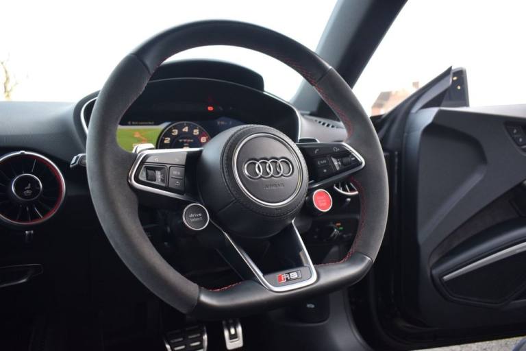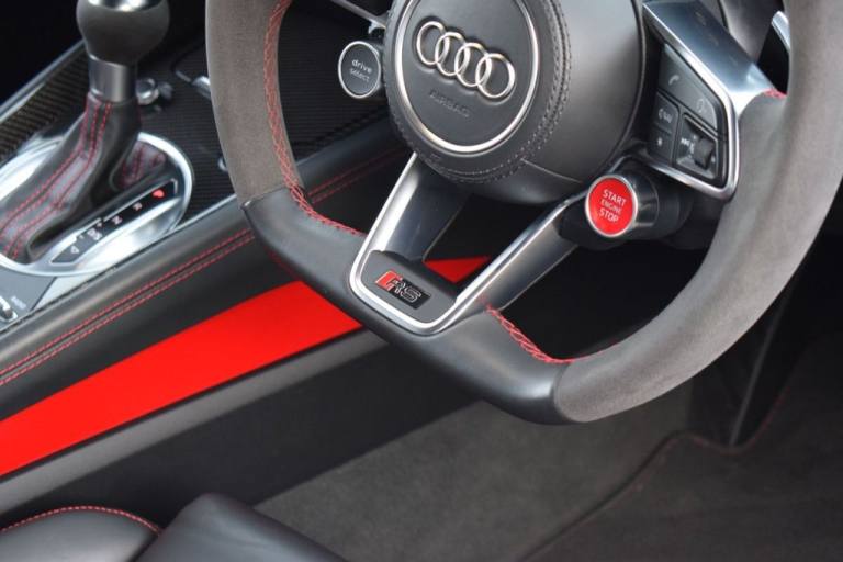 Rom Motors are delighted to offer this beautiful Mythos Black Metallic Audi TTRS for sale. Our example is extremely well specified and finished in the stunning Mythos Black! This car has the must have optional comfort and sound pack including Bang and Olufsen and convenience key. On top of all that theres more, some subtle styling changes like its Red RS Brakes and the RS styling pack in red which adds lots of lovely red details on the inside. And thats with out mentioning its famous 2.5L turbo charged 5 cylinder under the bonnet. Couple that with their Quattro drive system and you have an amazing all rounder. Finished with an excellently documented Audi service history, freshly prepared for sale by our in house specialist technician. 10.9% APR Finance Available along side a wide range of lenders. *Appointment Only* Please call ahead to arrange a viewing or test drive with a member of our friendly sales team. All our vehicles are HPI Clear & prepared to a high standard following a full pre-delivery inspection from our in house team of technicans. 3 Months Warranty is included on all vehicle with extensions available up to 36 months, ask our sales team for more details. Videos available on request. PAYMENT: We accept debit cards for payments up to £500. For larger payments we accept BACS (bank transfer) only. Please check transfer processing times and limits with your bank if you plan to pay on collection as we are unable to release cars without cleared funds. Please also bring anything you may need to access your online banking on the day including securekeys, card readers etc. Please note a £249 admin fee is applicable for purchases funded by third party finance lenders. Call 01455 633577 or WhatsApp 07870 606040.Fine Nappa Leather - Super Sport Seats - Black with Express Red Stitching, RS Styling Package - Red, Comfort and Sound Package, Brake Calipers - Red, Mythos Black, 20in Alloy Wheels - 7-Spoke Rotor Design - Gloss Anthracite Black - Diamond Cut Finish, 4-Way Electric Lumbar Support for Front Seats, All Weather LED Headlights, Anti Theft Locking Wheel Bolts, Anti-Theft Alarm, Audi Active Lane Assist, Audi Connect Infotainment Services (36 Month Subscription From New), Audi Drive Select, Audi Phone Box with Wireless Charging, Audi Smartphone Interface, Audi Sound System, Audi Virtual Cockpit with RS Specific Display, Black Door Mirrors, Black Styling Package, Bluetooth Interface, Brake Calipers - Painted Black with TT RS Logo, Coloured Interior Elements in Slate Grey, Cruise Control with Speed Limiter, DAB Digital Radio, Deluxe Automatic Air Conditioning, Door Sill Trims with Aluminium Inlays and TTRS Logo, ESC - Electronic Stabilisation Control with Sport Mode inc ABS - EBD - ASR - EDL, Electric Windows - Front, Electromechanical Parking Brake, Extended Leather Package, Exterior Mirrors - Electrically Adjustable - Heated and Folding - Automatically Dimming on Both Sides - Including Automatic Kerb-Side Function for the Passenger-Side, First Aid Kit and Warning Triangle, Front Airbags with Front Passenger Deactivation, Head Level Airbags, Headlights - High-Beam Assist, Heated Front Seats, Hill Hold Assist, ISOFIX Child Seat Mounting for Front Passenger with Airbag Deactivation, ISOFIX Child Seat Mounting for Rear Seats, Inlays - Carbon, Keyless Go, LED Interior Light Package, Light and Rain Sensor, MMI Navigation Plus including MMI Touch, Online Media Streaming, Pedals and Footrest - Stainless Steel, Privacy Glass, Progressive Steering, RS Body Styling, RS Brake System, RS Gear Lever Knob - Alcantara, RS Sports Exhaust System, RS Sports Suspension, TT RS Fixed Rear Wing, TTRS Badge on the Steering Wheel, TTRS Exhaust Sound Button in Centre Console, TTRS Sport Leather and Alcantara Multi-Function Steering Wheel, Tool Kit, Tyre Pressure Warning Light, Tyre Repair Kit