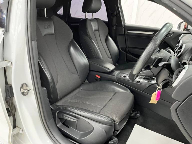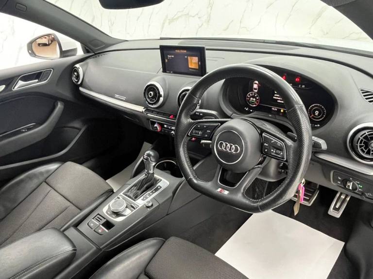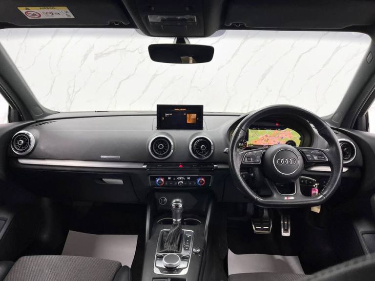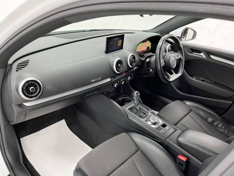 This 2019 Audi A3 TFSI S line boasts a clear vehicle history, offering you peace of mind. This stylish hatchback features a 1.5 litre petrol engine and is Euro 6 compliant. The S line trim enhances its appeal, and youll appreciate the convenience of rear parking sensors, dual zone electronic climate control, and a Bluetooth interface for seamless connectivity. Driving is further enhanced by LED headlights with dynamic rear indicators and an auto dimming rear view mirror that automatically activates headlights with the light and rain sensor. With an impressive fuel economy of 44 miles per gallon, this Audi A3 is designed to be efficient, and its low CO2 emissions also highlight its environmental consideration compared to many other vehicles. These features collectively demonstrate how this particular A3 offers a superior driving experience and ownership proposition. Part Exchange Welcome. All Majors Cards Accepted. We Have Finance Available. A Wide Range of Warranties. We Also Offer Low Cost, Nationwide Delivery Available From £1.50 a Mile. **Every endeavour is made to ensure specifications and descriptions are correct. Due to model changes specification may vary. Phone for details. MPG figures shown are government official figures.**.Pre-Sense Basic, Technology Package, Sequence Cloth-Leather - S Embossed Sports Seats - Black with Rock Grey Stitching, Ibis White, 18in Alloy Wheels - 5-Parallel Spoke Design with Diamond Cut Finish, 2 x USB Charging Ports and 1 x AUX-IN, 6-Airbag System with Knee Airbag for Driver, Aluminium Interior Elements, Aluminium Window Trims, Anti Theft Locking Wheel Bolts, Anti-Theft Alarm, Audi Connect, Audi Connect Infotainment Services - 3 Month Trial, Audi Drive Select, Audi Smartphone Interface, Audi Sound System, Auto-Dimming Rear-View Mirror with Light and Rain Sensor, Bluetooth Interface, Body Coloured Door Mirrors, CD Drive, Chrome-Plated Exhaust Tailpipe Trim, Cloth Headlining in Black, Colour Drivers Information System - DIS, Cruise Control, DAB Digital Radio, Door Mirrors - Electrically Adjustable and Heated with Integrated LED Side Indicators, Dual-Zone Electronic Climate Control, ESC - Electronic Stabilisation Control inc ABS - ASR and EDL, Electric Windows - Front, Electromechanical Parking Brake, Electromechanical Power Steering, First Aid Kit and Warning Triangle, Front Centre Armrest, Front and Rear Floor Mats, Heated Windscreen Washer Jets, Hill Hold Assist, ISOFIX Child Seat Mounting and Top Tether, Illuminated Door Sill Trims with S Logo, Inlays - Matt Brushed Aluminium, LED Headlights with LED Rear Lights and Dynamic Rear Indicators, LED Interior Light Package, Lashing Points in Luggage Compartment, MMI Navigation - SD Card Based, MMI Radio Plus with 7in Electrically Retractable Colour MMI Screen, Model and Engine Technology Badges at Rear, Non-Smoking Package, Pedals - Brushed Stainless Steel, Rear Parking Sensors, S Line Badges on Front Wings, S Line Design Body Styling, Seat Belt Monitoring, Split Folding Rear Seat Bench - 60-40 or Fully, Sport Side Air Inlet Grille and Diffuser Insert, Sport Suspension, Steering Wheel - 3-Spoke Leather-Multifunction-Flat Bottomed-Shift Paddles, Storage Compartments in the Door Side Trims-Centre Console-Under Drivers Seat, Storage Package, Privacy Glass, Tool Kit, Tyre Pressure Warning Light, Tyre Repair Kit