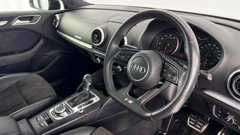Make a statement every time you drive with this Audi A3 Saloon Black Edition 40 TFSI quattro 190 PS S tronic (ULEZ), registration HJI8775, with 24,750 miles. Originally sold here at Mon Motors and cared for by just two previous owners, this A3 combines sleek Black Edition styling with the sure-footed confidence of quattro all-wheel drive and the effortless performance of the S tronic automatic gearbox.It comes with a full Audi Approved service history, giving you added reassurance from day one. Most recently it benefitted from an oil change service at 20,601 miles, a brake fluid change at 23,796 miles, and a Haldex oil change at 24,261 miles, helping to ensure the drivetrain continues to perform exactly as intended.Inside, Audi s Virtual Cockpit brings key driving information into crisp digital focus, while Apple CarPlay and Android Auto make it easy to stay connected on the move. Bluetooth, cruise control and rear parking sensors add everyday convenience, and the 18 alloy wheels complete the purposeful Black Edition look.Purchase from Mon Motors Cardiff Audi and you will enjoy all the benefits of the Audi Approved Used scheme, including a minimum 12-month Warranty and 12 months Roadside Assistance. If the vehicle is under three years old it will be covered by Audi s original 36-month manufacturer warranty (remaining term is 36 months minus the vehicle s age); vehicles over three years come with a minimum 12-month warranty. This Audi has also passed over 150 meticulous checks carried out by our trained Audi technicians and is available for immediate delivery.As an official Audi franchise retailer, Mon Motors Cardiff Audi offers a transparent, professional buying experience, expert product knowledge, tailored finance and protection options, and the peace of mind that your Audi has been prepared to exacting Audi Approved standards. Alcantara Frequenz/leather combination, S line exterior package, LED headlamps, Lighting package, Sports seats in front, Pedals and foot rest in stainless steel, Scuff plates with aluminum inserts, Privacy glass (dark-tinted windows), Audi Sport cast alloy wheels - 5-arm trapezoidal style - Black - diam.-turned - 7.5J x 18 with 225/40 R18 tires, S line for Great Britain, Special control I/VP, Bumpers, Sports contour leather-wrapped steering wheel with multifunction Plus - 3-spoke - shift paddles - flat-bottomed, Sports suspension, Acoustic windshield, Titanium Black appearance package Audi exclusive, Decorative