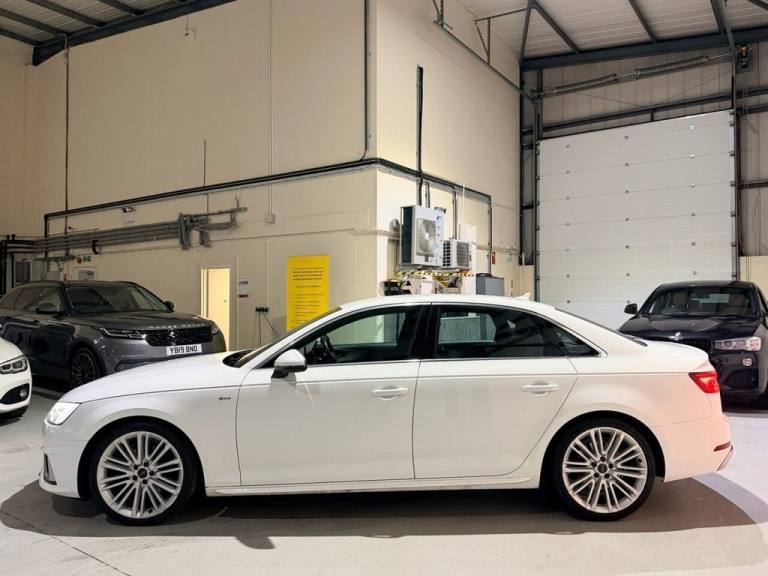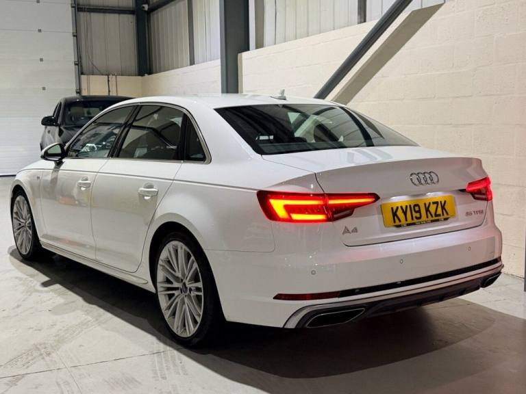 Audi A4 2.0 TFSI 35 S line Saloon 4dr Petrol S Tronic Euro 6 (s/s) (150 ps) Registration: KY19KZK 96,000 miles Service History Ibis White A smart and sporty Audi A4 S line saloon offering refined petrol performance, sharp styling and everyday comfort. Powered by the 2.0 TFSI engine producing 150 ps and paired with the smooth S Tronic automatic transmission, this A4 delivers a confident and efficient drive with the premium feel expected from Audi. Fully Euro 6 compliant and ULEZ friendly. Key Features 2.0 TFSI petrol engine producing 150 ps S Tronic automatic transmission S line styling and interior enhancements Euro 6 - ULEZ compliant Touchscreen infotainment system with navigation Bluetooth and media connectivity Dual zone climate control Sport seats with S line detailing LED headlights and daytime running lights Refined and spacious saloon layout Warranty Warranty packages available for additional cost. HPI & Finance HPI clear. Finance available with flexible packages. Part exchange welcome. Dealer Statement Nationwide delivery available. Get in touch for a walk-around video, test drive or more information. *Preparation fee £199 added to the list price of the vehicle..Ibis White, 19in Alloy Wheels - 10-V Spoke Design, 2 x USB Charging Ports and 1 x AUX-IN, 4-Way Electric Lumbar Support, 6-Airbag System, ABS - Anti-Lock Braking System, Anti Theft Locking Wheel Bolts, Anti-Theft Alarm, Audi Connect Safety and Service - e-call, Audi Drive Select, Audi Sound System, Auto-Dimming Rear-View Mirror, Bluetooth Interface, Body Coloured Door Mirrors, Chrome-Plated Trims for Exhaust System, Cloth Headlining in Black, Contrast Stitching on Steering Wheel and Gear Lever Gaiter, Cruise Control System with Freewheeling Capability and Speed Limiter, DAB Digital Radio, Deluxe 3-Zone Electronic Climate Control, Door Mirrors - Electrically Adjustable and Heated with Built-in LED Indicators, Door Mirrors - Electrically Folding, Driver Information System - 7in Colour Display, ESC - Electronic Stabilisation Control inc ABS - ASR and EDL, Electric Boot Lid Release, Electric Windows - Front and Rear, Electromechanical Parking Brake, Electromechanical Power Steering, First Aid Kit and Warning Triangle, Front Centre Armrest, Front and Rear Floor Mats, Gear Lever Knob in Black Perforated Leather, Heated Front Seats, High Gloss Package, High Multifunction S Line 3-Spoke Leather Trimmed Sport Steering Wheel with Grips in Perforated Leather, High-Beam Assist, ISOFIX Child Seat Mounting and Top Tether, Illuminated Door Sill Trims with S Logo, Inlays - Matt Brushed Aluminium, Interior Lighting, Keyless Go, LED Headlights with LED Rear Lights and Dynamic Rear Indicators, Light and Rain Sensor, Luggage Compartment Mat, MMI Navigation - SD Card Based, MMI Radio Plus with Smartphone Interface, Manual Height Adjustment for Front Seats, Multi Collision Brake Assist, Non-Smoking Package, Parking System Plus, Pedals and Footrest - Stainless Steel, Pop-Up Bonnet for Pedestrian Protection, Pre-Sense City, Radiator Grille - Twilight Grey Matt with Inlays in Chrome, Rear Diffuser in Twilight Grey Matt, Rear Grille - Black Grained, S Line Badges on Front Wings, S line Front and Rear Bumpers and Side Skirts, Seat Belt Monitoring, Side Air Inlet Grille in Titan Black Matt with Two Side Inlays in Chrome, Split-Folding Rear Seat Bench in 3 Parts - 40-20-40 with Rear Centre Armrest, Sport Suspension, Sun Visors - with Vanity Mirror, Tailpipes in Chrome, Tool Kit and Car Jack, Towbar Preparation, Tyre Pressure Warning Light, Tyre Repair Kit, Variable Restraint System, Windscreen with Acoustic Glazing