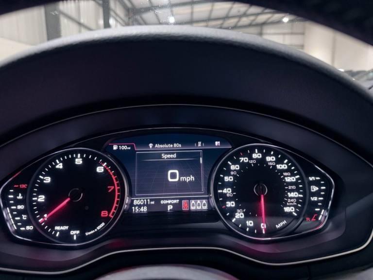 .19in Alloy Wheels - 10-V Spoke Design, 2 x USB Charging Ports and 1 x AUX-IN, 4-Way Electric Lumbar Support, 6-Airbag System, ABS - Anti-Lock Braking System, Anti Theft Locking Wheel Bolts, Anti-Theft Alarm, Audi Connect Safety and Service - e-call, Audi Drive Select, Audi Sound System, Auto-Dimming Rear-View Mirror, Bluetooth Interface, Body Coloured Door Mirrors, Chrome-Plated Trims for Exhaust System, Cloth Headlining in Black, Contrast Stitching on Steering Wheel and Gear Lever Gaiter, Cruise Control System with Freewheeling Capability and Speed Limiter, DAB Digital Radio, Deluxe 3-Zone Electronic Climate Control, Door Mirrors - Electrically Adjustable and Heated with Built-in LED Indicators, Door Mirrors - Electrically Folding, Driver Information System - 7in Colour Display, ESC - Electronic Stabilisation Control inc ABS - ASR and EDL, Electric Boot Lid Release, Electric Windows - Front and Rear, Electromechanical Parking Brake, Electromechanical Power Steering, First Aid Kit and Warning Triangle, Front Centre Armrest, Front and Rear Floor Mats, Gear Lever Knob in Black Perforated Leather, Heated Front Seats, High Gloss Package, High Multifunction S Line 3-Spoke Leather Trimmed Sport Steering Wheel with Grips in Perforated Leather, High-Beam Assist, ISOFIX Child Seat Mounting and Top Tether, Illuminated Door Sill Trims with S Logo, Inlays - Matt Brushed Aluminium, Interior Lighting, Keyless Go, LED Headlights with LED Rear Lights and Dynamic Rear Indicators, Light and Rain Sensor, Luggage Compartment Mat, MMI Navigation - SD Card Based, MMI Radio Plus with Smartphone Interface, Manual Height Adjustment for Front Seats, Multi Collision Brake Assist, Non-Smoking Package, Parking System Plus, Pedals and Footrest - Stainless Steel, Pop-Up Bonnet for Pedestrian Protection, Pre-Sense City, Radiator Grille - Twilight Grey Matt with Inlays in Chrome, Rear Diffuser in Twilight Grey Matt, Rear Grille - Black Grained, S Line Badges on Front Wings, S line Front and Rear Bumpers and Side Skirts, Seat Belt Monitoring, Side Air Inlet Grille in Titan Black Matt with Two Side Inlays in Chrome, Split-Folding Rear Seat Bench in 3 Parts - 40-20-40 with Rear Centre Armrest, Sport Suspension, Sun Visors - with Vanity Mirror, Tailpipes in Chrome, Tool Kit and Car Jack, Towbar Preparation, Tyre Pressure Warning Light, Tyre Repair Kit, Variable Restraint System, Windscreen with Acoustic Glazing