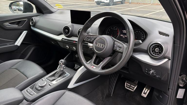 Features Include Apple CarPlay And Android Auto, Digital Driver Display, LED Headlights, Climate Control And Hill Start Assist. Discover sporty sophistication and premium build quality with this 2022 Audi Q2 35 TFSI S Line, finished in striking Mythos Black. Compact yet confident, this stylish SUV delivers Audi's renowned refinement alongside dynamic performance and everyday practicality. Powered by a 1.5 TFSI petrol engine, the Q2 offers smooth, responsive performance with excellent efficiency. Paired with the S Tronic automatic gearbox, it provides seamless gear changes and a refined driving experience whether navigating city streets or cruising on the motorway. Inside, the S Line interior elevates the cabin with sporty styling and premium materials. Expect a digital driver display, touchscreen infotainment system, smartphone connectivity, and supportive sports seats that combine comfort with Audi's signature quality. The practical 5-door layout and versatile boot make it ideal for daily use or weekend trips. The Mythos Black exterior enhances the Q2's sharp design, complemented by S Line body styling, alloy wheels, and LED lighting, giving it a bold and athletic road presence.