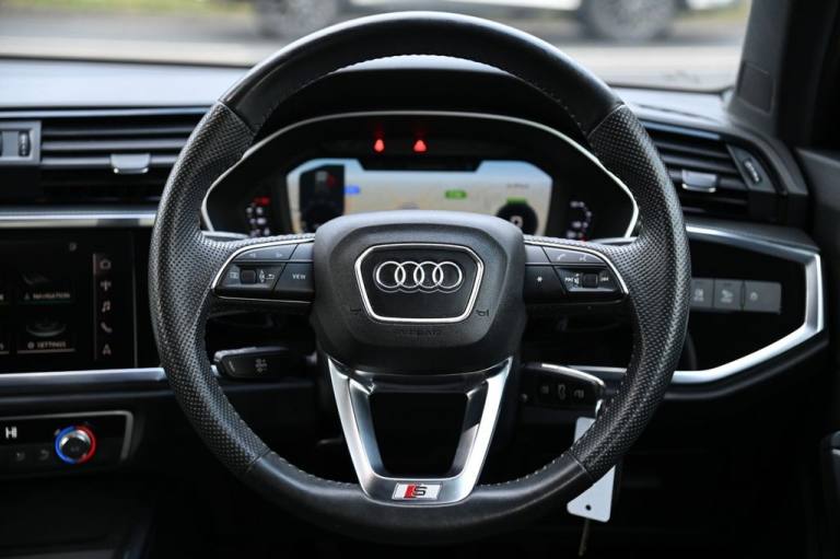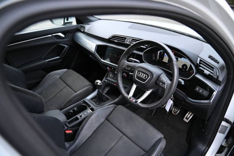 Prestige Car Supermarket in York presents this 2019 Audi Q3 1.5 TFSI CoD 35 S line, a well balanced and engaging petrol SUV producing 150 ps and paired with a smooth manual gearbox. Finished in Glacier White, this S line model benefits from distinctive front and rear S line bumpers, S line side skirts, aluminium roof rails, aluminium window trims, privacy glass and striking 19in 5-twin-spoke dynamic alloy wheels. The exterior is further enhanced by LED headlights with LED daytime running lights, dynamic rear indicators and titanium black detailing to the grille and rear diffuser. Inside, the cabin features Pulse cloth and twin leather sport seats in black and red with rock grey stitching, complemented by dark brushed aluminium inlays, ambient lighting pack, black cloth headlining and illuminated S line door sill trims. Driver-focused technology includes the Audi Virtual Cockpit with 10.25in display, MMI Navigation Plus with high resolution 10.1in touchscreen, Audi Smartphone Interface with wireless Apple CarPlay, voice control with natural language interaction, Bluetooth connectivity and DAB digital radio. Comfort and practicality are supported by dual-zone electronic climate control, adjustable rear seat bench, power operated tailgate and acoustic glazing. Advanced safety and assistance systems include Audi pre-sense front with pedestrian and cyclist recognition, lane departure warning, Audi side assist, traffic sign recognition, cruise control with speed limiter, rear parking sensors and progressive steering, making this Q3 a highly specified and desirable S line SUV..Pulse Cloth-Twin Leather - Sport Seats - Black-Red with Rock Grey Stitching, Glacier White, 1 x USB-C and 1 x USB-A Port with Charge and Data Functions, 19in Alloy Wheels - 5-Twin-Spoke Dynamic, 3-Spoke Leather Multi-Function Steering Wheel - S Badging and Grips in Perforated Leather with Contrast Stitching, 6 Passive Loud Speakers, 6-Airbag System, Adjustable Rear Seat Bench-Backrest with Centre Armrest and Cupholder, Aluminium Look Interior Elements, Aluminium Roof Rails, Aluminium Window Trims, Ambient Lighting Pack, Anti Theft Locking Wheel Bolts, Anti-Theft Alarm, Audi Connect Safety and Service - e-call, Audi Drive Select, Audi Pre-Sense Front with Pedestrian and Cyclist Recognition, Audi Side Assist, Audi Smartphone Interface Includes Wireless Apple CarPlay, Audi Virtual Cockpit - 10.25in Display, Auto Dimming and Frameless Rear View Mirror, B and C-Pillar Trim in High-Gloss Black, Bluetooth Interface, Body Coloured Door Mirrors, Bumpers in Full Body Colour Paint Finish, Camera-Based Traffic Sign Recognition, Cloth Headlining in Black, Cruise Control with Speed Limiter, DAB Digital Radio, Detail in Dashboard Around the MMI Touch Colour Display in Glass Look - Black with Surround in Aluminium Look, Door Mirrors - Electrically Folding - Adjustable and Heated with Integrated LED Side Indicators and Kerb-view Function for Passenger Side, Dual-Zone Electronic Climate Control, ESC - Electronic Stabilisation Control inc ABS - ASR and EDL, Electric Windows - Front, Electromechanical Parking Brake, Electronically Operated Child Locks, Frame of Front Side Air Inlets in Platinum Grey - Matt, Front Centre Armrest, Front Spoiler Blade in Platinum Grey - Matt, Front Spoiler in Selenite Silver - Matt, Gear Knob in Perforated Leather, Grille Surround in Silver - Chrome, Grille Vertical Bars in Aluminium Silver - Matt, Hill Descent Control, Hill Hold Assist, ISOFIX Child Seat Mounting for the Front Passenger Seat with Front Passenger Airbag Deactivation and ISOFIX Child Seat Mounting and Top Tether for the Outer Rear Seats, Illuminated Door Sill Trims with S Logo, Inlays - Matt Brushed Aluminium - Dark, Interior Lighting, LED Headlights with LED Daytime Running Lights and Dynamic Rear Indicator, LED Rear Lights, Lane Departure Warning, Leatherette Armrests, Light and Rain Sensor, Luggage Compartment Sill Protection in Stainless Steel, MMI Navigation Plus with High Resolution 10.1in Touchscreen Colour Display, Manual Seat Adjustment for Front Seats, Non-Smoking Packa