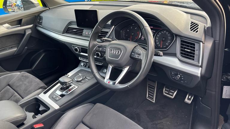 Now here’s an absolute gem that has just arrived with us at Peugeot Derby, and she is already rightly garnering some serious attention. This Audi Q5 is nothing short of sensational value for money, and she certainly isn’t going to be hanging around. It goes without saying that she looks just a fraction of her age. If you were to line up ten cars of this age and mileage, she would hands down be the best in the lineup. It’s testament to how well she has been looked after by her previous owner, and the prime example of how well a car will keep with the right kind of care. The average mileage for a UK motorist is 12,000 miles a year, which this beauty falls significantly below. Since she was first registered in 2019, she has covered just a meagre 43759 miles on our beloved roads. If we we’re going by those average figures, she would be closer to 72000 miles! Impressive right? As part of our rigorous preparation process, we ensure no car leaves us to go to its new home with less than six months service or MOT remaining. So we will complete both before you drive away, leaving you with a full year on each! Bonus! Being the S-Line model, she doesn’t just look the part, she also comes with an abundance of features including Front and Rear Parking Sensors, Satellite Navigation, Bluetooth Connectivity, Heated Seats, Rain Sensing Wipers, Auto Lights, 6 Different Drive Modes and Keyless Ignition just to name a few. With all this in mind we can only describe her as sensational value for money and she certainly won’t be hanging around, so please don’t hesitate to contact the team at Peugeot Derby to arrange your unforgettable test drive today. We are located off Sir Frank Whittle Road in Derby, the best postcode to use is DE21 4RX. We look forward to seeing you soon!.Air Conditioning, Climate Control, Metallic Paint, Cruise Control, Satellite Navigation, Alloy Wheels, Heated Seats, Bluetooth, Parking Sensors, Low Mileage, USB& Rain Sensors, Luggage compartment carpet, Heat insulating glass in side and rear windows, Electronic stabilisation control including ABS, ASR and EDL, Voice control system, Electro - mechanical power assisted steering, Automatic start/stop system, MMI Navigation, Body colour door mirrors, Diesel particulate filter, CD player, Body colour S Line side skirts, Automatic headlight levelling, Deluxe 3 zone electronic climate control, Trunk roller cover, High gloss pack - Q5, Pre sense city, Front sport seats with S embossed logo, Anti theft alarm, Quattro on demand, Sunvisors with vanity mirrors