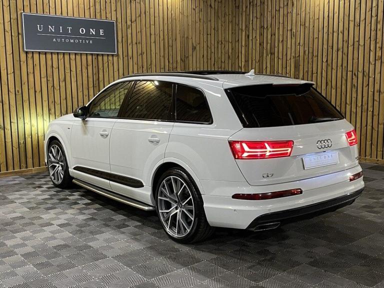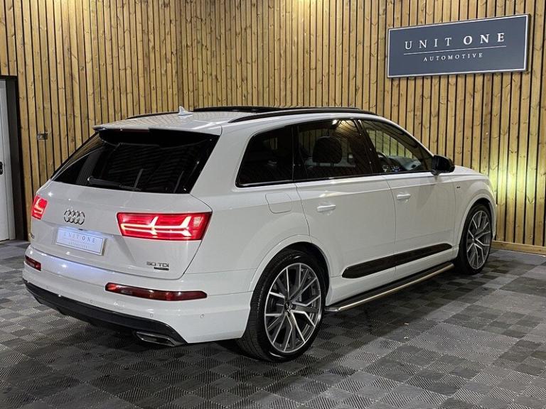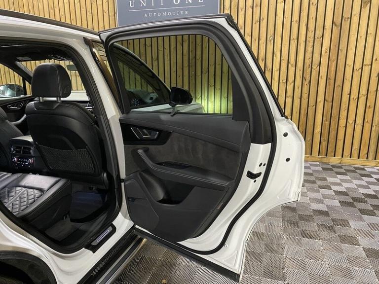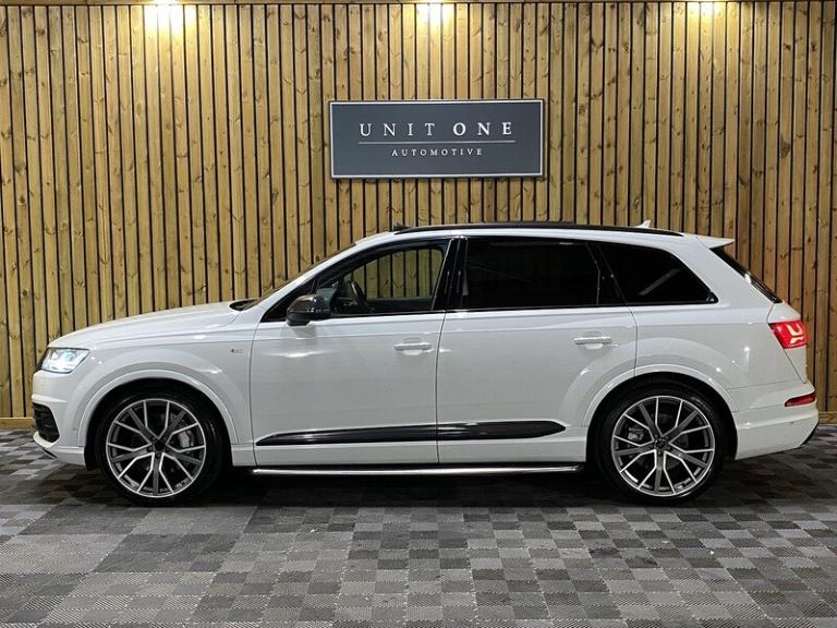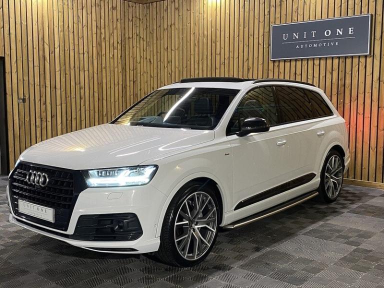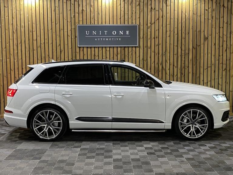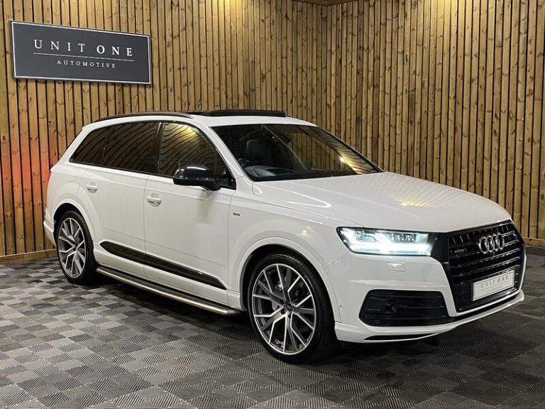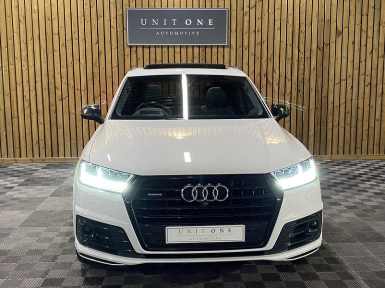 3-spoke flat-bottomed leather multi-function Sports steering wheel,Ambient Lighting Pack,Audi Matrix LED headlights,Deluxe four-zone automatic climate control,Electrically adjustable steering column,Exterior mirrors - heated electrically adjustable folding and auto-dimming,Full leather package,Glacier white metallic,Head Up Display,Heated outer rear seats for the second row,Metallic paint,Panoramic glass sunroof,Power Door Closure,Running Boards,Titanium Black Styling Pack with Black roof rails,12.3 inch multi-function display screen(s) Instrument panel 1 and 31.2 8.3 inch multi-function display screen(s) Dashboard 1 touch pad and 21.1 Dashboard centre 1,12.3 inch multi-function display screen(s) Instrument panel 1 and 31.2 8.3 inch multi-function display screen(s) Dashboard 1 touch pad and 21.1 instrument cluster 1,12v power outlet located in front section and rear section front,12v power outlet located in front section and rear section rear,1 disc DVD autochanger in glove box glove box,2967 cc 3.0 litres V 6 engine with 83.0 mm bore 91.4 mm stroke 16.0 compression ratio and four valves per cylinder 16.0,40/20/40 split folding rear seats: bench type with space for three people; with zero electric adjustments and tip/tumble movement front,64.00 gigabyte internal Memory /HD,75 litre 16.5 UK gallon main fuel tank main,8.3 inch entertainment display with DVD player located at the front 21.1 front,ABS,Alloy & leather multi-function steering wheel electrically adjustable with tilt adjustment and telescopic adjustment,Alloy trim on dashboard alloy trim on doors alloy trim on centre console and alloy & leather gearknob,All three rows side curtain airbags all three rows,Anticorrosion warranty: 144 months Unlimited miles Unlimited km,Anti-theft protection with interior monitoring,Apps control,Audio system with digital media card reader and one disc autochanger that reads MP3 CDs ; radio receives AM/FM digital and RDS colour screen,Automatic air conditioning with two climate control zones,Automatic smart card/key includes keyless start and vehicle dynamics,Bluetooth includes phone connection and music streaming,Body colour power door mirrors ; heated with integrated indicator lights body colour power door mirrors ; heated with integrated indicator lights and automatic tilt feature when reversing driver,Body colour power door mirrors ; heated with integrated indicator lights body colour power door mirrors ; heated with integrated indicator lights and automatic tilt feature when reversing passenger,Brake assist system,Built-in Apps,Cargo safety net,Central door locking: Operated by remote Includes windows,Centre armrest between front seats,Centre armrest between rear seats,Centre mechanical limited slip differential centre,Charges: VAT [20%] = 9686.67 VED (Standard Rate) = 450.00 FRF = 55.00 VED (First Year 171 - 190 g/km) = 1280.00 Additional Charges (GB) = 0.00,Chrome/bright trim around side windows and on side of body,Chrome/silver roof rails,Collision warning system which activates brake lights and brakes at low speed and includes brake assist driver monitor visual/acoustic warning and pedestrian avoidance system ; min speed 29 km/h,Computer includes average speed average fuel consumption instantaneous fuel consumption and range for remaining fuel,Connections for iPod (front) USB (front) and auxiliary audio devices (front),Cornering lights/kerb illumination,Cruise control,Cup holders for front seats and rear seats front seats,Cup holders for front seats and rear seats rear seats,Data completeness: up to date pricing data up to date data for key leasing items all available specifications data up to date colour & trim data up to date option pricing data and up to date option content data,Date introduced: Model introduced 16 Dec 2014 and Version introduced 16 Dec 2014,Day time running lights,Driver and passenger seat: sports type heated electrically adjustable six electrical adjustments driver,Driver and passenger seat: sports .Next Service & MOT Free when you purchase this vehicle - please call our Sales Team for full detailsThis Vehicle has now arrived with us and is going through our meticulous pre-sale checks and preparation, to ensure the car meets our exacting standards before being offered for sale.Once complete we will upload multiple high-quality images and full details.This Vehicle has been very well cared for it is presented in great condition throughout.BE QUICK! MISS IT – MISS OUT. You can reserve this car on our website with a £99 fully refundable deposit.Our Preparation and Service Support fee (£199 on all vehicles), enables us to prepare our cars to the highest of standards, mechanically and cosmetically.We doubt you will find a better-prepared car elsewhere!If you would like any further information or would like to reserve this car then please contact a member of our team, who will be very happy to assist you further.At Unit One Automotive we pride ourselves by preparing and evaluating