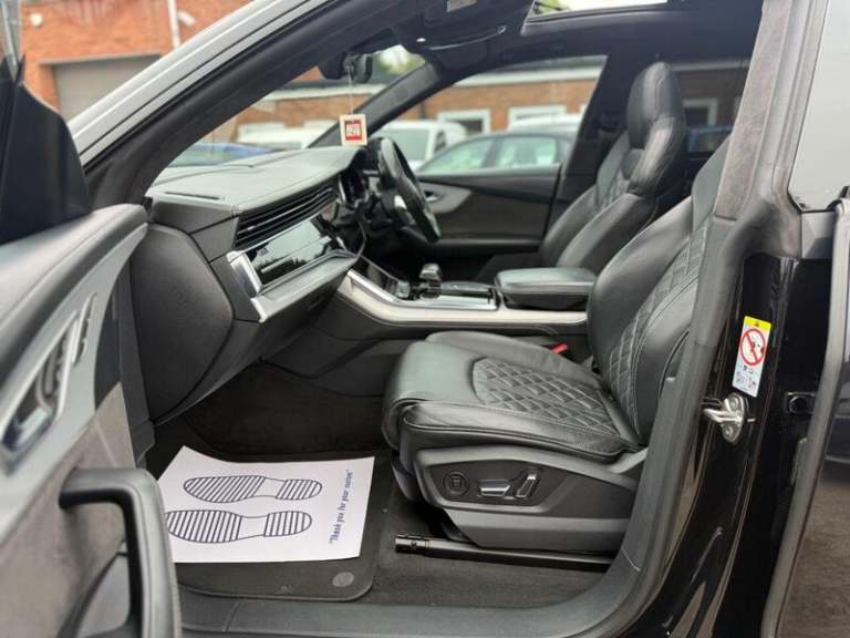 Here we have an Audi Q8 3.0 TDI V6 Vorsprung finished in Metallic Orca Black with 83,000 miles from new, a Full Audi Service History, 12 Month MOT, 3 Month Warranty and 1 Year AA Breakdown Cover.The interior and exterior of the car have been looked after, it starts and drives perfectly with no issues at all.The vehicle is HPI clear and a certificate will be provided upon viewing. The vehicle is also ULEZ Compliant. Being the VORSPRUNG Model, this car benefits from : Electric Sliding Sunroof ( Panoramic Roof ), Soft Close Doors, Audi Tech Pack (Digital Dash), Audi Park Plus Pack ( Park Assist + 360 Sensors ), Reverse Camera, Supersport Leather Seats, Audi Winter Pack (Front + Rear Heated Seats ) , Electric Memory Seats, Bang + Olufssen Sound System, S Line Multifunction Steering Wheel, Front + Rear Parking sensors, Apple Car Play + Android Auto, Satellite Navigation, Auto Lights, Dual Climate Control, Rear privacy Glass and plenty more options.The car will be sold with a 3 Month Warranty which will cover Engine + Gearbox + Electrical Components .We also offer Part Exchange / Delivery / Buy-Backs, HPI report available on request. Please call us on [Phone number removed] for further enquiries. =============================================================================== Why not read our AutoTrader reviews to see what our customers think about their experience here and why they choose to buy from us, =============================================================================== Please contact our sales department for the latest finance offers on this vehicle. We have a dedicated team researching our used car prices daily to make sure we offer the best value cars in the market ===============================================================================To arrange a personal viewing of this amazing car, or if you would like a tailored video to be emailed to you then please contact us. ===============================================================================Please give us a call for directions. Our postcode for Sat Nav direction is B25 8EL • Finance subject to status, T&C's apply. -. AMI - Audi Music Interface, Audi Connect, Audi Connect Safety and Service, Audi Music Interface in the Rear, Audi Phone Box with Wireless Charging, Audi Smartphone Interface, Bang and Olufsen Premium Sound System, DAB Digital Radio, MMI Navigation Plus with MMI Touch, 360 Degree Camera, 48 Volt Mild Hybrid Technology, Adaptive Cruise Control with Stop&Go and Traffic-Jam Assist, Audi Drive Select, Audi Side Assist, Camera-Based Traffic Sign Recognition, Collision Avoidance Assistant, Exit Warning, Head-Up Display, Lane Departure Warning with Emergency Assist, Natural Voice Recognition, Parking System Plus - Front and Rear Sensors, Predictive Efficiency Assistant, Tyre Pressure Loss Indicator, 22in Alloy Wheels - 5-V-Spoke Star Design - Gloss Anthracite Black, Anti Theft Locking Wheel Bolts and Wheel Loosening Detection, Door Mirrors - Heated-Electrically Adjustable-Folding and Auto Dimming with Memory Function, Electric Windows - Front and Rear, Heat Insulating Glass - Windscreen, Panoramic Glass Sunroof, Privacy Glass, Titanium Black Door Mirrors, Titanium Black Styling Pack, Tyre Repair Kit, Audi HD Matrix LED Headlights, Coming-Leaving Home Animations in Front and Rear, Headlight Washers, Light and Rain Sensor, Signature LED Daytime-Running Lights, Adaptive Windscreen Wipers, Audi Virtual Cockpit, Auto Dimming and Frameless Rear View Mirror, Black Alcantara Headlining, Comfort and Sound Package, Comfort Front Centre Armrest, Deluxe 4-Zone Automatic Climate Control, Double Sun Visor, Driver and Front Passenger Memory Function for the Electrically Adjustable Front Seats, Electric Sunblinds for the Rear Side Windows and Manual Sunblind for the Rear Window, Electrically Adjustable Front Seats with Memory Function for Drivers and Front Passenger, Electrically Adjustable Steering Column, Extended Leather Package, Extended LED Interior Lighting Package - Multi-Coloured, Front and Rear Floor Mats, Heated Front and Rear Seats, Illuminated Sun Visors with Vanity Mirrors, Inlays - Darkened Matt Brushed Aluminium, Leather Gear Lever, Luggage Compartment Sill Protection in Stainless Steel, Operating Buttons in Black - Glass Look with Haptic Feedback, Pedals in Stainless Steel, Power Door Closure, Power Operated Tailgate, Rear Bench Seat Plus, Steering Wheel - 3-Spoke Leather-Multi-function-Flat Bottomed-Sports-Shift Paddles, Tool Kit, Adaptive Air Sport Suspension, All-Wheel Steering, Dynamic All-Wheel Steering, Electromechanical Power Steering - Speed-Sensitive Provides a Precise Steering Feel at High Speeds and Excellent Assistance when Parking., quattro All-Wheel Drive, Advanced Key, Airbags - Driver, Airbags - Front Curtain, Airbags - Front Passenger, Anti-Theft Alarm with Tow-Away Protection, Audi Active Lane Assist, Audi Pre-Sense Front, Audi Pre-Sense Rear, City Assist Pack, Cross Traffic Assist Front and Rear, Electromechanical