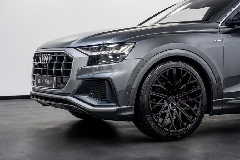 AMI - Audi Music Interface, Audi Connect, Audi Connect Safety and Service - e-call, Audi Phone Box with Wireless Charging, Audi Smartphone Interface, Audi Sound System, Audi Virtual Cockpit - 12.3in High Resolution LCD Display, DAB Digital Radio, MMI Navigation Plus including MMI Touch, Audi Drive Select with 7 Modes, Cruise Control with Speed Limiter, Lane Departure Warning, Natural Voice Recognition, Parking System Plus - Front and Rear Sensors, Rear-View Camera, Tyre Pressure Loss Indicator, 21in Alloy Wheels - 5-V-Spoke S Design - Contrasting Grey - Partly Polished, Aluminium Window Trims, Anti-Theft Wheel Bolts and Wheel Loosening Warning, Body Coloured Door Mirrors, Bumpers in Full Body Colour Paint Finish, Door Mirrors - Heated-Electrically Adjustable-Folding and Auto Dimming with Memory Function, Electric Windows - Front and Rear, Platinum Grey Front Spoiler Lip and Diffuser Insert with Honeycomb Grid in Black, Privacy Glass - Dark-Tinted Rear and Rear-Side Windows - From B-Pillar Backwards, S Line Badges on the Front Wings, S Line Body Styling, S Line Bumpers-Side Ventilation Grilles-Side Skirts and Roof Spoiler, Tyre Repair Kit, Windshield with Heat Insulated Glass, Coming-Leaving Home Animations in Front and Rear, HD Matrix LED Headlights and Dynamic Front and Rear Indicators, Headlight Washers, Light and Rain Sensor, Signature LED Daytime-Running Lights, 2-Zone Automatic Climate Control, 4-Way Lumbar Support for Front Seats, Auto Dimming and Frameless Rear View Mirror, Black Cloth Headlining, Comfort Front Centre Armrest, Electrically Adjustable Front Seats with Driver Memory Function, Front and Rear Floor Mats, Front Sports Seats with S Embossed Logo, Front Sun Visors with Illuminated Vanity Mirrors, Heated Front Seats, Illuminated Door Sill Trims with S Line Logo, Inlays - Darkened Matt Brushed Aluminium, LED Interior Ambient Lighting Pack, Luggage Compartment Sill Protection in Stainless Steel, Operating Buttons in Black - Glass Look, Pedals in Stainless Steel, Power Operated Tailgate, Rear Bench Seat Plus, Steering Wheel - 3-Spoke Leather - MultiFunction - Shift Paddles - S line, Tool Kit, Adaptive Air Sport Suspension, Electromechanical Power Steering, Quattro with Self-Locking Centre Differential, Airbags - Driver - Front Passenger - Front Side - Curtain, Anti-Theft Alarm with Tow-Away Protection, Audi Pre-Sense Front, Electromechanical Parking Brake, ESC - Electronic Stabilisation Control inc ABS - ASR and EDL, First Aid Kit and Warning Triangle, Hill Descent Control, Hill Hold Assist, ISOFIX Child Seat Mounting for Front Passenger, Keyless Go with Remote Central Locking, Seat Belt Monitoring, Standard Pedestrian Protection Measures.Riviera Automotive are proud to bring to market this Audi Q8 S Line. The car is finished in grey with half leather interior.Optional Features Include;23"" Riviera alloy wheels Bang & Olufsen sound Electric memory front seats Heated front seats 360 camera And more The car is offered in exceptional condition with 35250 miles covered, service history and comes with one key.