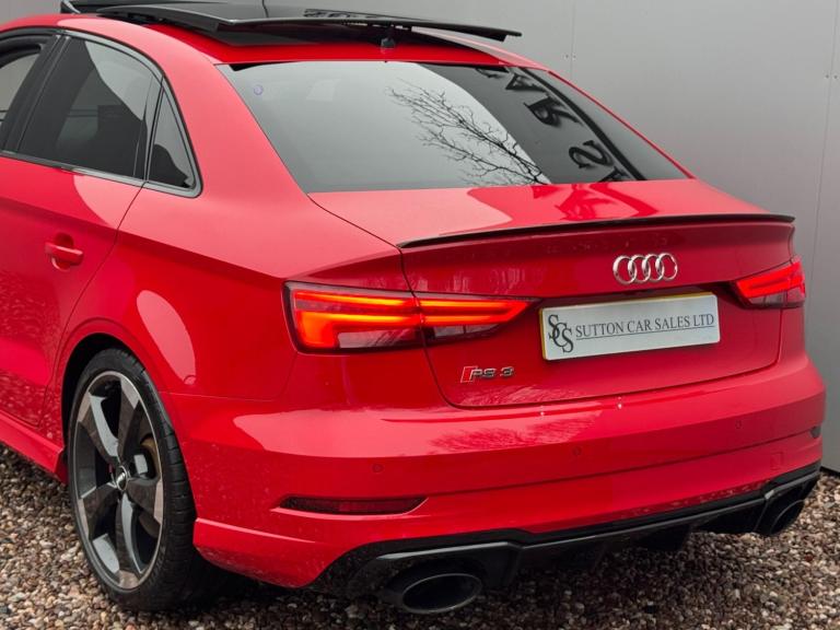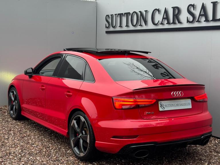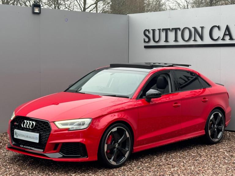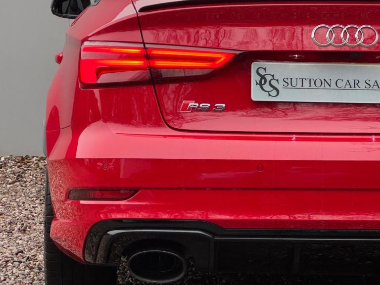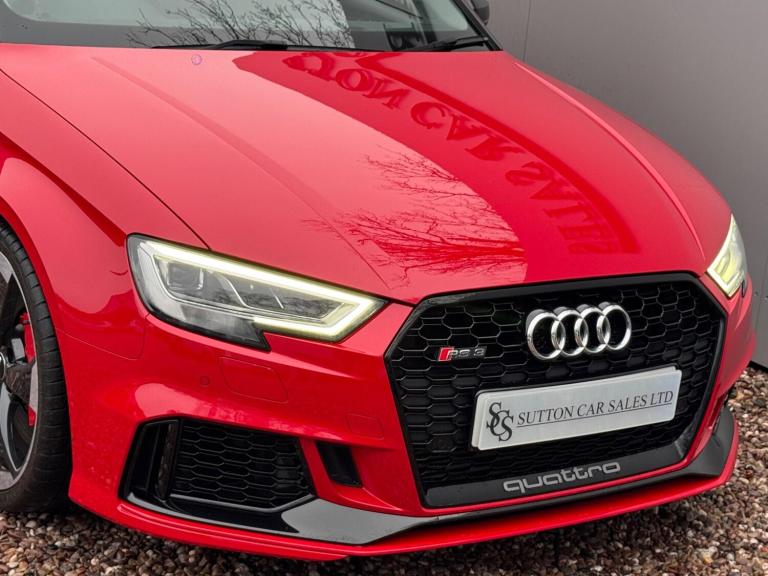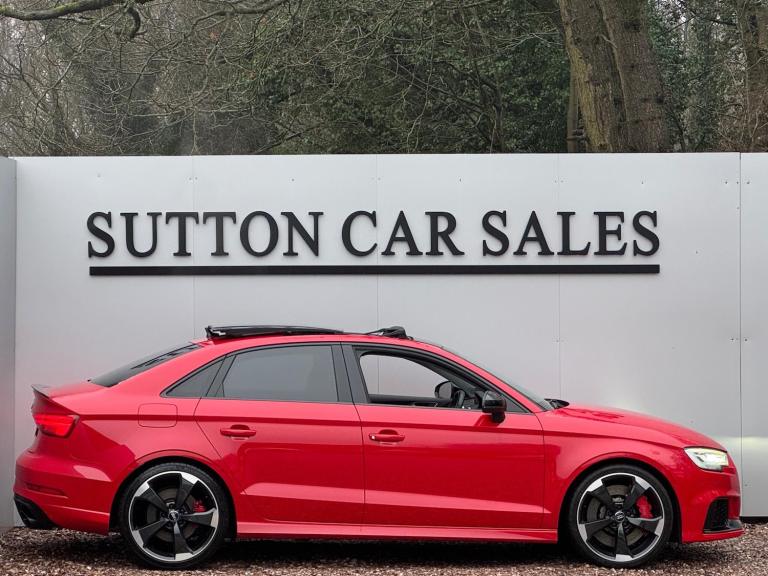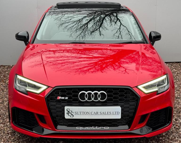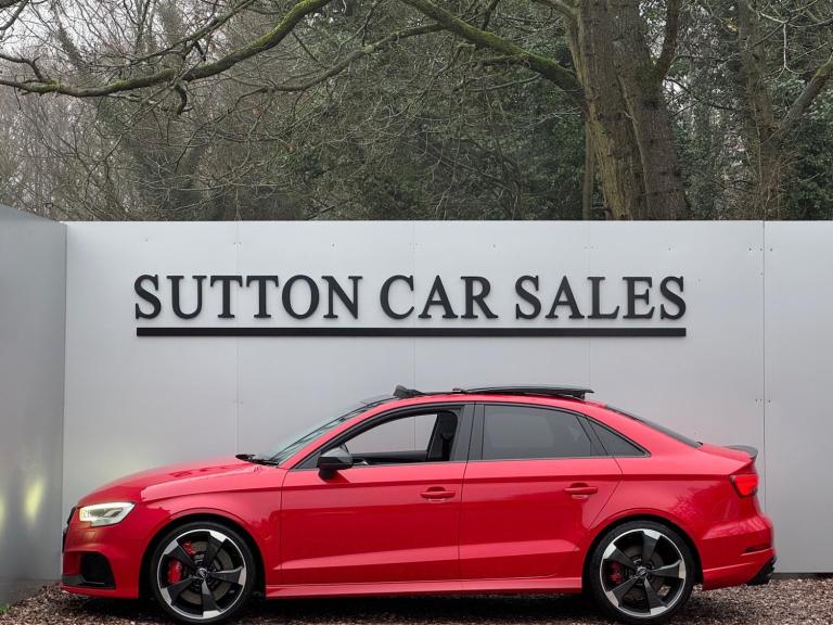 SUTTON CAR SALES ARE PROUD TO OFFER THIS STUNNING AUDI RS3 SPORT EDITION FINISHED IN TANGO RED. THIS CAR IS IN EXCEPTIONAL CONDITION INSIDE AND OUT WITH JUST 26,000 MILES FROM NEW AND HAS BEEN KEPT TOTALLY STANDARD LIKE THE DAY IT LEFT THE FACTORY.SPCIFICATION CONSISTS OF:-- PANORAMIC SUNROOF-- COMFORT & SOUND PACK- CARBON INLAYS- APPLE CARPLAY- HEATED SUPERSPORTS SEATS- BANG & OLUFSEN SYRROUND SOUND- CRUISE CONTROL- MATRIX LED HEADLIGHTS- REVERSE CAMERA- GLOSS BLACK STYLING PACK- 19'' ROTAR ALLOY WHEELS WRAPPED IN MUCHELLIN PILOT SPORT 4S TYRES- FRONT & REAR PARKING SEORS- CRUISE CONTROL- KEYLESS ENTRY START & GO WITH PUSH BUTTON STARTTHIS CAR HAS BEEN FULLY MAINTAINED AT AUDI WITH ITS MOST RECENT ONE CARRIED OUT AT AN AUDI SPECIALIST WHERE IT HAD ITS HALDEX AND DSG SERVICE CARRIED OUT. THIS CAR COMES WITH JUST 1 FORMER KEEPER AND 2 KEYS. HPI CLEAR.ALL OUR CARS COME WITH A 12 MONTHS MOT AND A 3 MONTHS COMPREHENSIVE WARRANTY WITH THE OPTION TO EXTEND TO 6,12,24 OR 36 MONTHS FOR YOUR PEACE OF MIND.WE ARE BASED IN SUTTON COLDFIELD (BASSETTS POLE), VIEWING STRICTLY APPOINTMENT ONLY, ALL MAJOR CREDIT/DEBIT CARDS ACCEPTED, PART EXCHANGE WELCOME AT TRADE VALUE, DEPOSITS TAKEN OVER THE PHONE, SECURE ANY OF OUR VEHICLES WITH A SMALL DEPOSIT OF £500, NATIONWIDE DELIVERY AVAILABLE I’ll